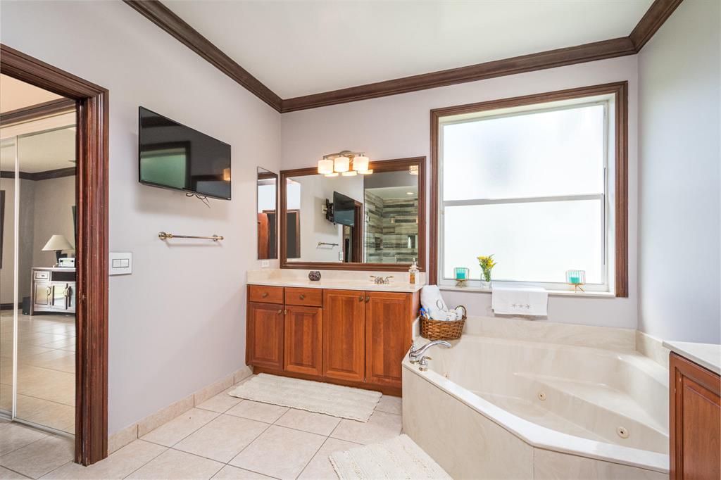 Stunning oversized Kingston Plus model with 4 bedrooms, 3.5 baths, and 3 car garage and lakefront views. This home features stunning volume ceilings as you enter the home. You are greeted by a beautiful formal living and dinning room. The spectacular wood and wrought iron staircase leads to a fabulous upstairs entertainment area. This home features a spacious downstairs master bedroom with an en-suite and a second upstairs Master bedroom with bath. The second floor also has two separate bedrooms with shared bathroom and accessible outdoor balcony from each bedroom. The downstairs also has a kitchen/breakfast & family area with a custom built entertainment center. The Downstairs Master Bedroom includes his and her closets and a very inviting Master bath with separate vanities, soaker t