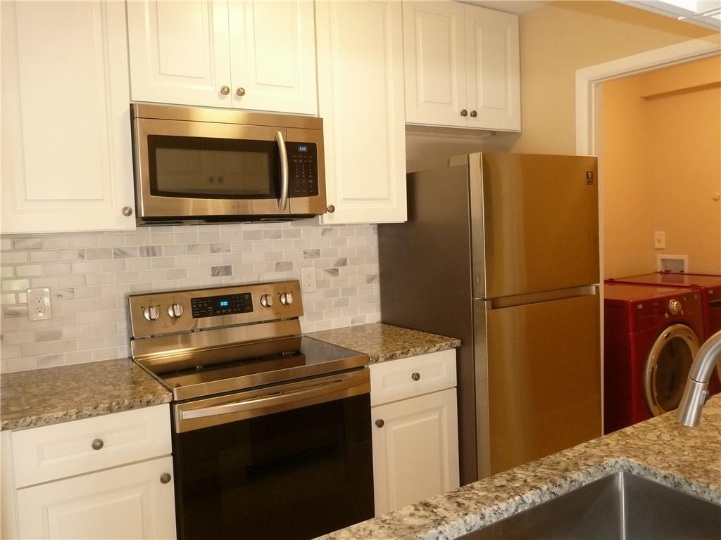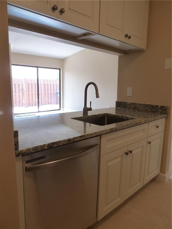 Living is easy in this little gem, tucked away in a small development in a fantastic location. Split floor plan has vaulted ceilings with 16" tile throughout. Kitchen has real wood off-white cabinetry with soft close mechanisms, granite countertops, tiled backsplash and stainless appliance package. Nice size master suite has tiled shower with glass enclosure and walk-in closet. Matching mocha vanities with new sink tops and toilets in both baths. Knock-down textured ceilings, new paint, baseboards, interior doors and all new hardware. Laundry room is fitted with LG front load washer/dryer. Patio area is fully fenced in and there is a community pool too. Property has two deeded parking spaces and the monthly maintenance is very reasonable. A/C & electrical panel just replaced.