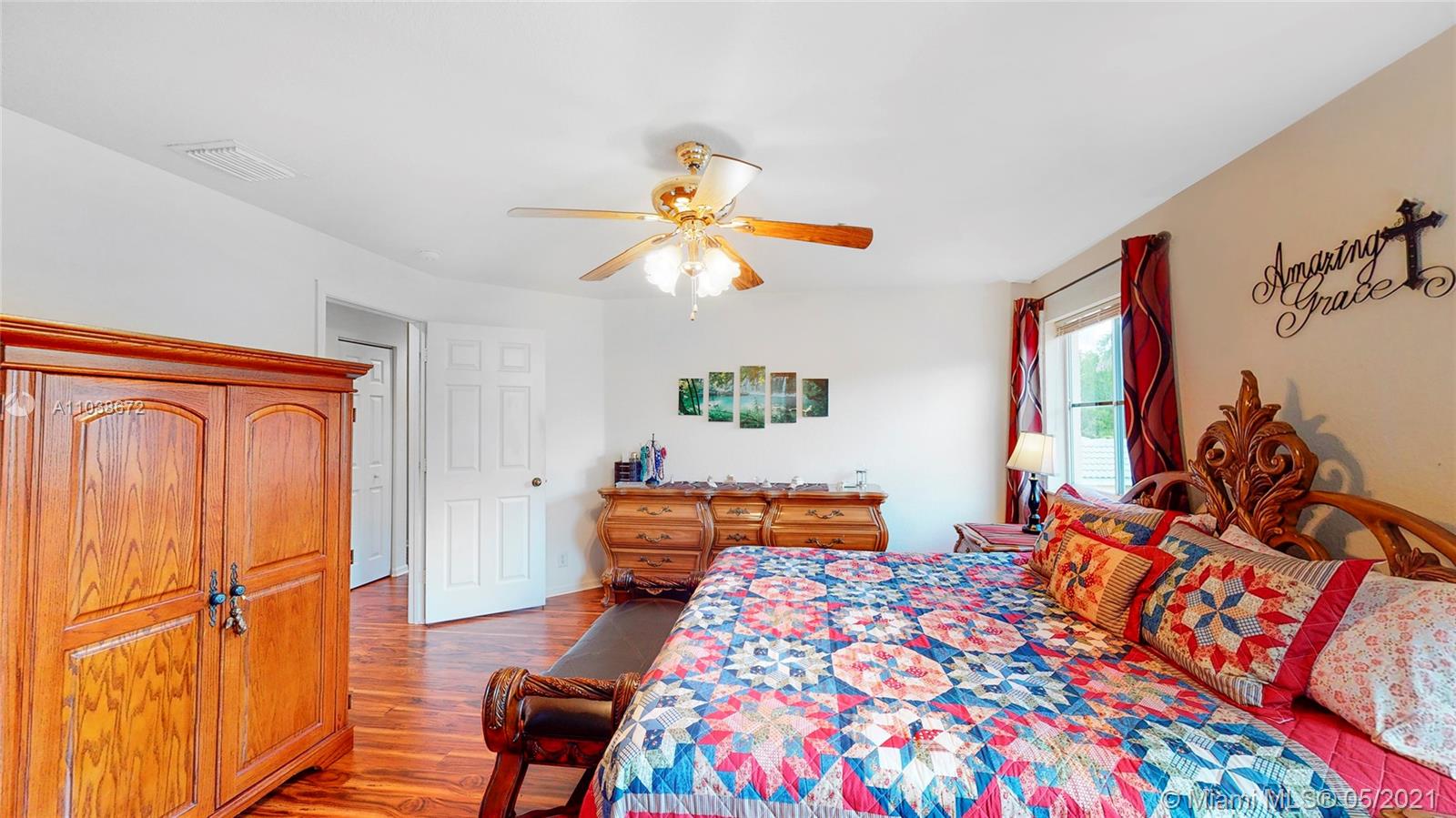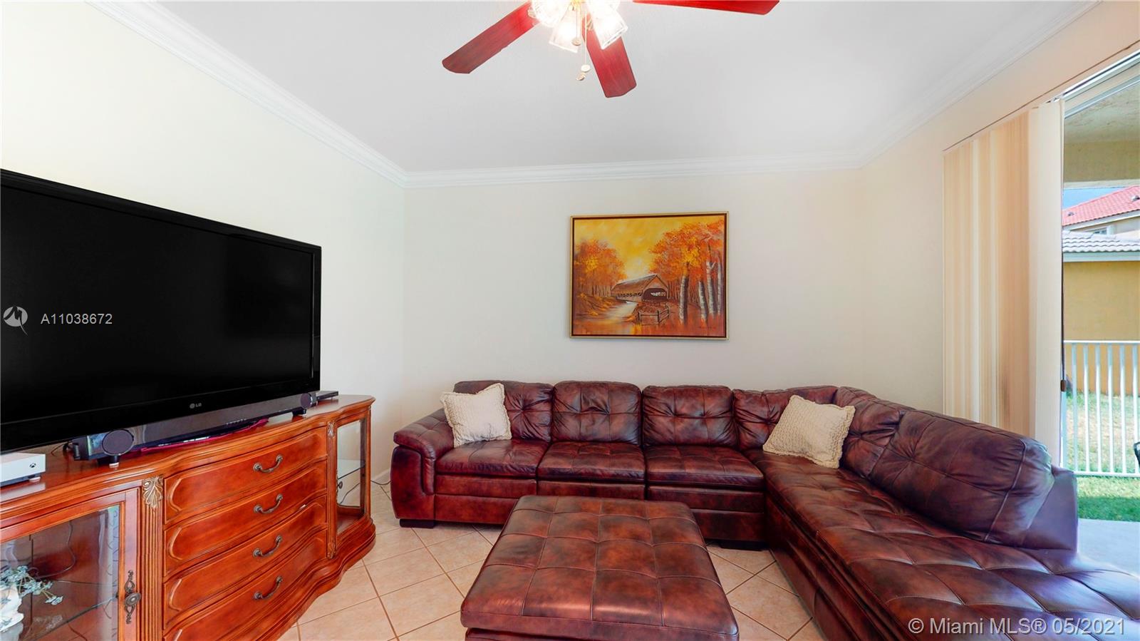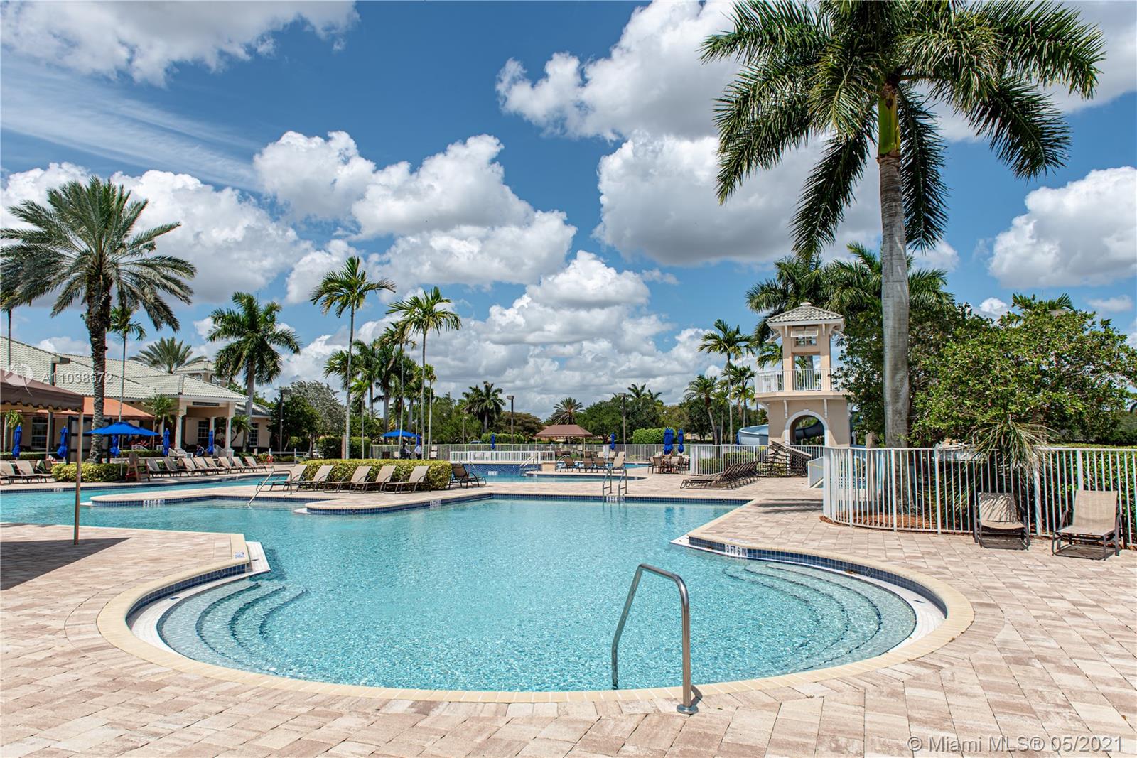Elegant 5 bedroom Estate home located in the gorgeous community of Savanna!! This home has been meticulously maintained by its original owners. Unique Fuchsia model which offers a guest bedroom and full bathroom in a separate hallway upstairs for privacy. Upstairs impact windows in some rooms. Crown molding and neutral tiles downstairs, premium laminated flooring on stairs, upstairs, and formal living/dining area. Immaculate kitchen with 42" rich cherry wood cabinets/ over-counter range and double oven. Covered porch at entry level and backyard. Oversized lot- great for swimming pool and entertainment. The community of Savanna is truly a resort-style community with an incredible clubhouse, swimming pools, a waterslide, playgrounds, tot lot, basketball, Tennis Courts, and mini golf.