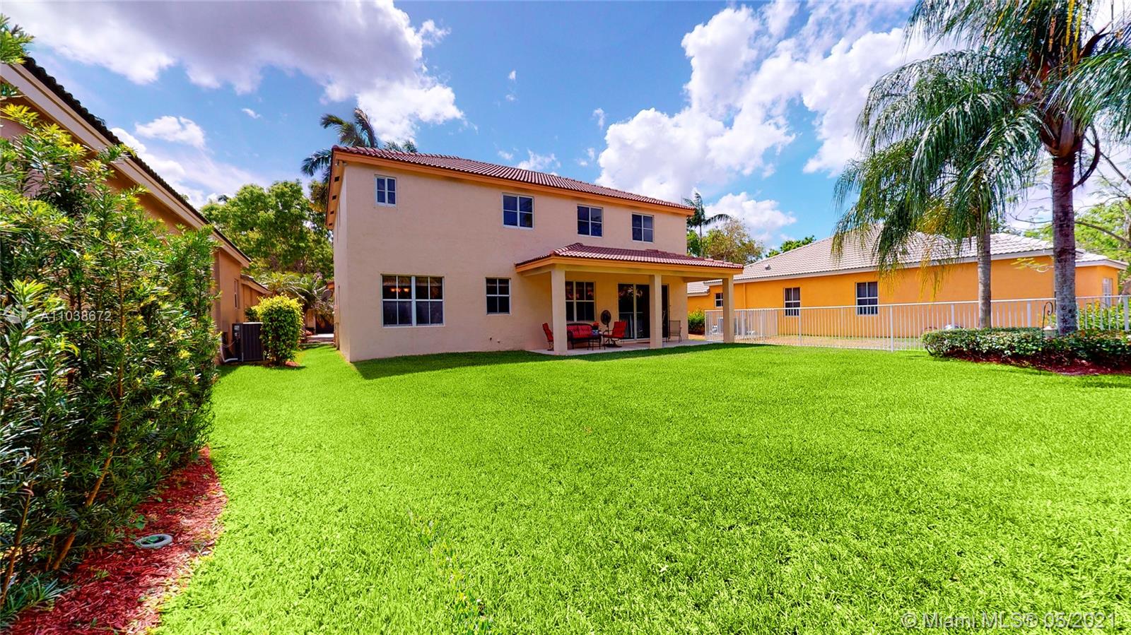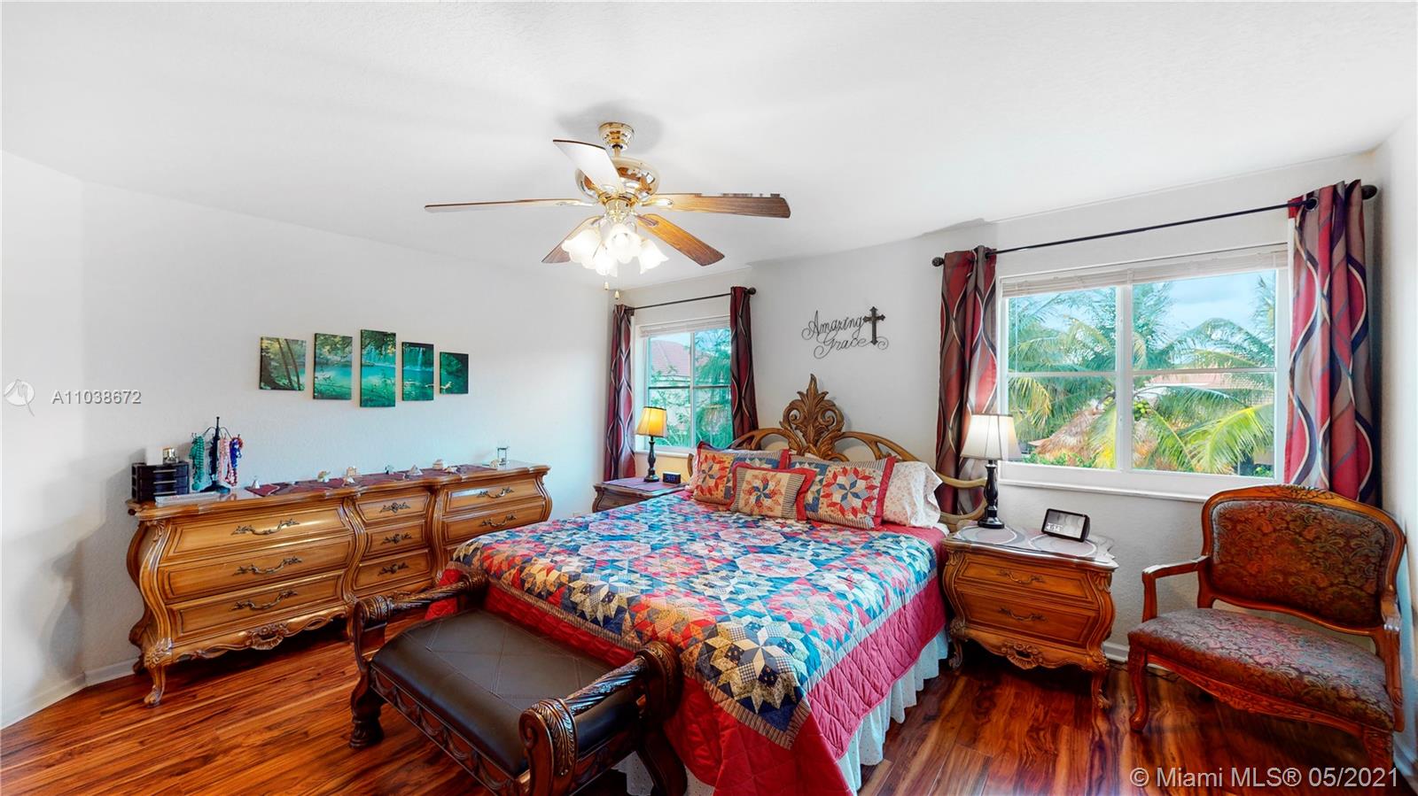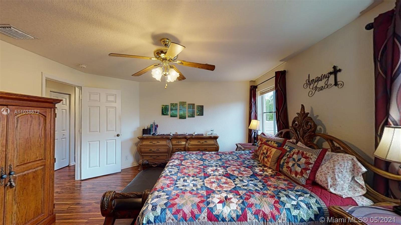 Elegant 5 bedroom Estate home located in the gorgeous community of Savanna!! This home has been meticulously maintained by its original owners. Unique Fuchsia model which offers a guest bedroom and full bathroom in a separate hallway upstairs for privacy. Upstairs impact windows in some rooms. Crown molding and neutral tiles downstairs, premium laminated flooring on stairs, upstairs, and formal living/dining area. Immaculate kitchen with 42" rich cherry wood cabinets/ over-counter range and double oven. Covered porch at entry level and backyard. Oversized lot- great for swimming pool and entertainment. The community of Savanna is truly a resort-style community with an incredible clubhouse, swimming pools, a waterslide, playgrounds, tot lot, basketball, Tennis Courts, and mini golf.