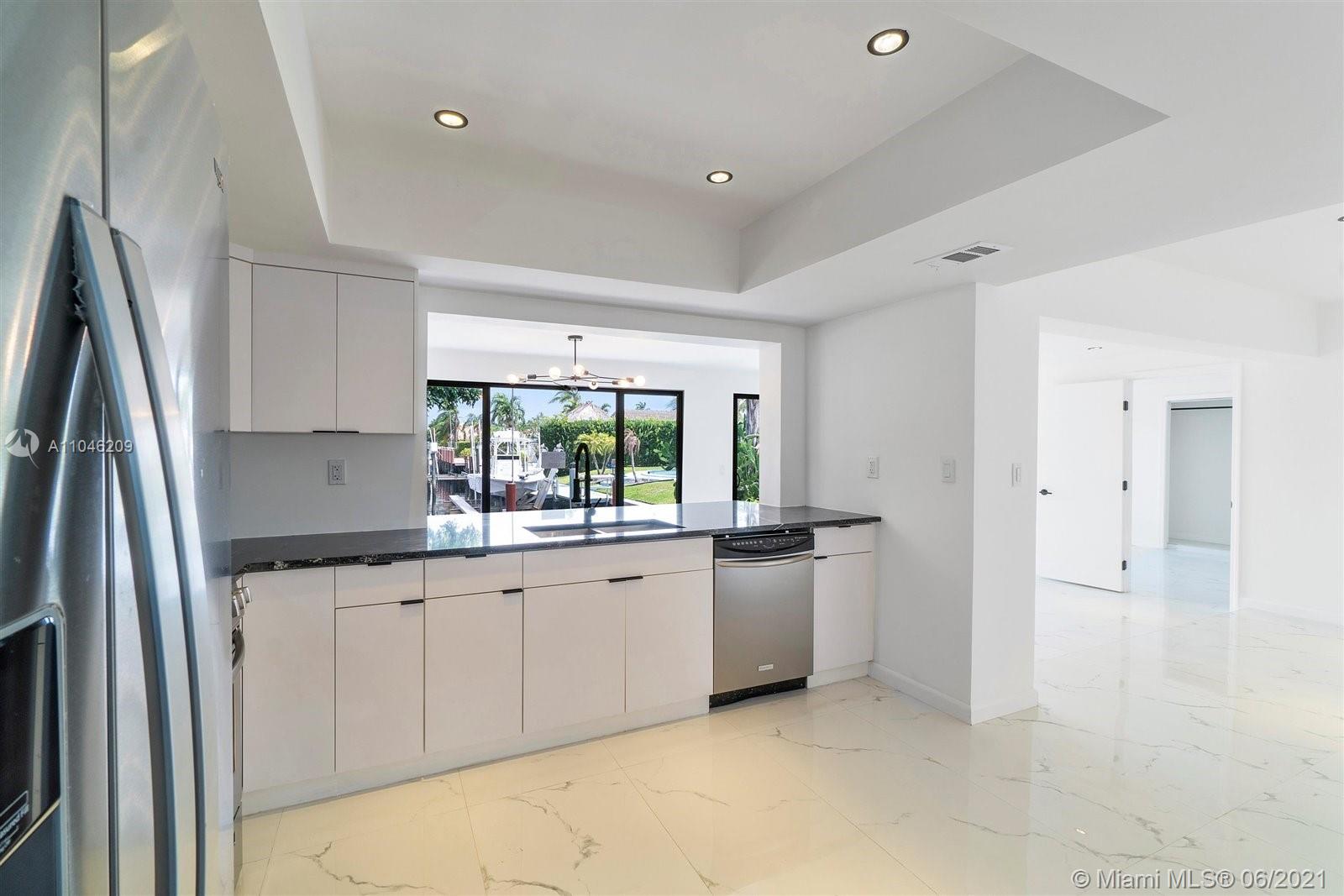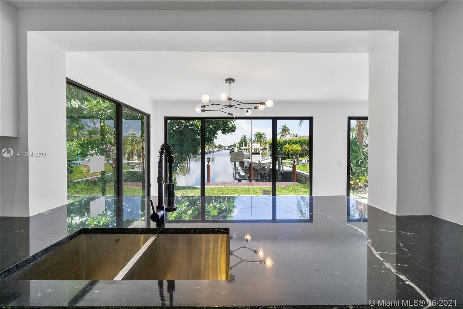 Beautifully renovated, modernized canal front house with stunning views! This boaters paradise, gorgeous home rests at the end of a canal with approximately 40' concrete seawall with easy ocean access! 3 full baths and 2 of the 3 bedrooms are masters with canal views and backyard access. Room for pool in backyard! This complete smart home features in-Ceiling Home Theater Speaker System, Nest thermostat, Ring video doorbell & LED lighting throughout. All new impact resistant doors, windows & garage door is installed. Stay cool & comfortable with air conditioned, smart garage including a new washer & dryer. The kitchen is fully upgraded with brand new appliances, cabinets & granite counter tops. Brand New Roof!