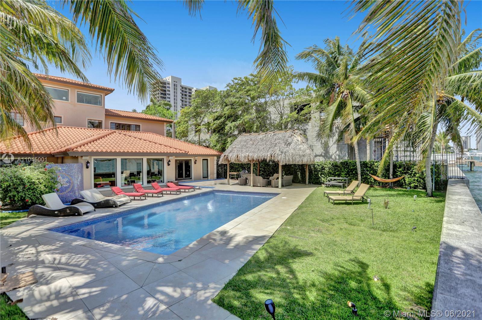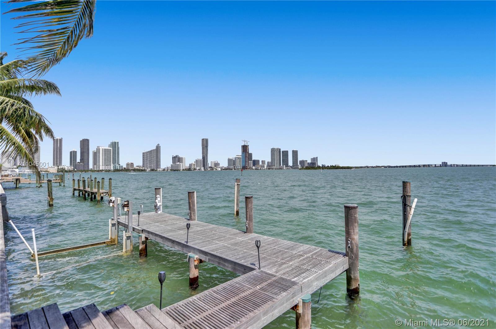 Beautiful Mediterranean three story gated waterfront home located in the prestigious Venetian Isles with amazing wide views of Biscayne Bay and Miami skyline from almost every room! 6 bedrooms and 6 baths, it was rebuilt in 2005 and has open light and bright living areas that have marble floors in the main areas and wood flooring in the bedrooms. Impact windows and doors. The open kitchen has stainless steel appliances including wine cooler. The main suite has a custom closet and master bath with spa tub and separate shower. The grounds have lush landscaping and a heated pool with mosaic tile. There is a Tiki hut and a 65 ft. dock with water frontage of 75 feet. Sunset views plus a great location!