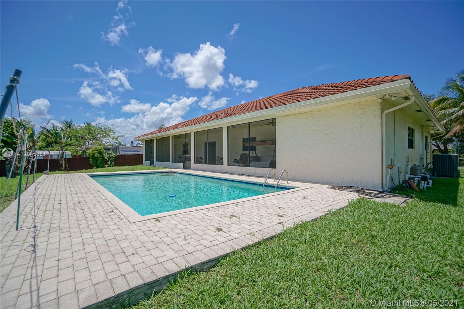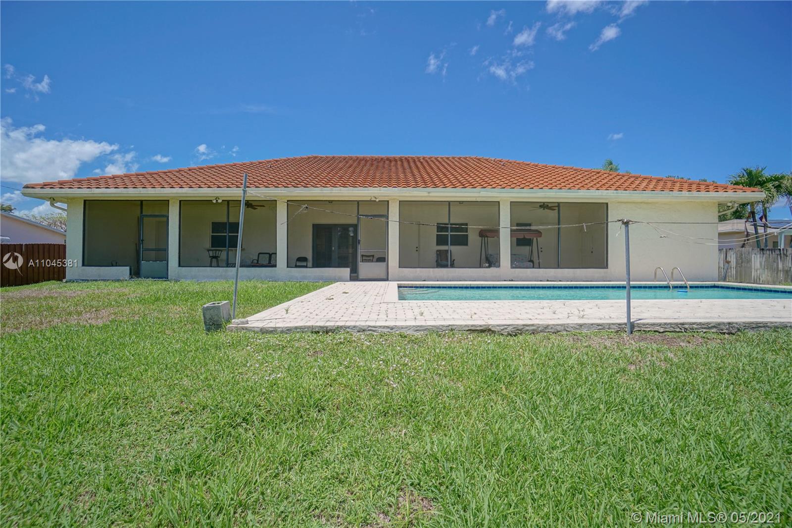 Beautiful CUSTOM BUILT 4/3 on an elevated lot with 2 car garage is ready for a new owner! HURRICANE IMPACT WINDOWS AND DINING ROOM DOORS. All BEDROOMS ARE OVERSIZED and include TWO MASTERS WITH THEIR OWN BATHS! MARBLE TILE in living, dining and kitchen areas. NEW A/C & HOT WATER HEATER. Oversized eat-in kitchen. SPACIOUS SCREENED PATIO in the back overlooks LARGE POOL surrounded by pavers. Drive up the large CIRCULAR DRIVEWAY into a COVERED CARPORT. S-tile roof installed 2006. NO HOA! Just add your personal touch to make this YOUR PERFECT HOME. Come and see it today! **SEE BROKER'S REMARKS**