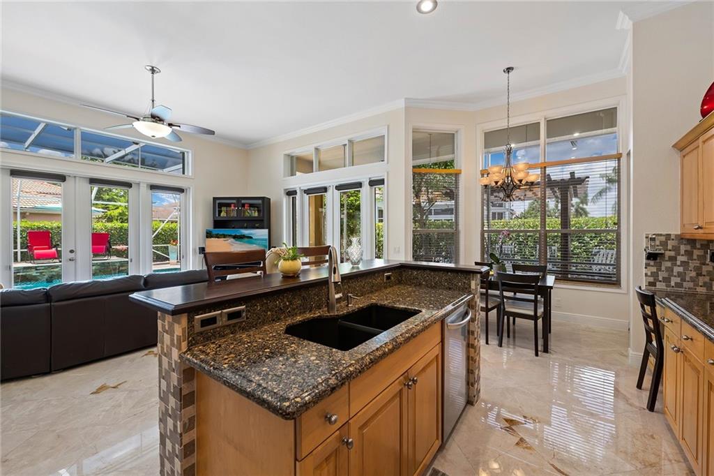 Move in ready beautiful single family split floor plan. Soaring ceilings, kitchen has granite and stainless steel appliances. Large bedrooms with wood floors master has large walk in closet. Updated bathrooms, formal living area, Master bath has large shower that has been redone and dual sinks. French doors lead to backyard and also french door to pool area. Pergola to sit and enjoy the evening. Double door entry with circular driveway with brick pavers. Impact windows in front of house and accordions in back. Newer diamond brite salt water heated pool. This home will not last. Laundry room has cabinets and a sink with plenty of storage.
