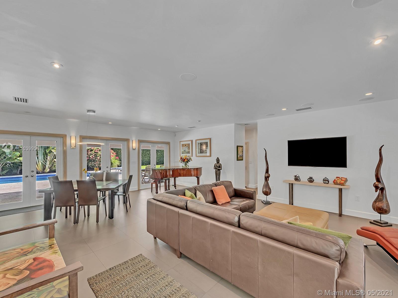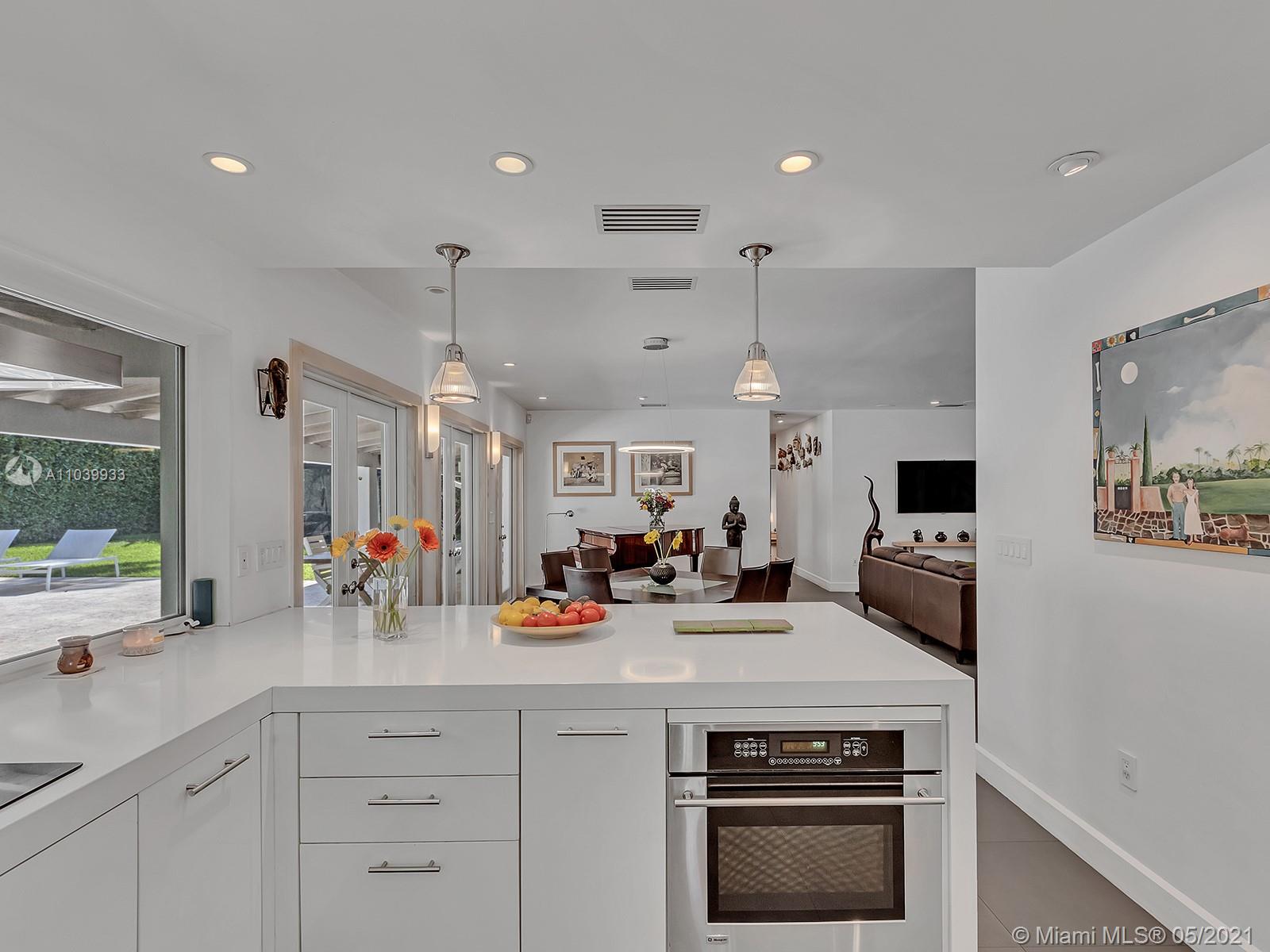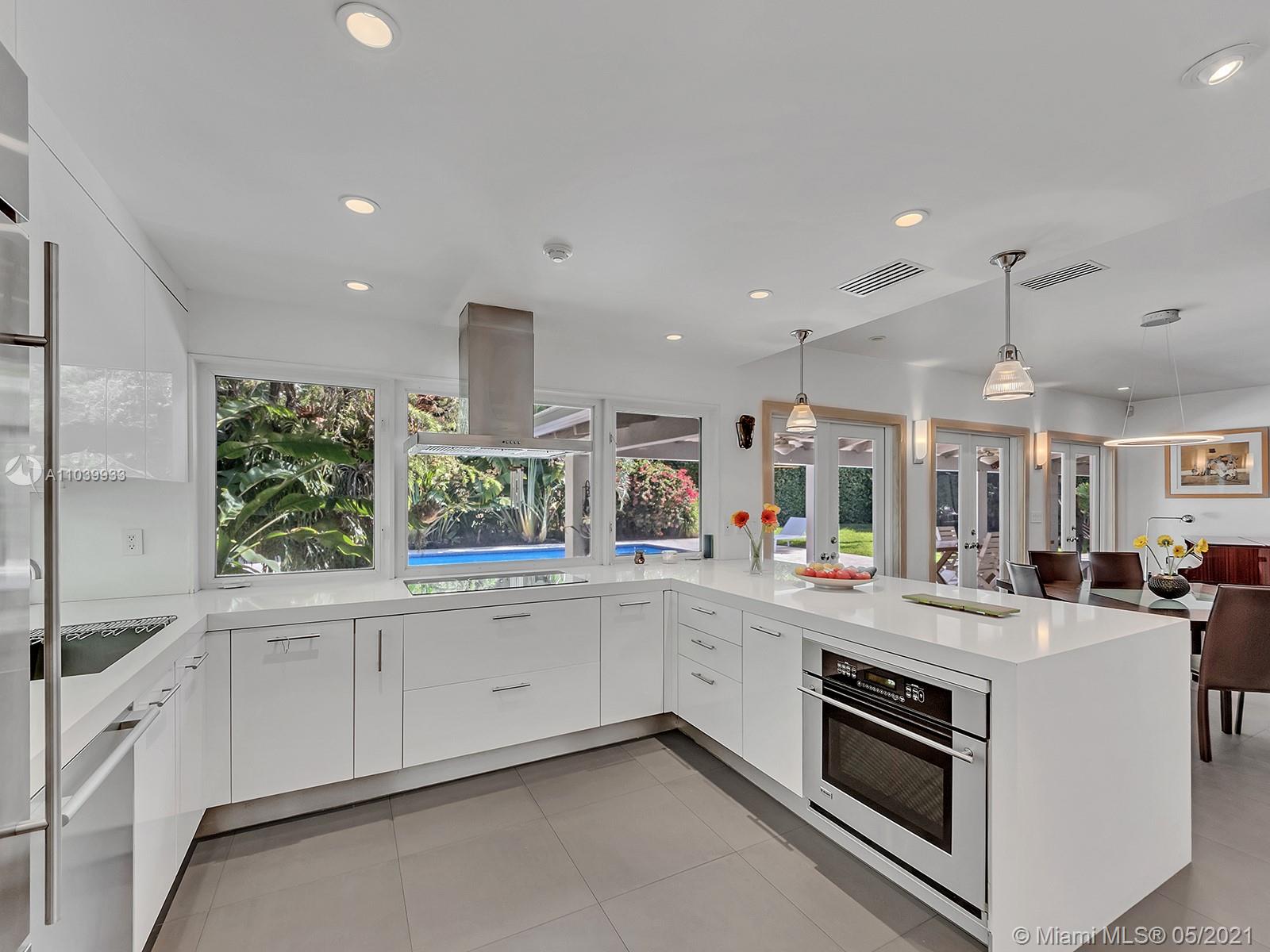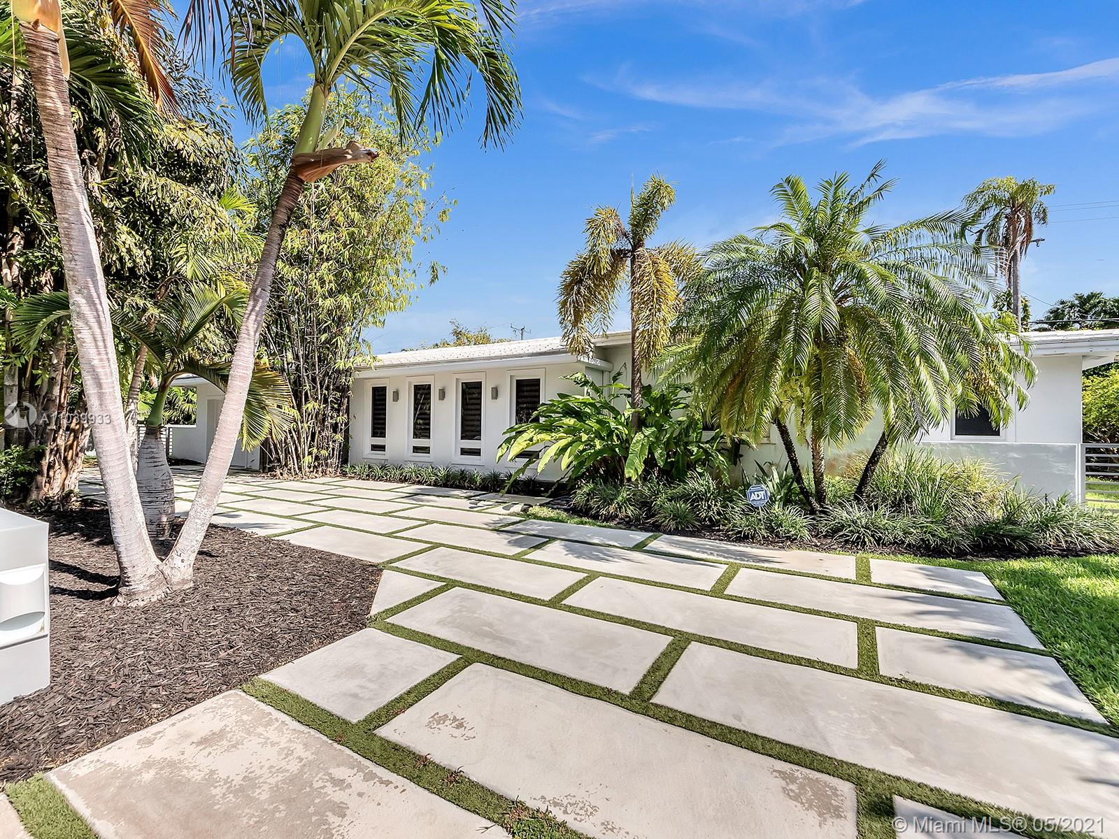 Welcome to a lovely home nested in desirable Coral Gables Riviera Section 2, 2748 Sq.Ft Actual Area. Enjoy this spacious 3 bedroom 3 full bath, completely renovated from the studs in 2010, features open kitchen with Euro kitchen cabinetry (white Italian) ample area for family breakfast/brunches, top-of-the-line stainless steel appliances, living & dining area with lots of natural light, 2X2 quartz flooring throughout, two en-suite bedrooms with walk in closets, master bath with shower and granite carved tub made in Bali, impact windows & doors, built in speakers; Crystal tiled pool, salt system, 9ft deep,15x30. Exterior area surrounded by manicured landscaping ideal for relaxing & entertaining. Well for irrigation, sprinklers, electrical lines, phone & cable buried. 1 car garage, must see!