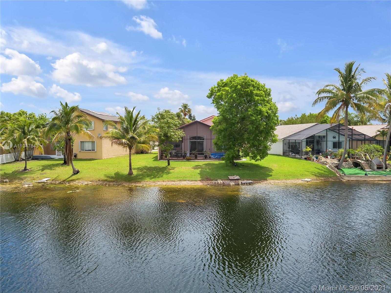 OPEN HOUSE 6/13 12-3 PM. Superb waterfront home in gated Emerald Cove of Silver Lakes. 4 bedroom, 2.5 baths. Fully screened patio overlooking tropical paradise: pie-shaped lot, lake, gorgeous sunsets, fruit trees, room for a pool. Remodeled eat-in water view kitchen with granite counters, breakfast bar and center island, wood cabinetry. 2 car garage, 4 car driveway. Newer A/C. Great location close to I-75 and Highway 27 for easy commute. Top Broward County / Pembroke Pines schools plus super private, charter and parochial schools close by. Silver Lakes Community pools included in low HOA fee. Close to parks, shopping, dining, movie theaters, library, Memorial Miramar Hospital. Master downstairs, others up.4th BR currently configured as big open loft - easily enclosed per builder option.