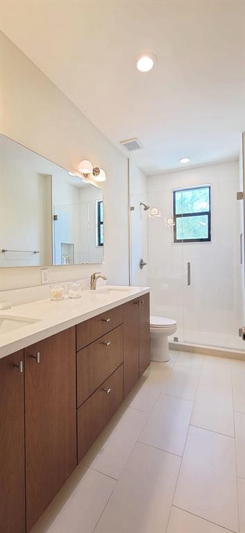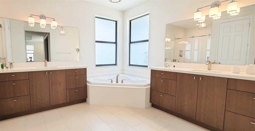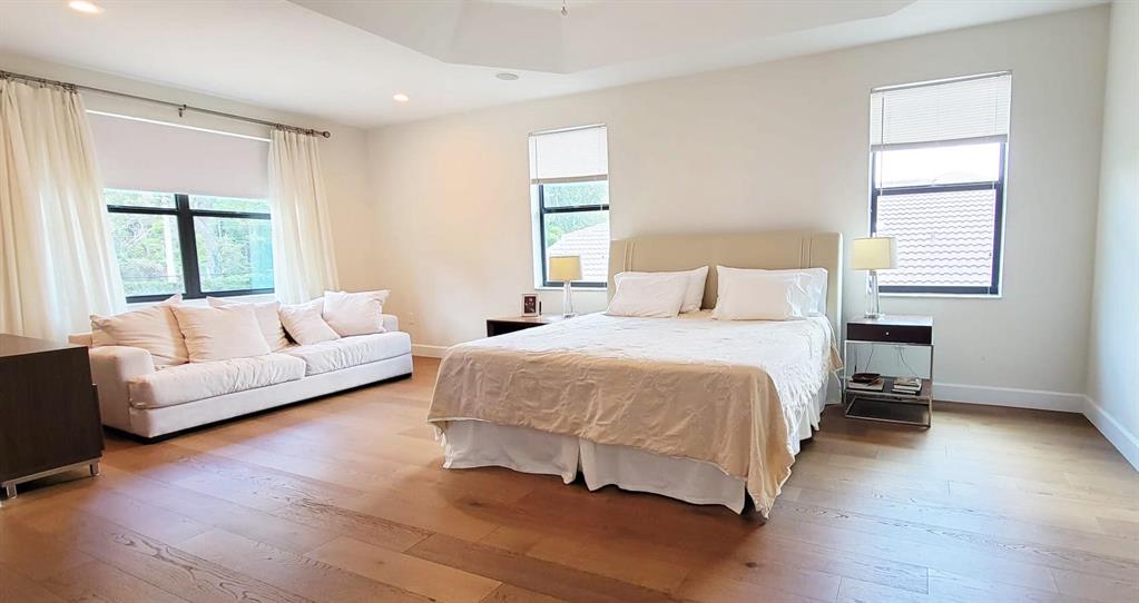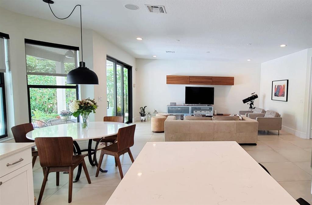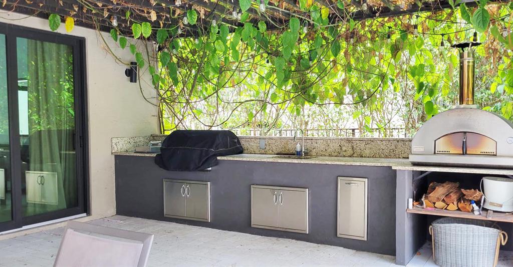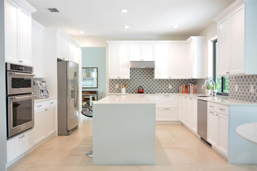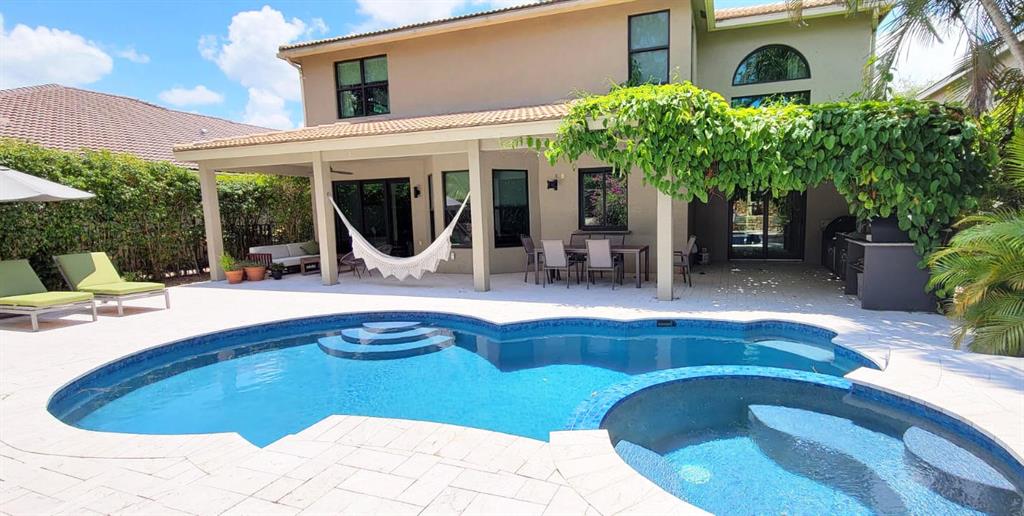 Rare opportunity in the upscale gated community in Boca Raton !! This spotless contemporary fully remodeled 5 bed/3 ba offers clean lines throughout. Designer choices in this stunning home set it apart from every other house in the neighborhood. The dining and living rooms boasts 19ft ceiling with rectified porcelain tile throughout the main floor, and engineering wood on upper floor and stairs. Hurricane impact windows with energy-efficient low-e glass.Open kitchen features high-end stainless steel appliances, and a large quartz waterfall island. Customized cabinetry and quartz countertops in the kitchen, bathrooms, and laundry. Secluded outdoor area features an enclosed patio and an outdoor kitchen covered by a stunning overgrown aluminum pergola.