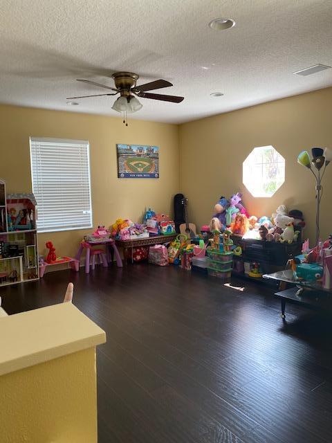 Ready to move in house waiting for the meticulous buyer. First floor has ceramic tiles and the 2nd floor has wood. Big formal living room, formal dining room, fully equipped kitchen with all stainless steel electric range, refrigerator, dishwasher, microwave oven, island kitchen bar, pantry and granite kitchen counter tops, breakfast nook; big family room, utility room with sink and upgraded washer and dryer; cabana full bath on the first floor; on the second floor are your private movie theater or hobby room, big master bedroom has 2 walk in closets, master bath has separate shower and roman tub, his and hers bathroom sinks; the 3 guest rooms share a full bath with 2 sinks and a shower/tub combo. Accordion shutters upstairs and panels downstairs; big covered screened patio in the back.