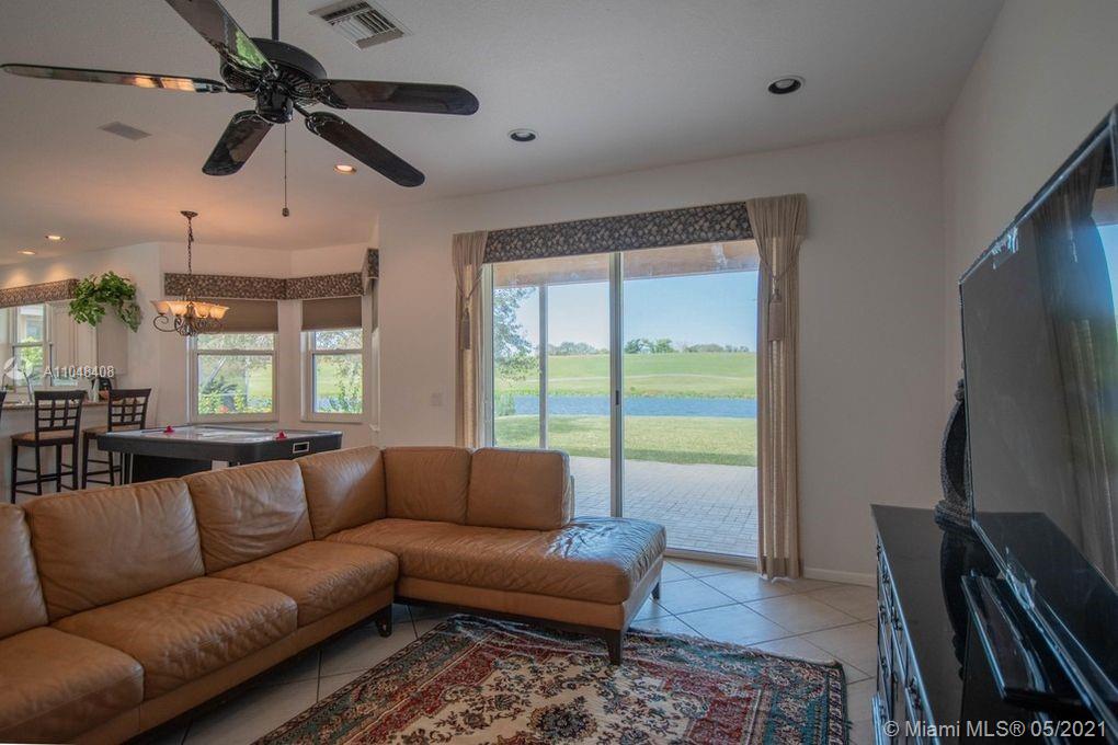 Beautiful home with four spacious bedrooms and a den/office off of the master bedroom. High ceilings with high hat lighting throughout. Large kitchen with breakfast bar, large family room overlooking golf course. Gorgeous balcony off master bedroom/den also overlooking the golf course. Cat-5 impact windows and doors installed throughout the entire home less than two years ago. No mandatory membership fees. Community pool, playground and tennis center within walking distance. Large backyard patio. Close proximity to top rated schools. Two brand new A/C units installed less than a year ago.