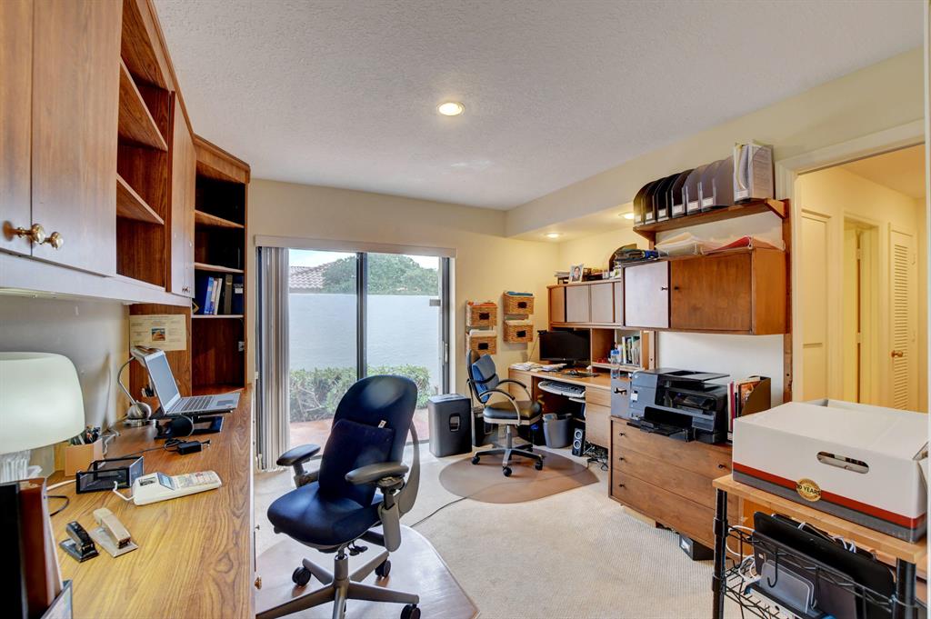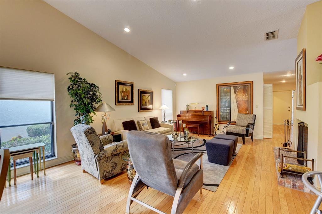 Most desirable location near schools, house of worship, Town Center Mall. Gated Community, No HOA approval required, 3 full bedrooms plus a den, atrium, F/P, wood floors, large screened patio, prime large lot with lake views and offers privacy. Very Serene setting! Low HOA fees, Hurricane protection, HOA takes care of outside landscaping. PRISTINE! Will not last long as this location is the best!! Verde, Omni, Spanish river schools; convenient to I-95 and Fla. turnpike, shops, restaurants, etc.