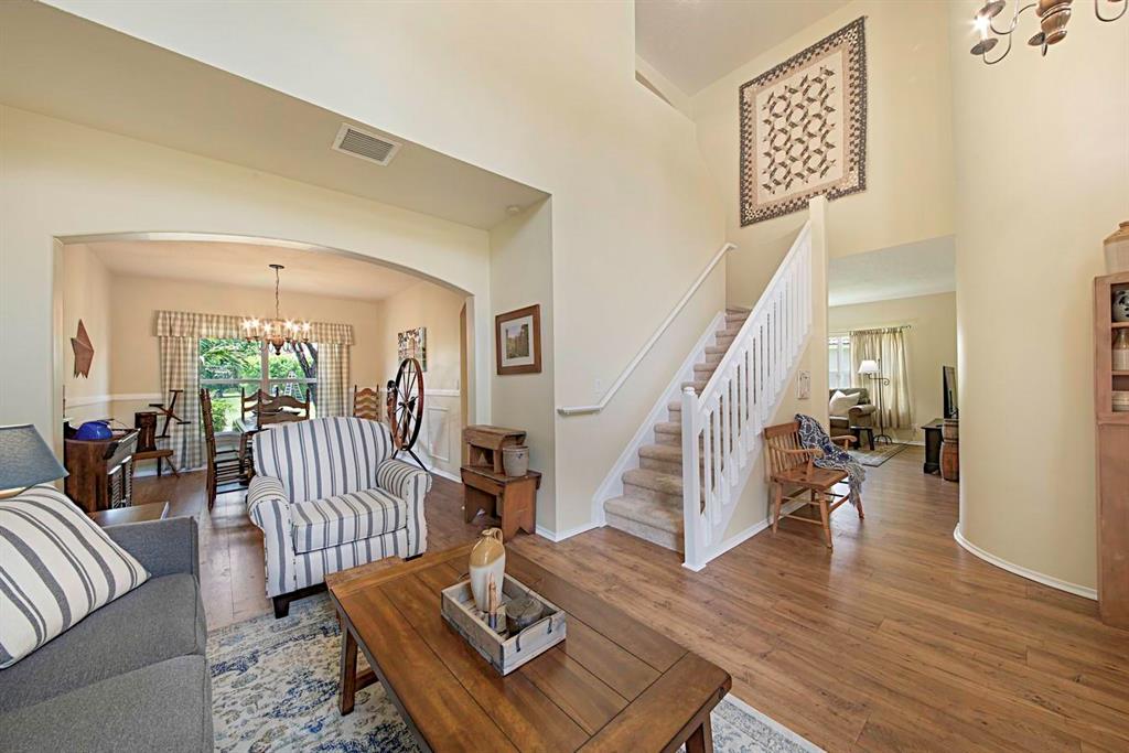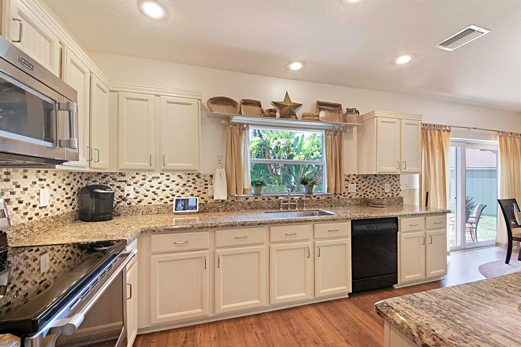 Paradise found in this spectacular 3 bedroom, 2.5 bath home located in the sought after community of Villaggio. Designed to entertain, this stunning home features a formal living room, formal dining room, family room and a patio. The kitchen is a chef's dream with under cabinet lighting, cabinets with pull-outs, granite countertops, tiled backsplash and stainless steel appliances. The luxurious master suite boasts a vaulted ceiling, a large walk-in closet, dual sinks, soaking tub and a walk in shower. This freshly painted home also features neutral flooring, smooth walls, LED lighting, impact glass windows and an abundance of natural light. Enjoy the Florida lifestyle on the patio, large private yard with lush tropical landscaping and a serene lake view.