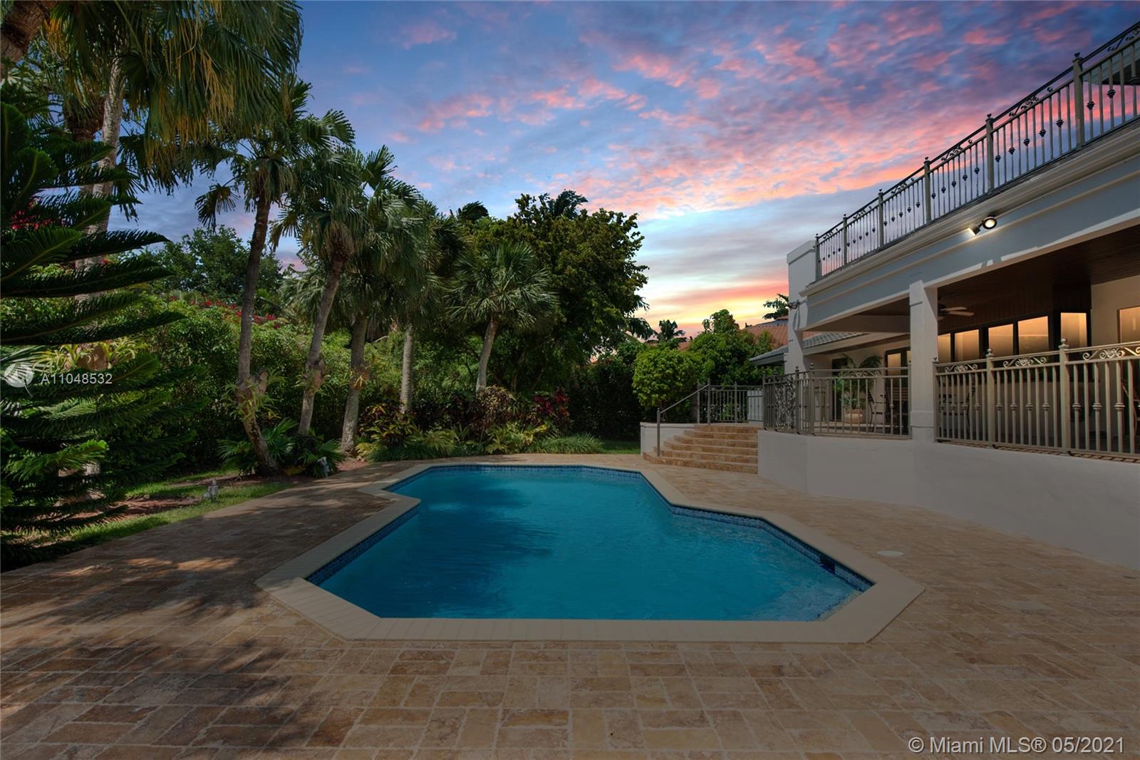 Clean, crisp, bright and the perfect blank canvas for your updates. No need to knock down walls or expand as this Hollub-built, 1-owner custom home already enjoys the most perfect family-friendly floor plan. BRAND NEW ROOF AND IMPACT WINDOWS/DOORS. There are 4 bedrooms, 3.5 baths downstairs while the main suite is upstairs along with its sitting room, 2 walk-in closets and spacious bath. The suite also features an expansive open-air deck, an ideal place to simply chillax. Its backyard pool, patio and covered terraces are an absolute dream and perfect for al fresco dining and summer fun! Sited on a 20,000 SF lot with big circular drive + 2-car garage. The Islands of Cocoplum features a host of amenities and stunning streets and gardens. Priced for immediate sale.