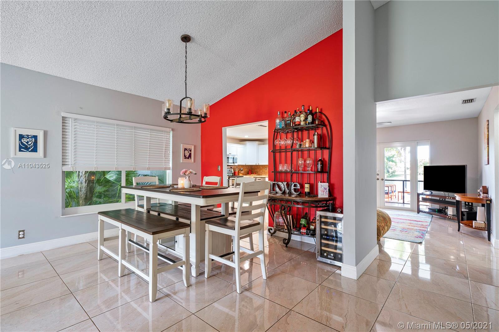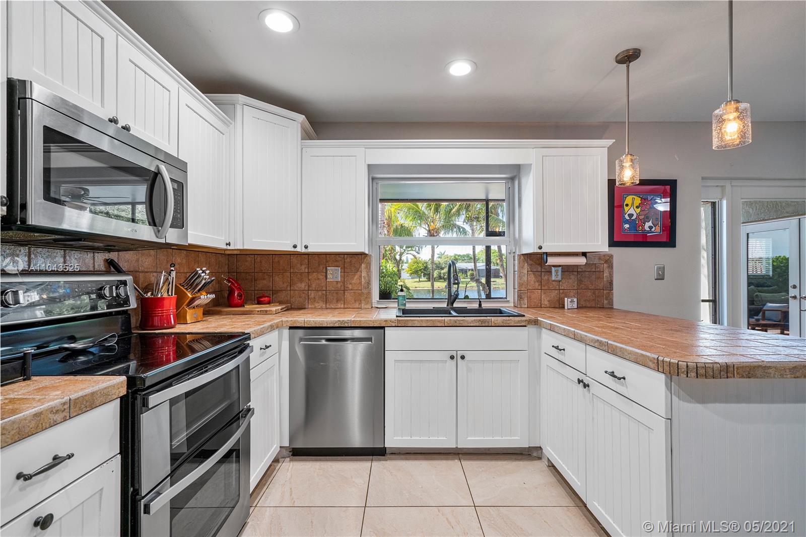 Beautiful open and airy home with all IMPACT windows and doors installed 2020. This house features a large formal sunken living room, an open dining room, large eat-in kitchen with new refrigerator and dishwasher (2020) and double ovens (2019), an oversized primary bedroom with large bathroom, the garage was converted into a playroom, office and storage area, a fenced-in backyard (fence 2019) with a pool and a view of the water. The screened-in porch offers a respite from a long day. Pool was resurfaced with Diamond Brite 2018 and a new pump in 2019. New AC in 2018.