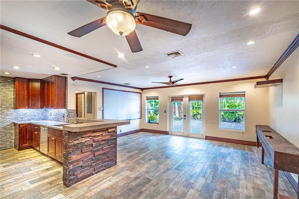 HUGE CORNER LOT IN POINSETTIA HEIGHTS IS BACK ON MARKET. Escape the hustle and bustle of the nearby city and walk behind the gate and make this your very own whimsical tropical oasis on this oversized corner lot. Step inside the home and enjoy the flow of the living space from the open kitchen to the solarium.This is a well designed three-bedroom split floor plan home.The kitchen has custom cabinets and high-end concrete countertop designed by local artist, Jake Brady. Both bathrooms have been beautifully updated. Equidistant from downtown Ft. Lauderdale and Wilton Manors, approx 2 miles to the beach, a few blocks to 13th Street and Flagler Village. ACTUAL AND STAGED PHOTOS.