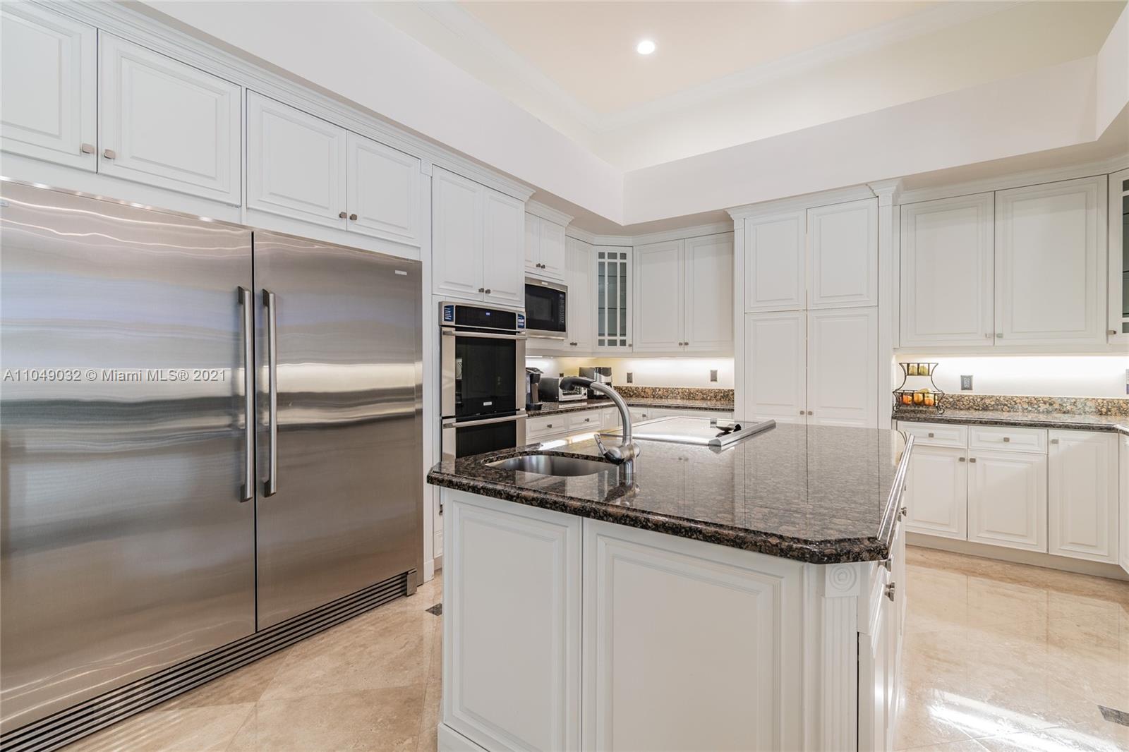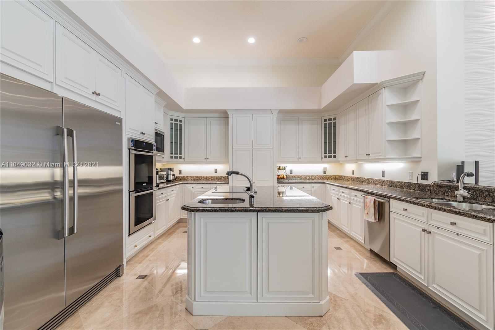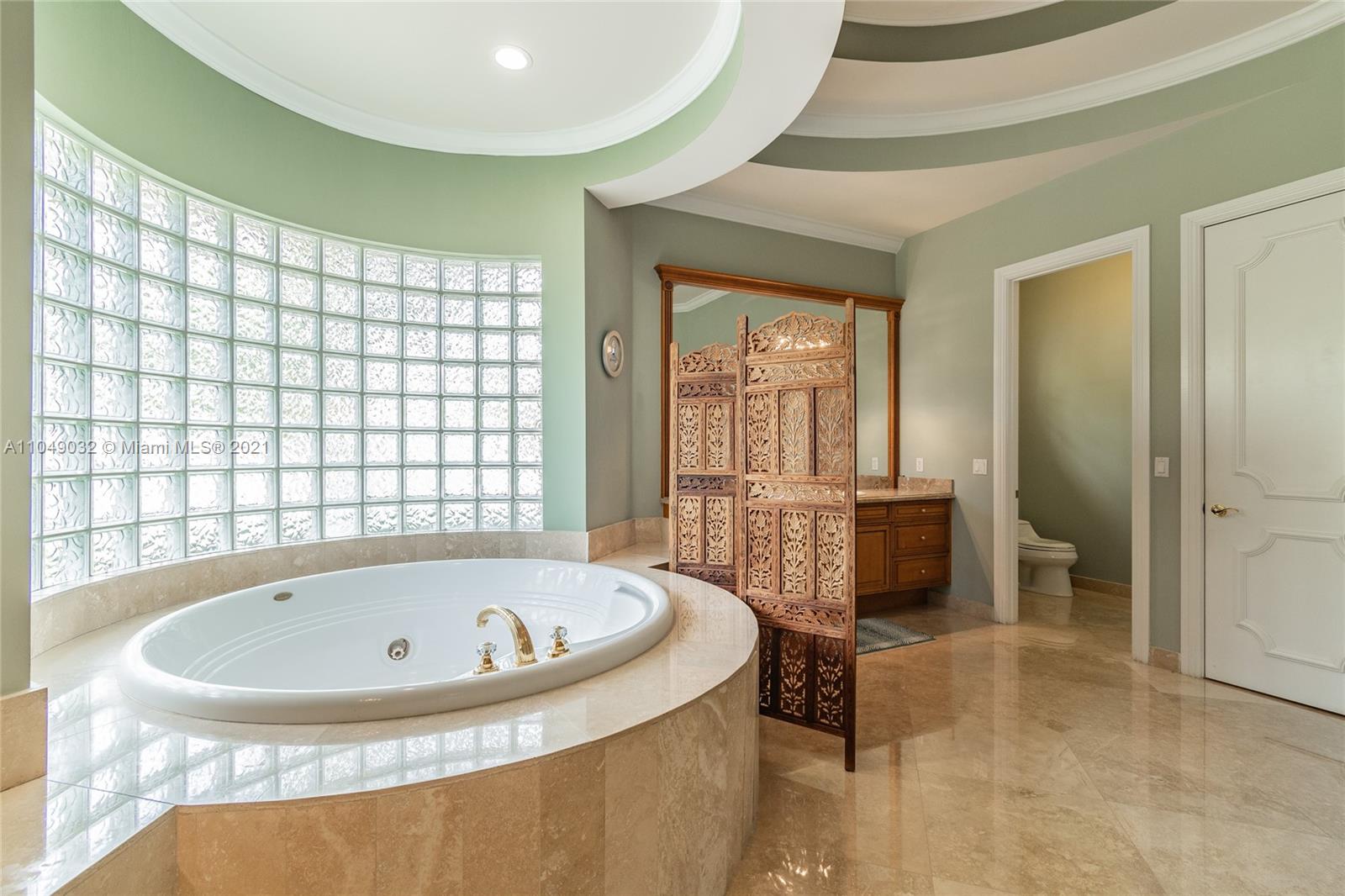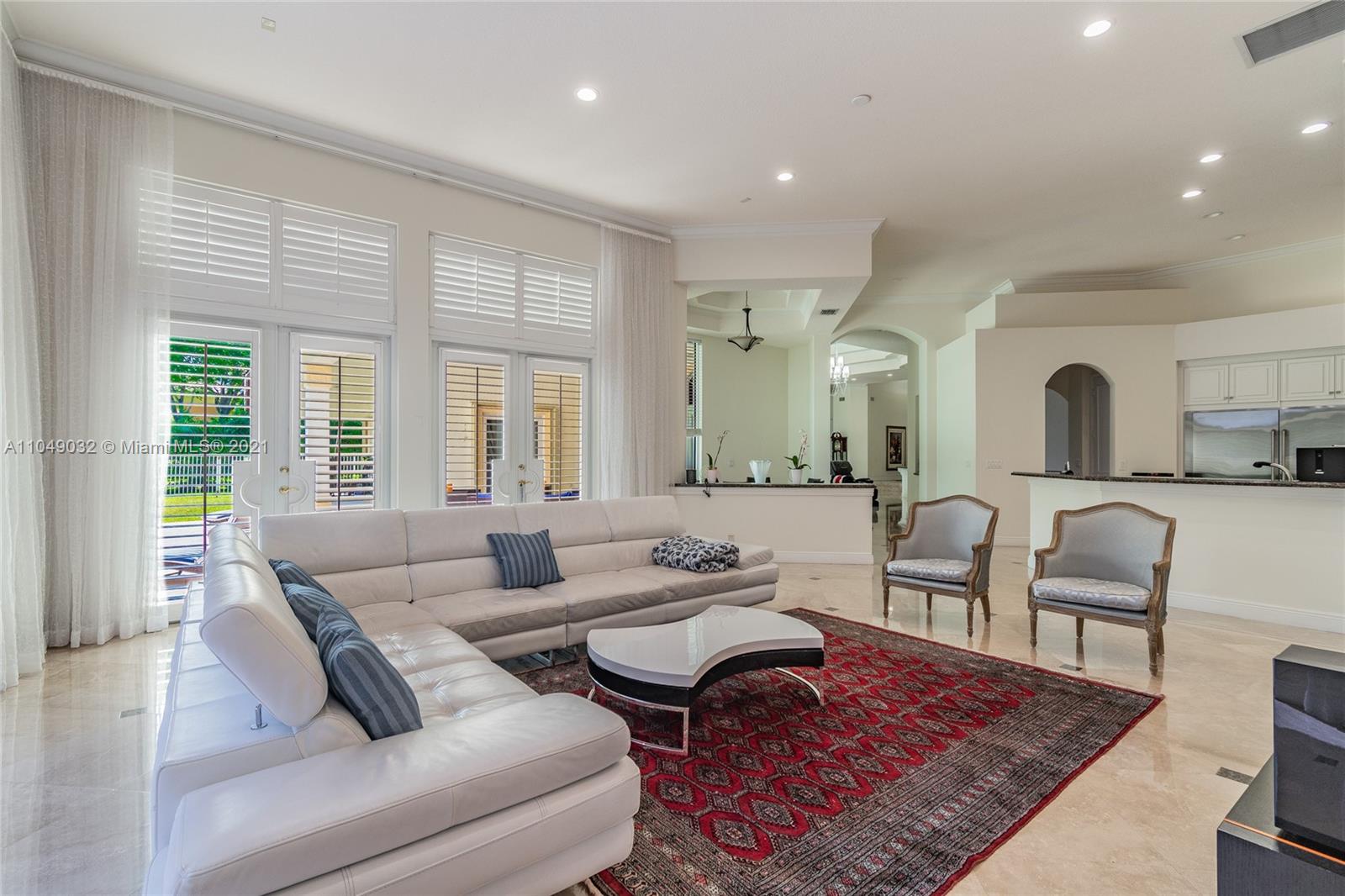 Stunning 6/6.5 pool home with expansive paver driveway. Private water views from your custom pool. Fully fenced with lush landscaping. Brand new roof, only 1 year old. Marble throughout entire home with soaring ceilings and extensive crown molding. Custom window treatment and impact windows in the front. The back windows have accordion shutters. Open concept contemporary white kitchen with island, breakfast bar, custom cabinetry, granite countertops, newer SS appliances, double ovens, oversized refrigerator, expansive pantry. The grand master suite has French doors that lead to the patio and pool. Exercise room with wet bar, his and hers baths, custom vanities, and jacuzzi tub. Office is used as media/theater room.