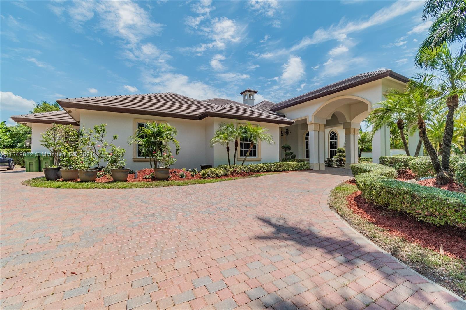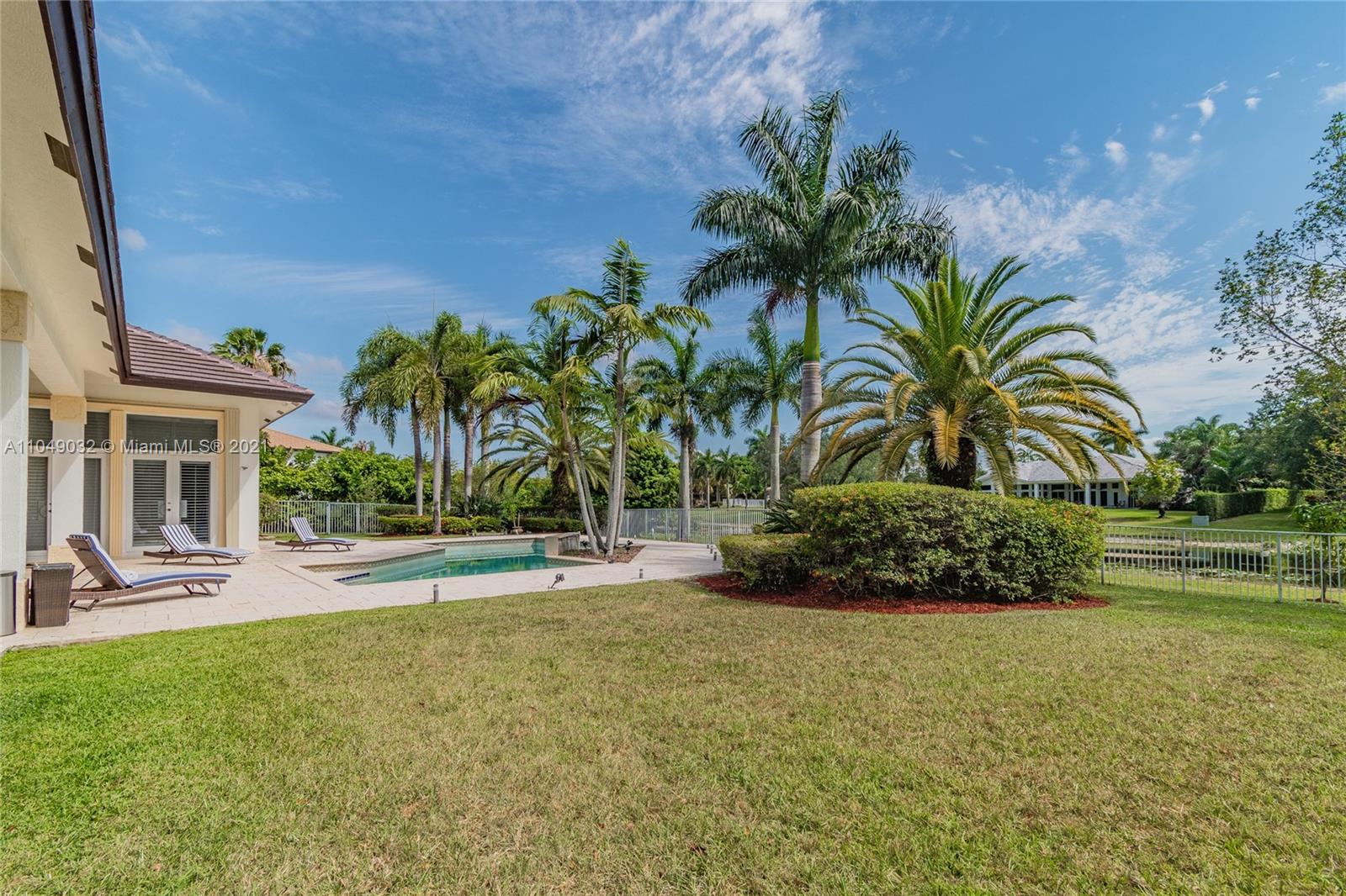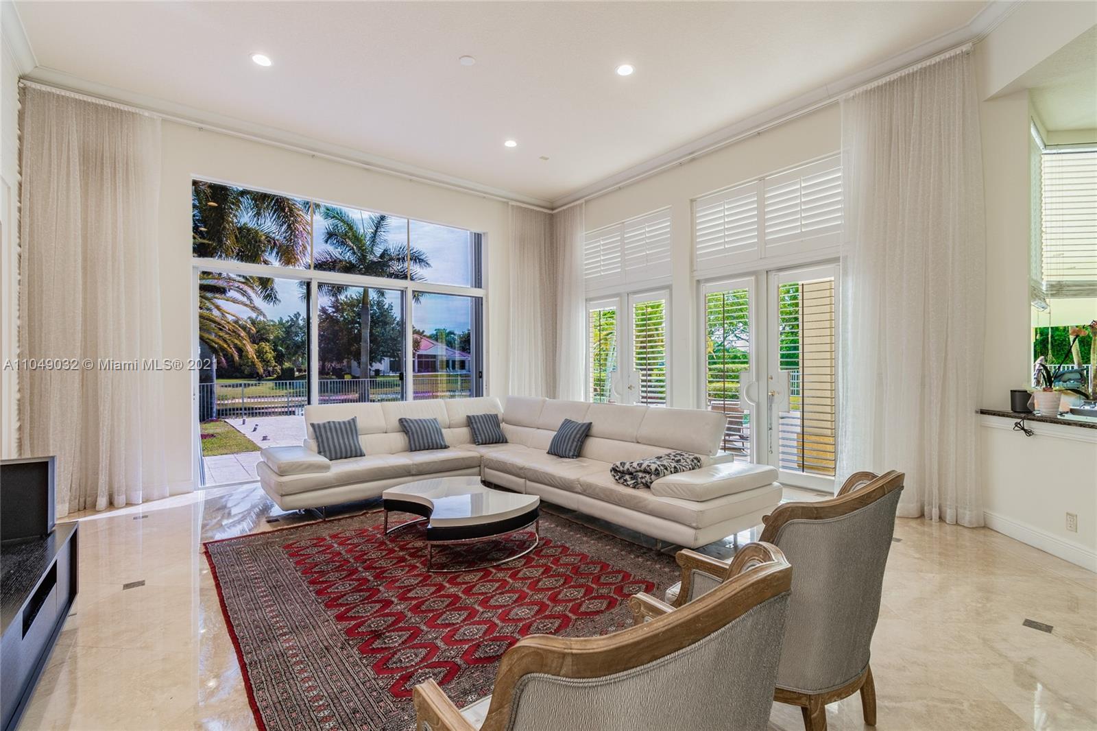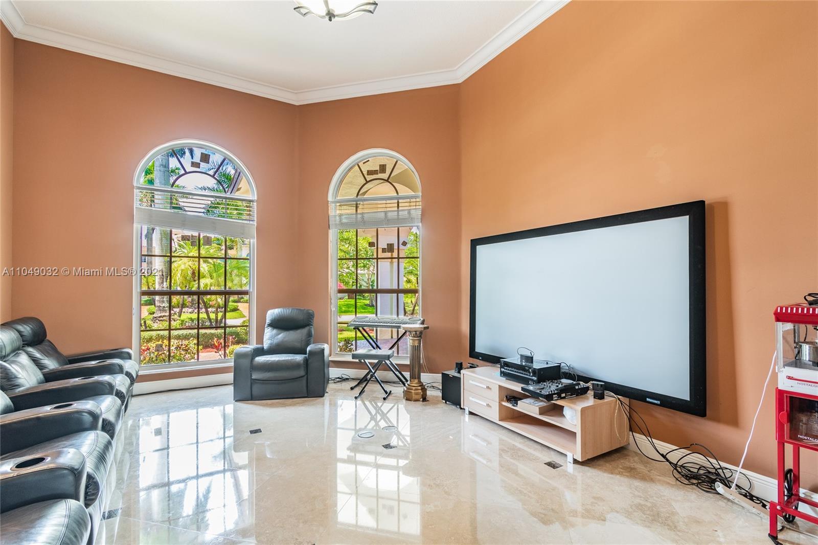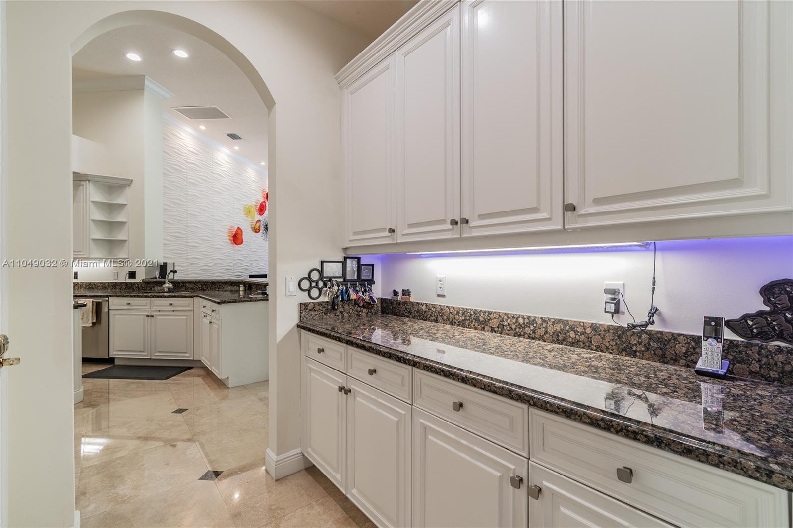 Stunning 6/6.5 pool home with expansive paver driveway. Private water views from your custom pool. Fully fenced with lush landscaping. Brand new roof, only 1 year old. Marble throughout entire home with soaring ceilings and extensive crown molding. Custom window treatment and impact windows in the front. The back windows have accordion shutters. Open concept contemporary white kitchen with island, breakfast bar, custom cabinetry, granite countertops, newer SS appliances, double ovens, oversized refrigerator, expansive pantry. The grand master suite has French doors that lead to the patio and pool. Exercise room with wet bar, his and hers baths, custom vanities, and jacuzzi tub. Office is used as media/theater room.