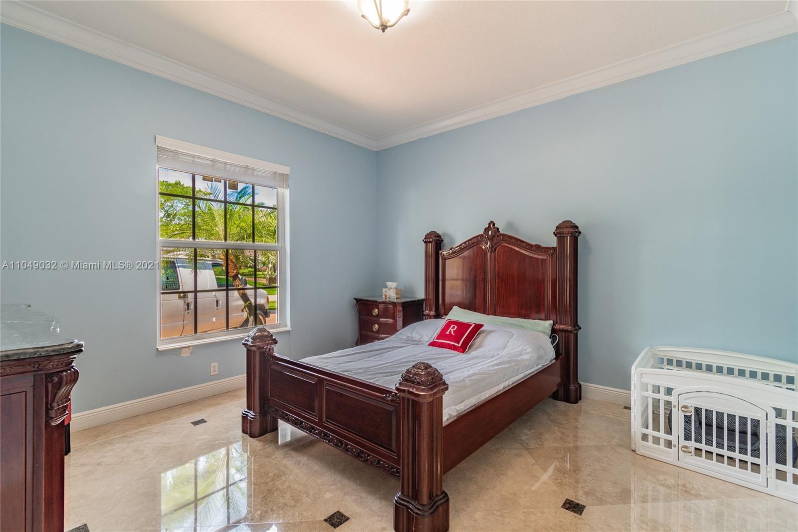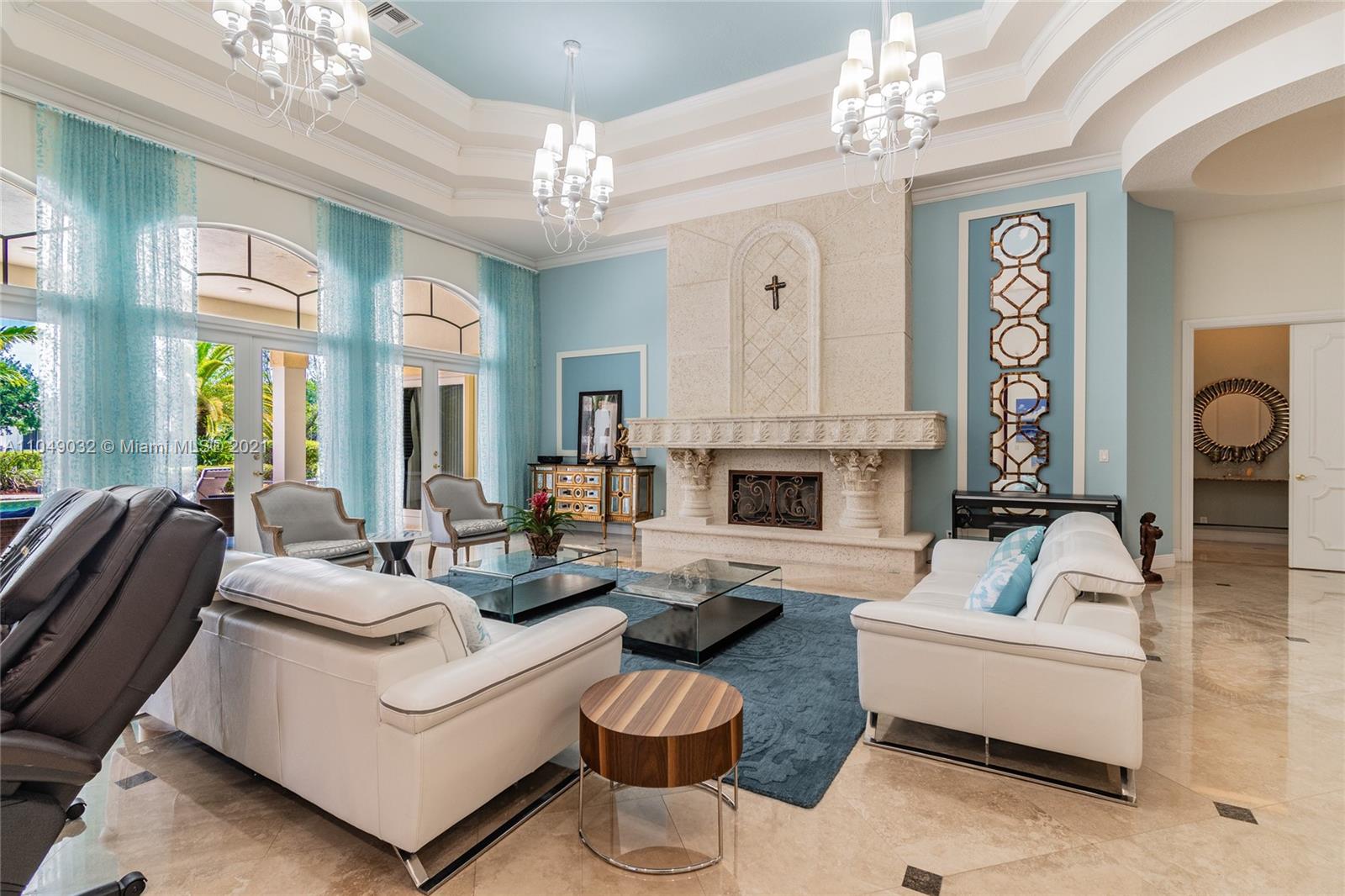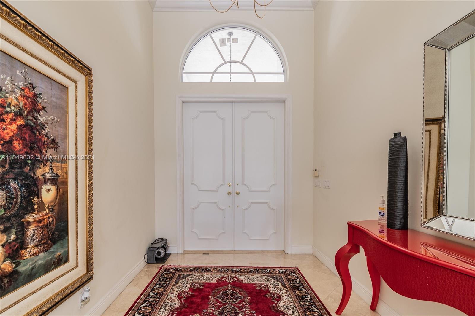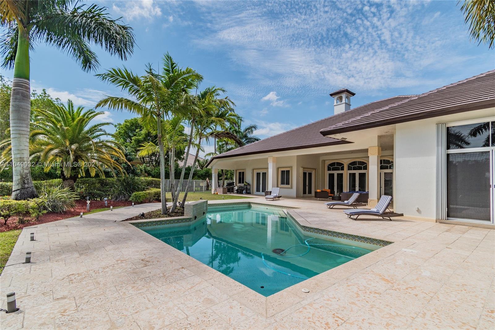Stunning 6/6.5 pool home with expansive paver driveway. Private water views from your custom pool. Fully fenced with lush landscaping. Brand new roof, only 1 year old. Marble throughout entire home with soaring ceilings and extensive crown molding. Custom window treatment and impact windows in the front. The back windows have accordion shutters. Open concept contemporary white kitchen with island, breakfast bar, custom cabinetry, granite countertops, newer SS appliances, double ovens, oversized refrigerator, expansive pantry. The grand master suite has French doors that lead to the patio and pool. Exercise room with wet bar, his and hers baths, custom vanities, and jacuzzi tub. Office is used as media/theater room.