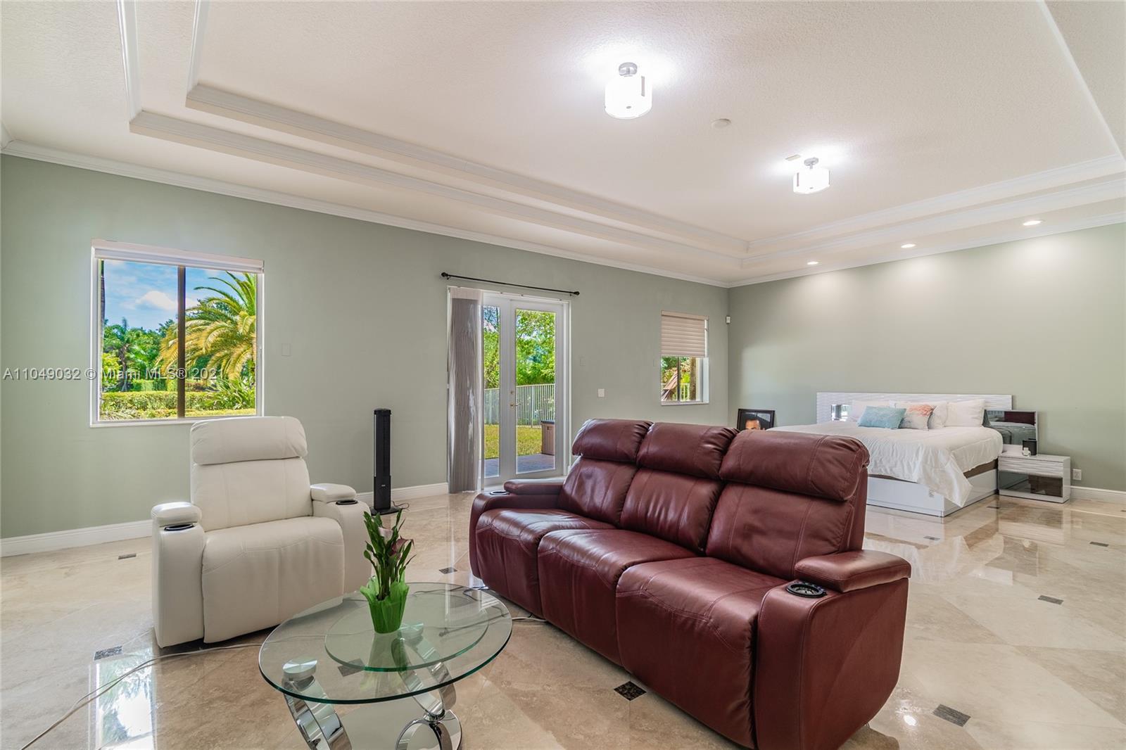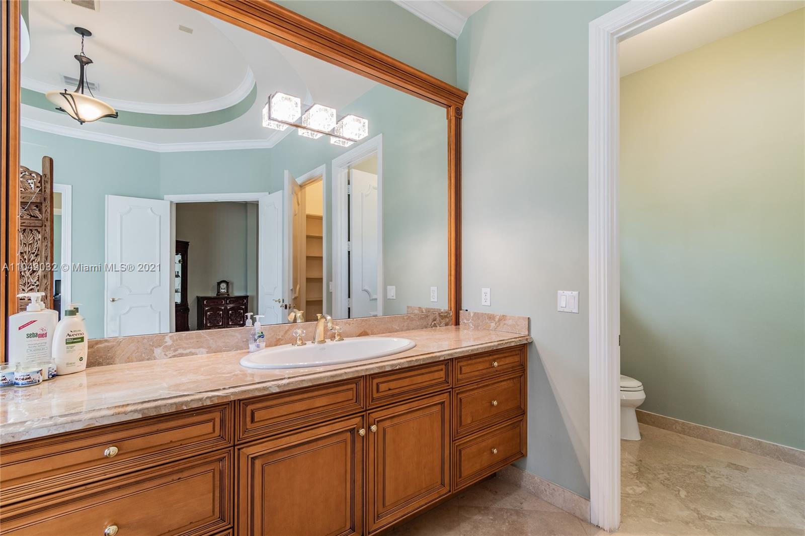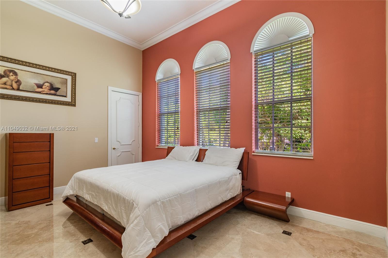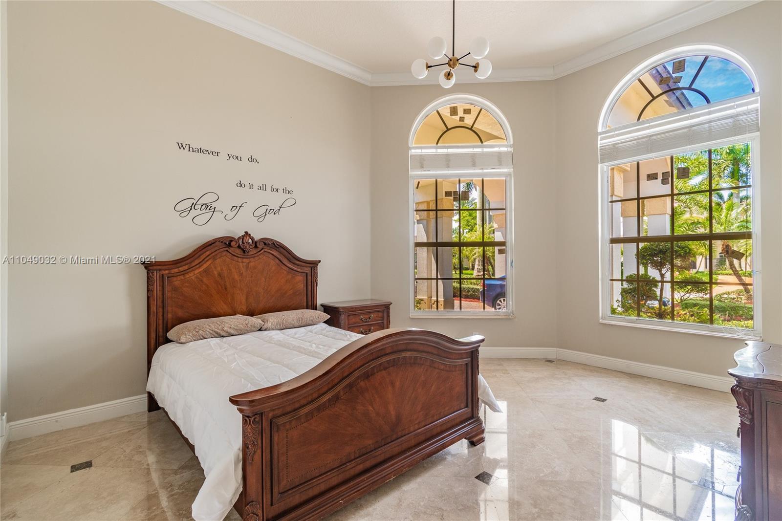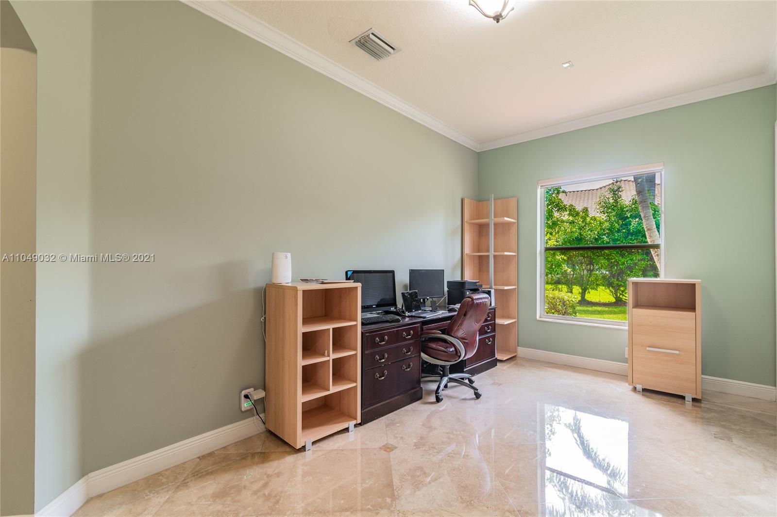 Stunning 6/6.5 pool home with expansive paver driveway. Private water views from your custom pool. Fully fenced with lush landscaping. Brand new roof, only 1 year old. Marble throughout entire home with soaring ceilings and extensive crown molding. Custom window treatment and impact windows in the front. The back windows have accordion shutters. Open concept contemporary white kitchen with island, breakfast bar, custom cabinetry, granite countertops, newer SS appliances, double ovens, oversized refrigerator, expansive pantry. The grand master suite has French doors that lead to the patio and pool. Exercise room with wet bar, his and hers baths, custom vanities, and jacuzzi tub. Office is used as media/theater room.