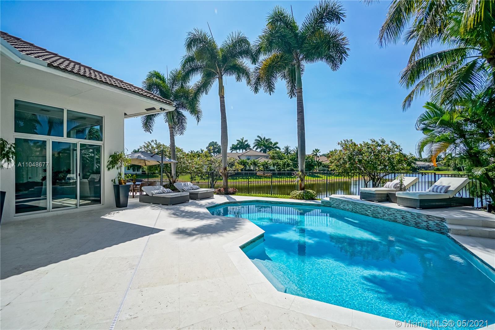 This completely remodeled and beautifully situated estate in the distinguished community of Weston Hills Country Club is one of a kind. As you enter you are welcomed by an impressive grand foyer with soaring ceilings and a beautiful view of the lake. This estate features 4 Bedrooms, 3 baths, plus an office/Den on a premium 13,169 sqft waterfront lot with a pool. Updated kitchen design with wood cabinets, granite countertop & center kitchen island. 3 car garage and circular brick pavers. Outdoor space ready to entertain and relax in your private backyard with pool and outdoor grill area. Meticulously maintained!!!