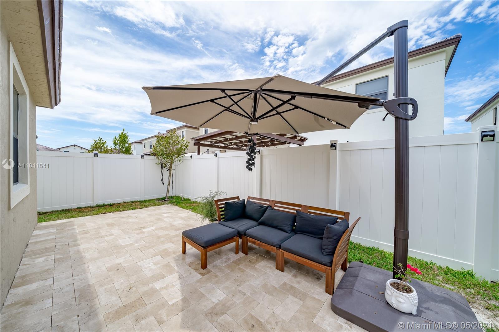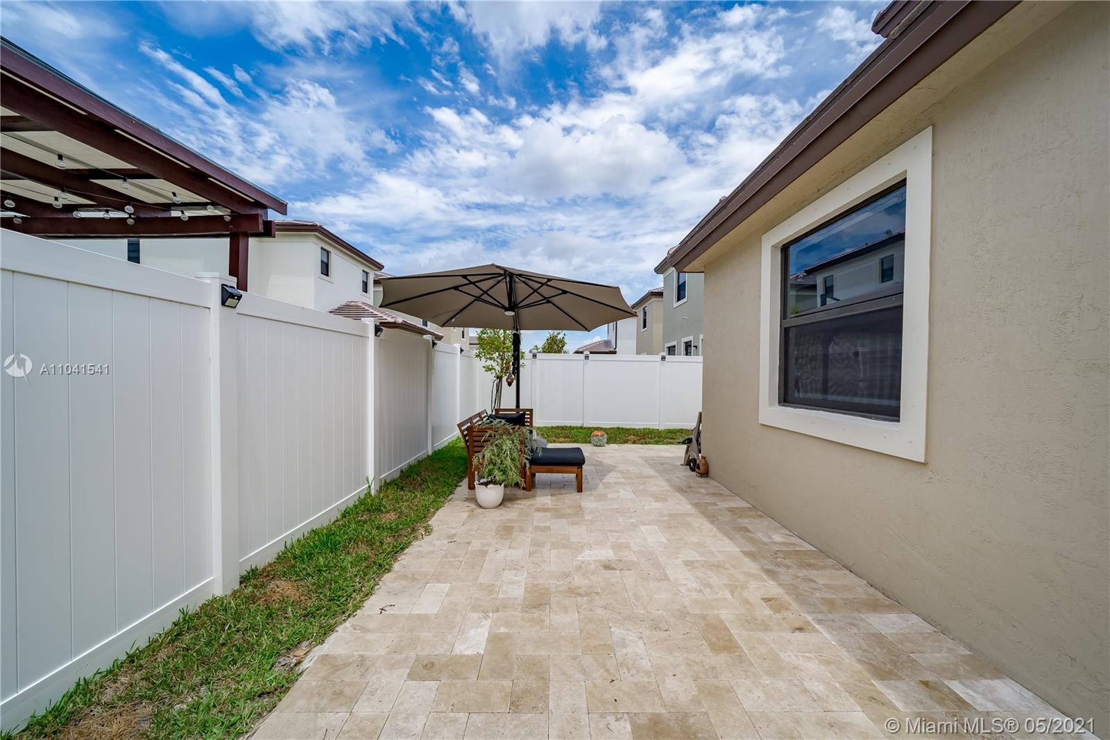 SPECTACULAR and INMACULATE 2020 house. LOTS of UPGRADES, such as PORCELAIN in the 1st floor, QUARTZITE and GRANITE counter tops in kitchen, closed-in patio with white fence and TRAVERTINE sealed pavers, upgraded dryer and washer machine (SAMSUNG), hardwood on stairs and 2nd floor, freshly painted with white and gray colors. MUST SEE IT to appreciate.