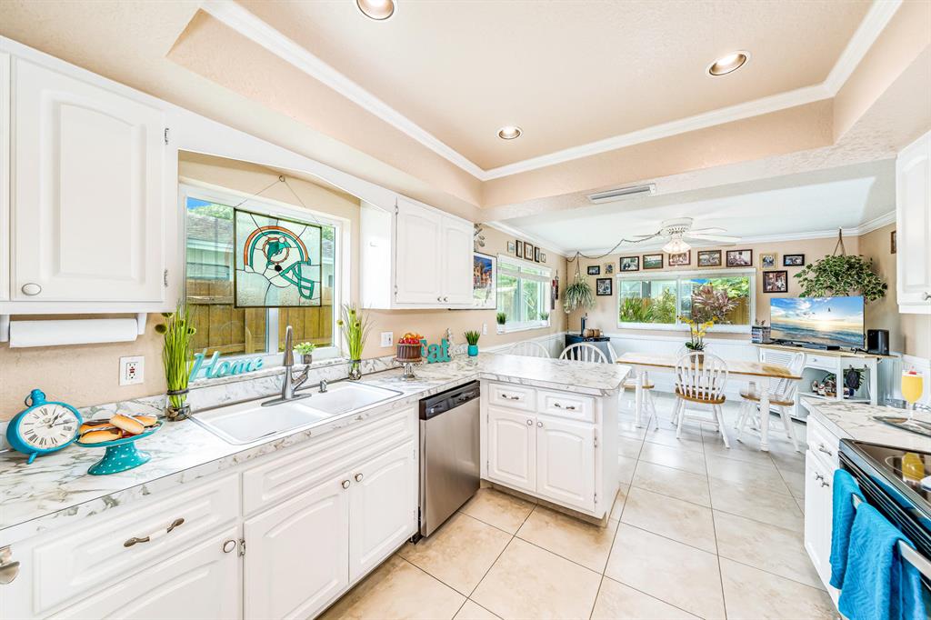 Spacious and Super Clean home with 3 bedrooms, 2baths,1 car garage, large patio & fenced in yard with tropical landscaping in Sandalfoot Cove. Tile flooring/tons of crown molding & most windows are impact glass. This home features a huge living room that is big enough to feature 2 sets of doors to go outside, Plus a formal dining room as well. Large kitchen w/sunny eat in area. Both bathrooms are updated. Great patio plus an open deck with lush landscaping &its fenced in. Sandalfoot Cove has no HOA so that means no HOA fees! Pet friendly, all ages fine! Amazing schools!