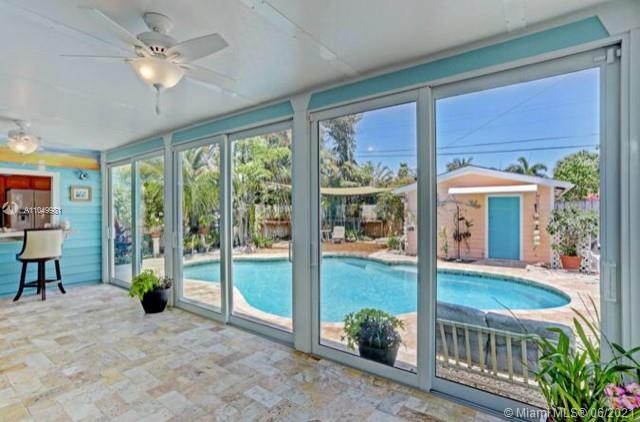 Impeccably maintained pool-home. Kitchen & Florida Rm. addition = 1482/ Total sq. ft. home under Air.(39x38). 3-BR, 2-BA + Florida room and new kitchen added to original home. Complete rear of home is open glass Florida room Hurricane-rated door-wall & full daylight shutters. Pass thru' kit. breakfast bar. Formal Liv. & Din. Rms. Walk-in closet & pantry. Lots of closet space. Hdwd. & Tile floors. Travertine in FL Rm. & pool deck. 'Cloud Pool'. Rock-Solid Shed w/AC. Easily convert to studio-Apt. Stand-by Nat gas feeds Home-generator, hot-water cooking & dryer. Never without power. Deep-well Auto-sprinkler. Munic. water/sewer. Anti-bacterial UV-light in AC sys., Regular service Contract. . Rev. Osmosis water filter, Ring door-bell, ext.cameras, Termite-bond, fully-fenced front & back.