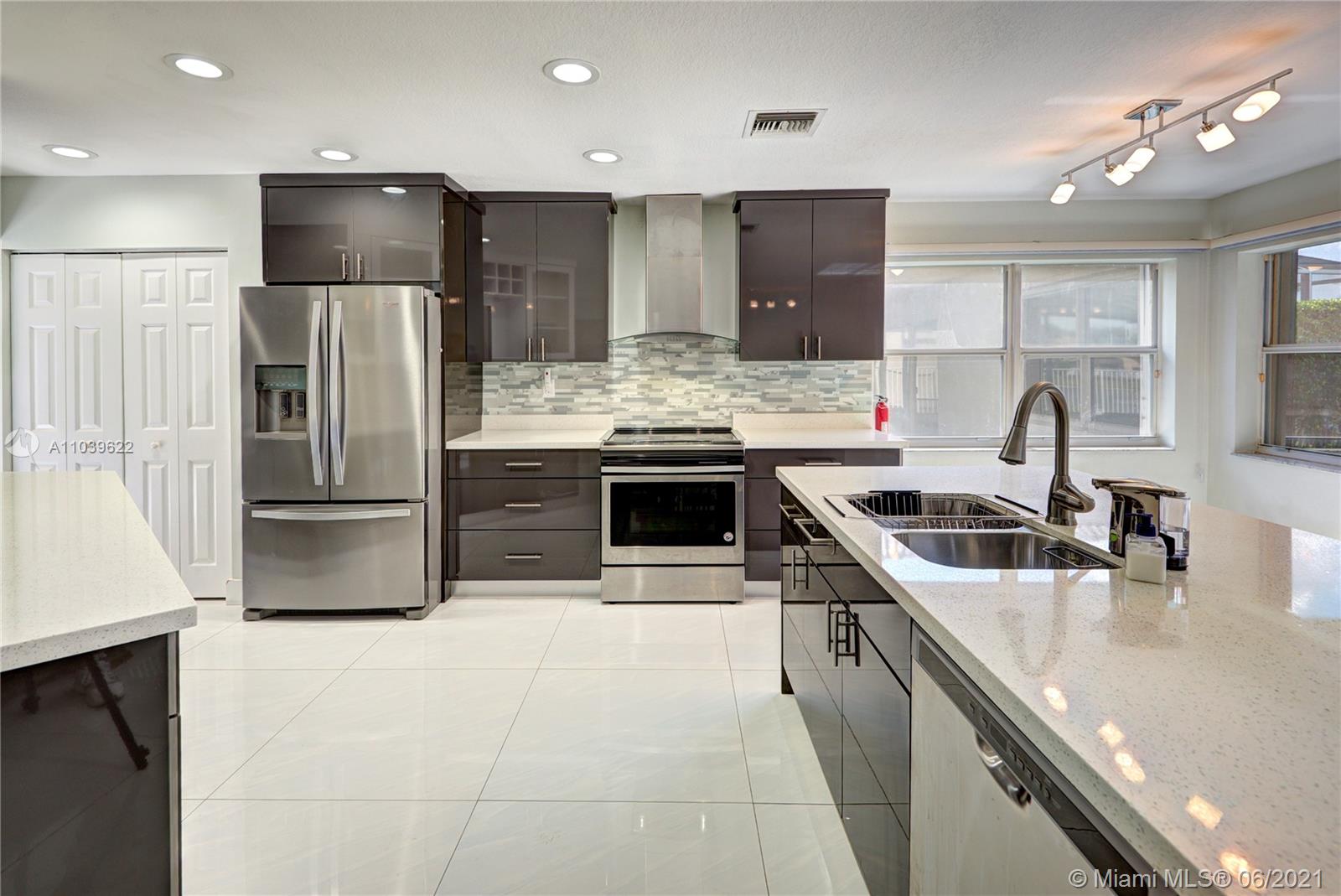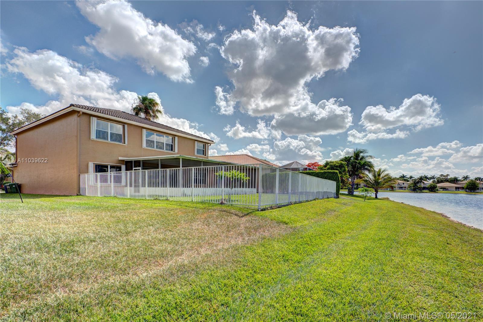 Amazing lake view home in Emerald Estates Weston Florida. Totally Remodeled large 4 bedrooms,3 bath,2 car garage with loft. Open floor plan with vaulted ceilings. Newer kitchen with Quartz counters, stainless appliances & range hood. Marble flooring on 1st floor, laminate on 2nd floor. Master bedroom upstairs with walk-in closet, bathroom with jetted tub, glass enclosed shower, and dual sinks. Jack & Jill bed/bath combo, and open loft perfect for office or den. Bedroom on 1st floor with full bath. Laundry room with cabinets, and storage closet. Enjoy the lake view from the over-sized roofed, screened patio. Accordion shutters on all windows. HOA fee includes: lawn, sprinklers, alarm, basic cable, 24 hour guard gate, pool, kid's play area & fitness room. Close to shopping & major highways.