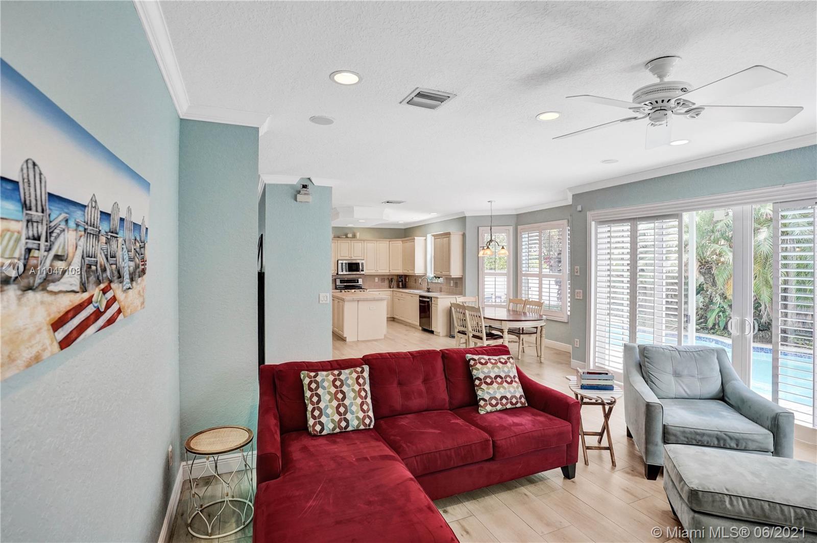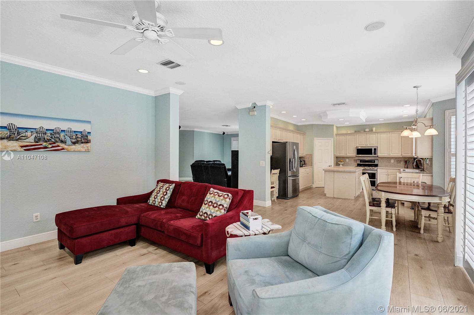Stunning upgraded pool home in desirable Riviera Isles! 5 bed plus den/office. Impeccable home with amazing natural light. Open floor plan with large social areas. Gourmet kitchen with center island and newer stainless steel appliances. Hardwood flooring on the ground floor and newer ceramic tile on staircase and landing. Large master suite with sitting area and huge California walk-in closet. Laundry room on the second floor. Upgraded bathrooms, crown molding, recessed lights, elegant light fixtures, plantation shutters, accordion shutters second floor, sliding doors and master suite window are impact, fresh interior paint. Gorgeous fenced patio with custom waterfall pool, summer kitchen & professional landscaping, perfect for entertaining! Resort style clubhouse with lots of amenities.