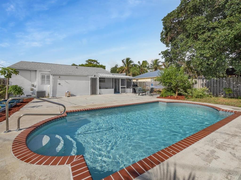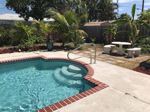 Highly sought after South Florida living with style 3Bd/1Ba with pool. This home offers an open concept living with a gorgeous kitchen, Quartz countertops and newer stainless steel appliances. Charming original solid hardwood floors throughout. Bedrooms are roomy and bright. Remodeled bathroom with large tub. Plantation shutters installed on all the windows. Impact hurricane rated front door & easy to install Armor Screen protection on all openings. Roof replaced in 2020. Newer A/C and large laundry room. Dreamy backyard with salt water pool ready to entertain your family and guests. Fully fenced backyard with plenty of room to garden and park a boat or RV. Located on a quiet street blocks from the intracoastal, a few minutes from the beach, close to the best restaurants in the area,