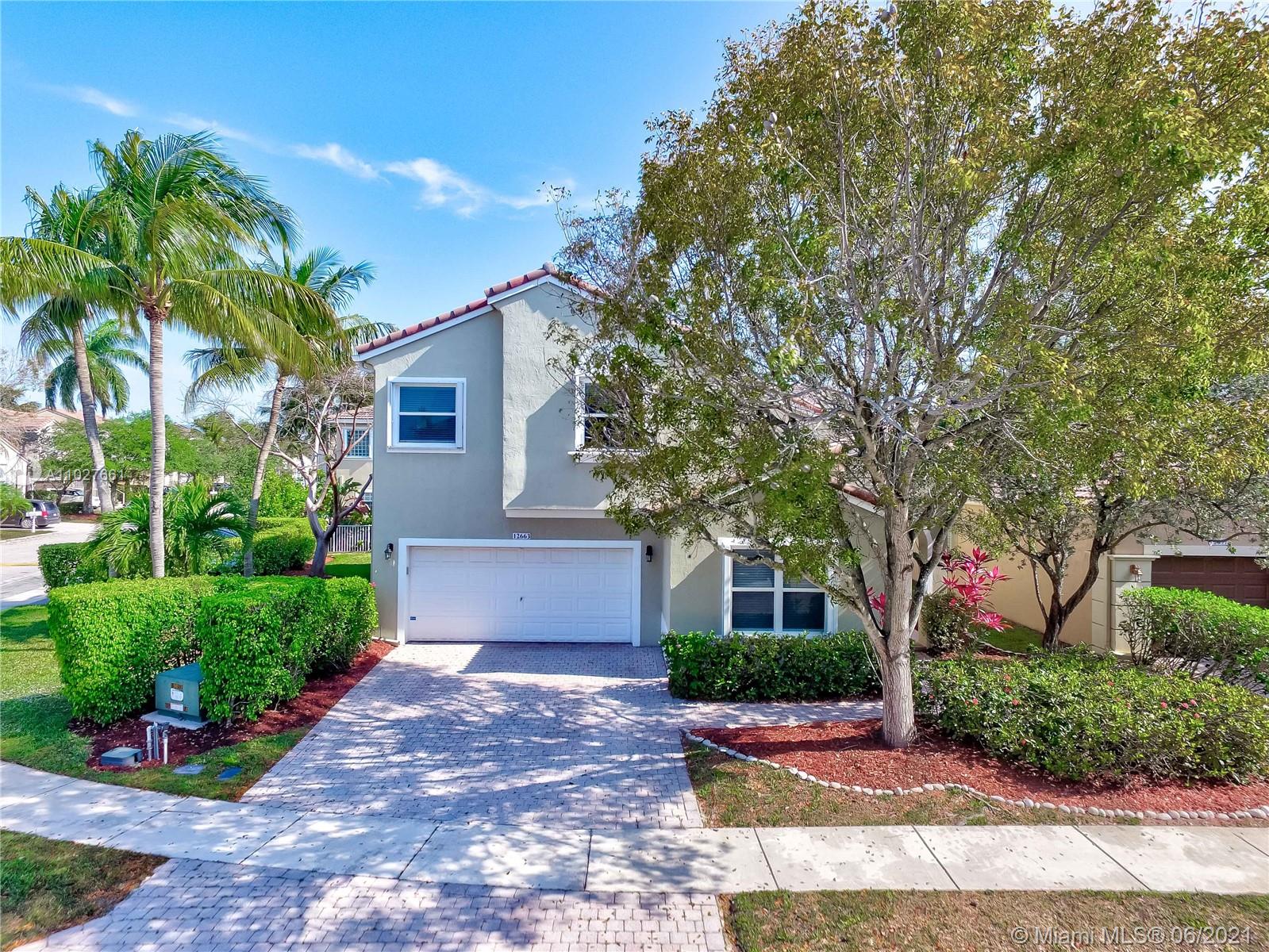 A MUST SEE!!! Absolutely gorgeous single family home in desirable gated community of Viscaya. Immaculate conditions 3 bedroom, 3 bathroom with 1 bedroom on ground floor, has everything you have been looking for! This home boast spacious living areas with open floor plan. Premium corner lot. Remodeled kitchen 2018, Granite counter tops, SS appliances. Great quality laminated floors, full impact windows, plus full accordion shutters. Built in closets. Whole house wired for CAT 5. Great schools. Great neighborhood. HOA includes, lawn, cable, security service, pool, gym, tennis, and common grounds.