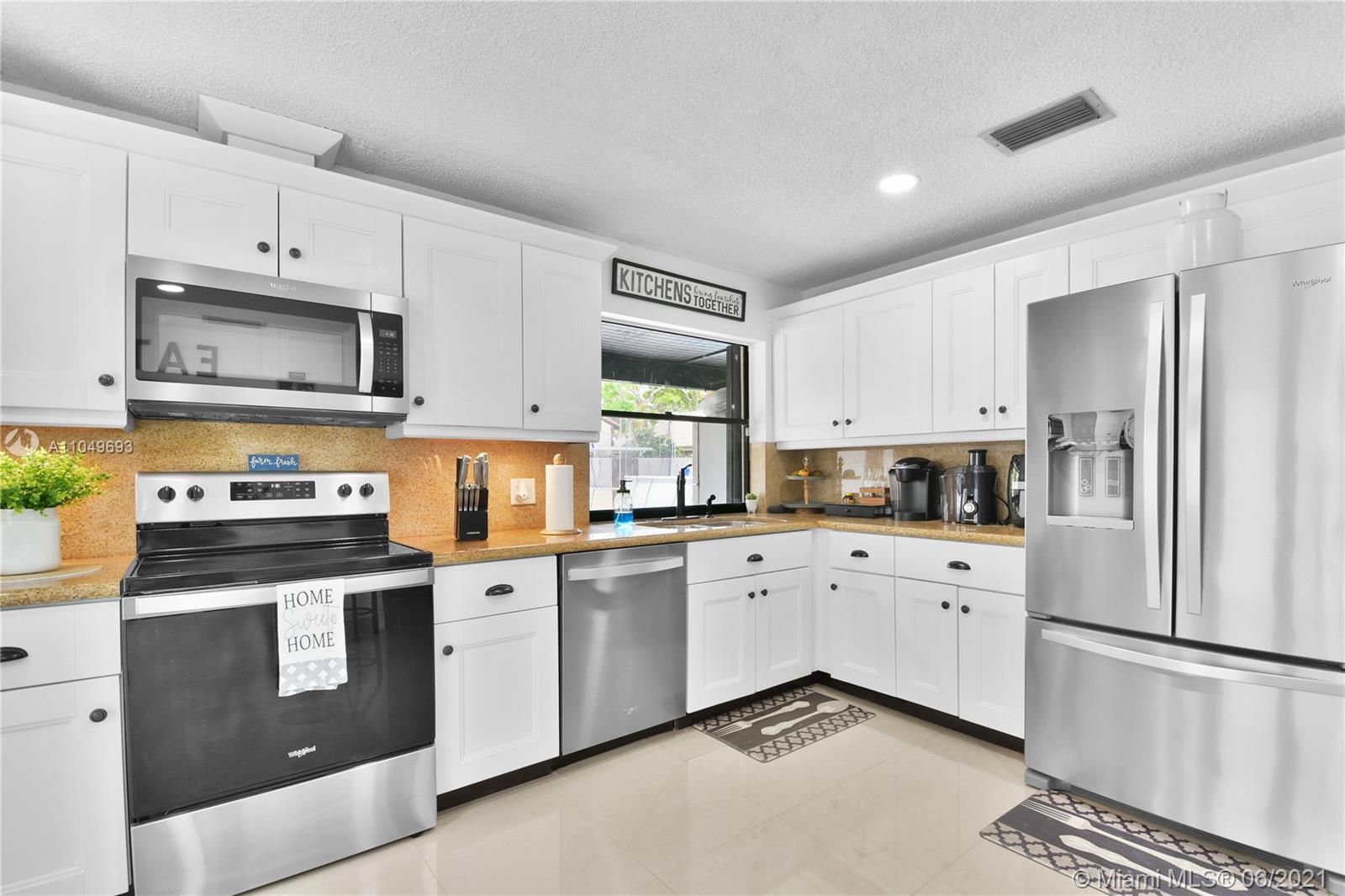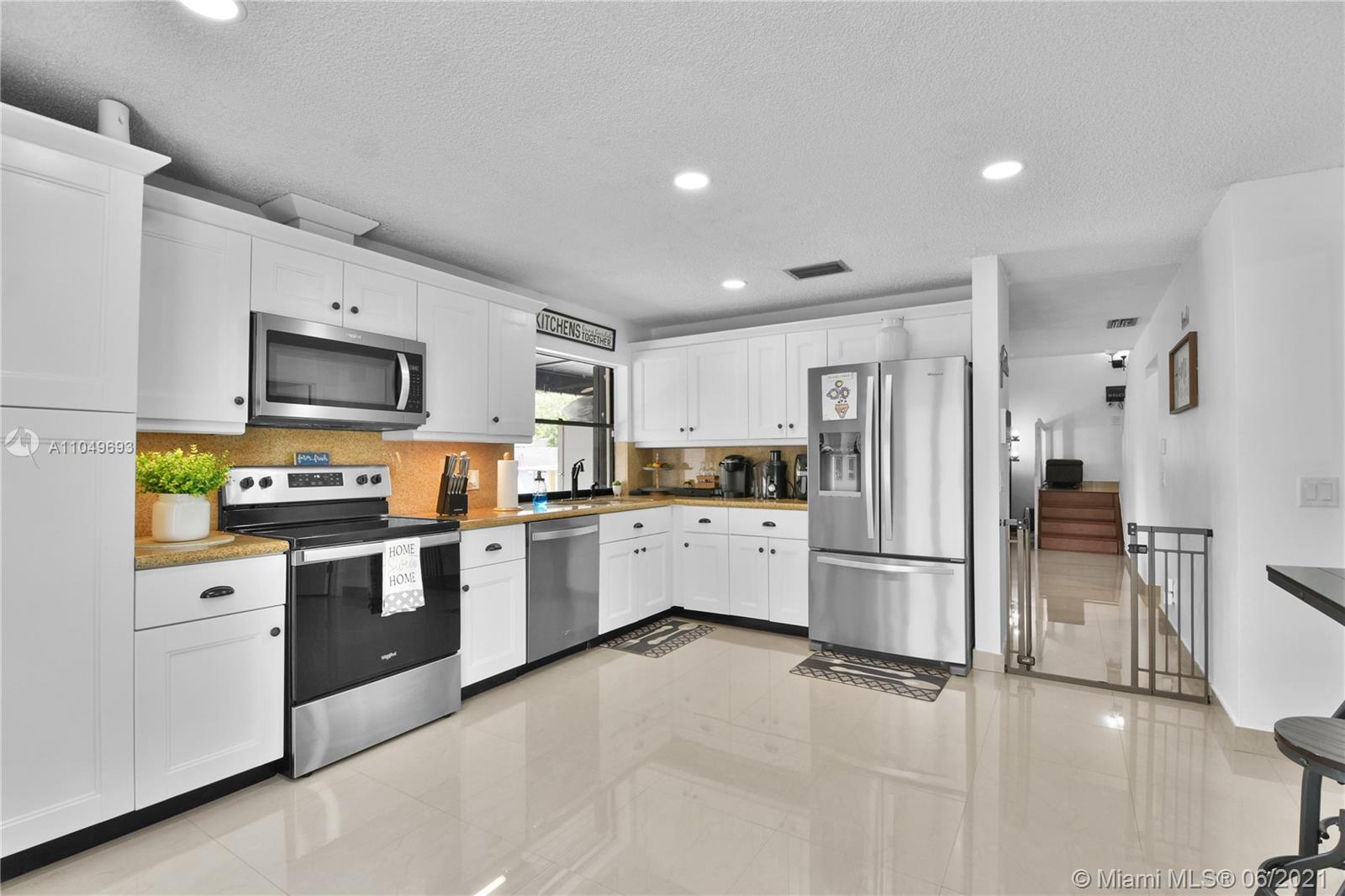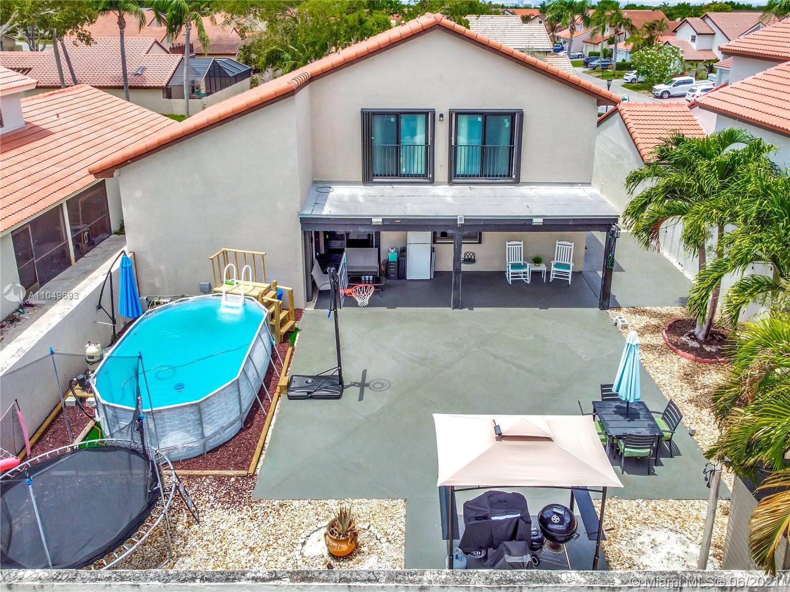 This Moors development home built in 1985 has an exceptional blend of modern and functional living spaces. Highlights include: porcelain tiles on the ground floor, a touch of laminate wood flooring on the second story and updated tiled bathrooms. This desired home is being sold with newer appliances, updated cabinets, a full size outdoor trampoline and above ground pool. This eye catching property located in Hialeah features an interior/exterior fresh coat of paint; an outdoor concrete slab in the backyard for grilling/entertainment. Accordion Style Hurricane Shutters have been installed on all doors and windows, with a roof that’s just shy of 5 years old. In addition, the garage has been partially converted into a storage/laundry room.