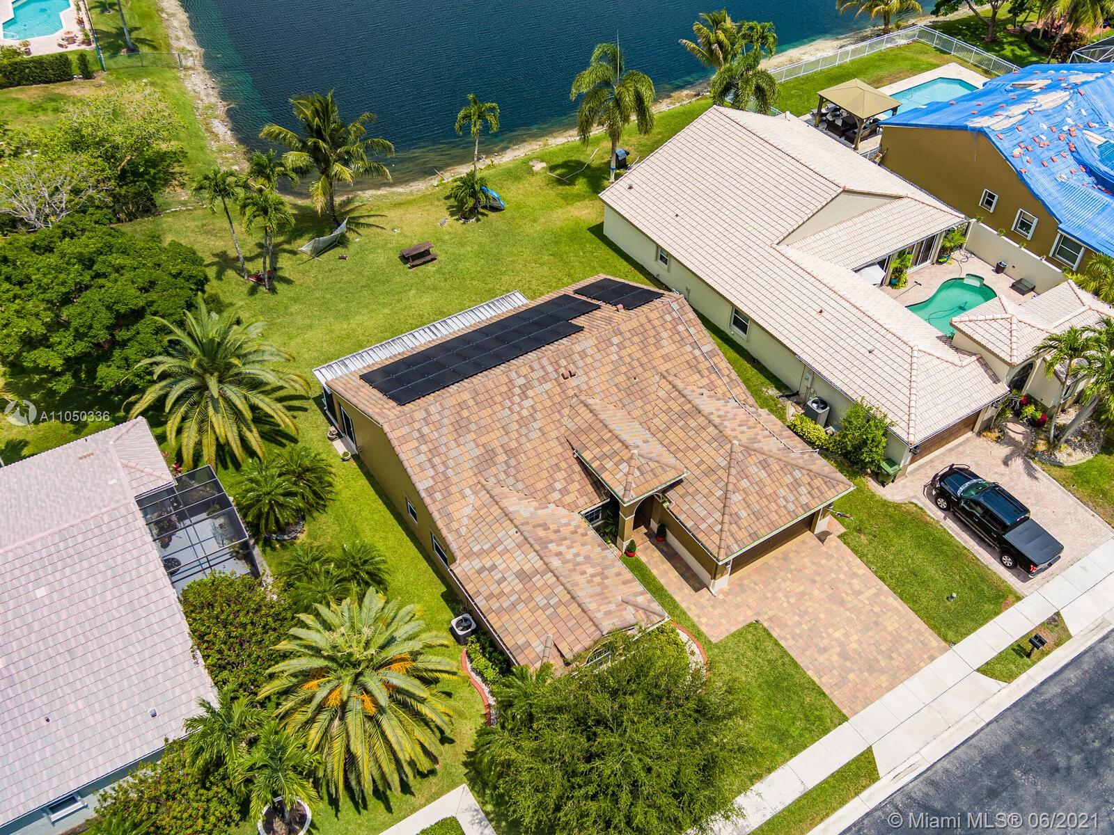 It’s breathtaking from the minute you drive up! Great Curb appeal with modern paver driveway! Step inside this immaculate home & you are greeted by volume ceiling & a freshly painted interior. Large formal living & dining room spaces great for indoor entertainment. Spacious family room & upgraded kitchen w/ a brand new stove, granite counters & real wood cabinets overlooking serene Lakeview. Step outside to a large, covered patio with a sitting area & separate dining space perfect for those summer BBQs. Outdoor space was extended & is screened in. This home also boasts a NEWER ROOF complete with solar panels which is a huge cost savings. Upgraded master bathroom dual sinks & separate tub and shower. Huge backyard with plenty of space for a pool. Garage partially converted to 4th bedroom.