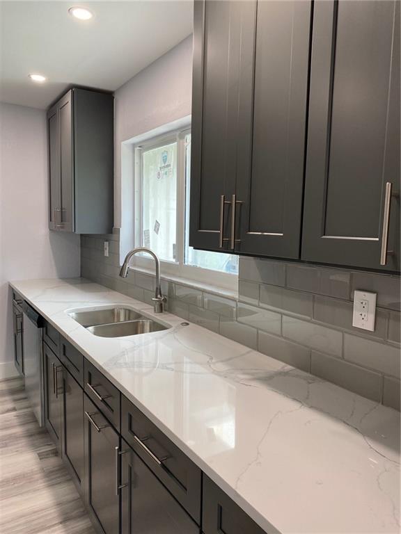 Gorgeous absolutely turnkey updated and substantially remodeled home! Large expansive bright open space defines the family, dining and living room that invites contemporary living. This living area measures 44ft4" X 14ft9". New Hurricane impact windows and doors. Updated permitted electric panel. Roof 4 years new. All new kitchen cabinets with stunning quartz countertops and new SS appliances. New flooring and new interior trim throughout home. New water heater. 3 year new AC. New lighted ceiling fans in all bedrooms and living room area. Bathrooms are completely designer updated. Lots of closet space. Fenced-in yard with new sod. Large lot with room for a pool!! Separate large laundry room. Established mature tree lined neighborhood. The details in this home will impress everyone's taste!