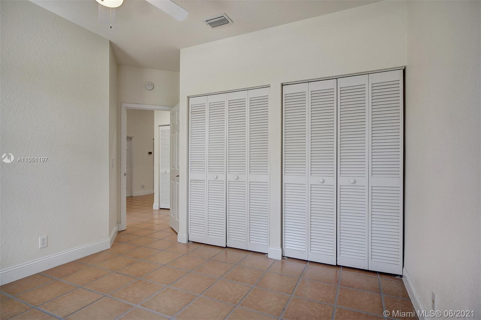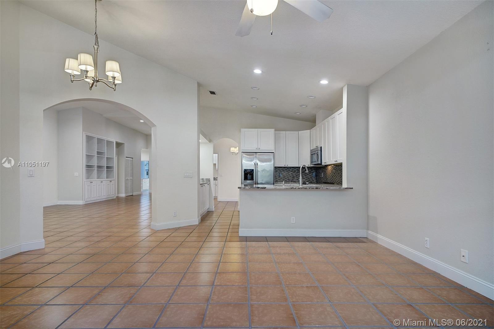 Pristine home in the gated community of Grand Palms in Pembroke Pines offers a split plan design w/ vaulted ceilings, recessed lighting, neutral color tones and open-concept which offers a modern and functional layout. This property also boasts a screen enclosed patio with partial golf course views, ADT alarm system, Ring video cameras, generator hookup, two car garage with partially converted attic, built-ins throughout the living area and master closet and accordion shutters.