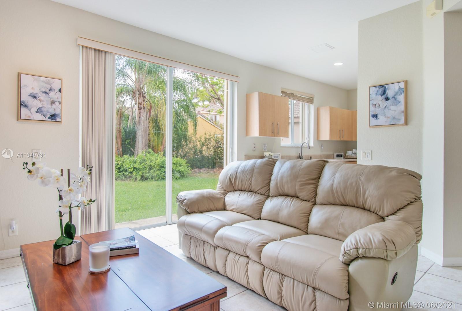 Welcoming and well maintained, 2-story home and features 3 ample bedrooms, 2.5 bathrooms, and a 2-car garage on a generous lot. Imagine living surrounded by this abundant natural light. The home interior is complete with ceramic tiles on 1st floor & carpet on 2nd floor. Accordion shutters & impact doors. New LG Suite S/S appliances make the house practical and beautiful. Amazing recreational facilities in the community: lap pool, resort pool, waterslide, kiddy & baby pools, miniature golf, multi-purpose field, roller hockey ring basketball court will certainly keep your family healthy and entertained. Weston’s A+ rated schools are recognized state-wide. Commercial plaza just north of this guard-gated community is a convenient destination for your daily needs. Come and see it for yourself.