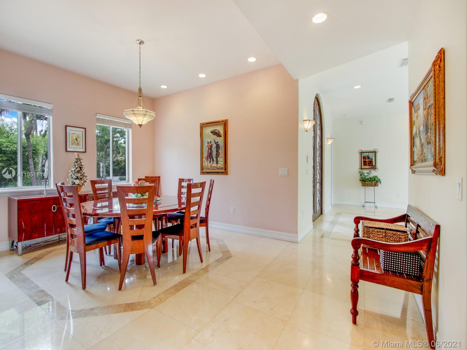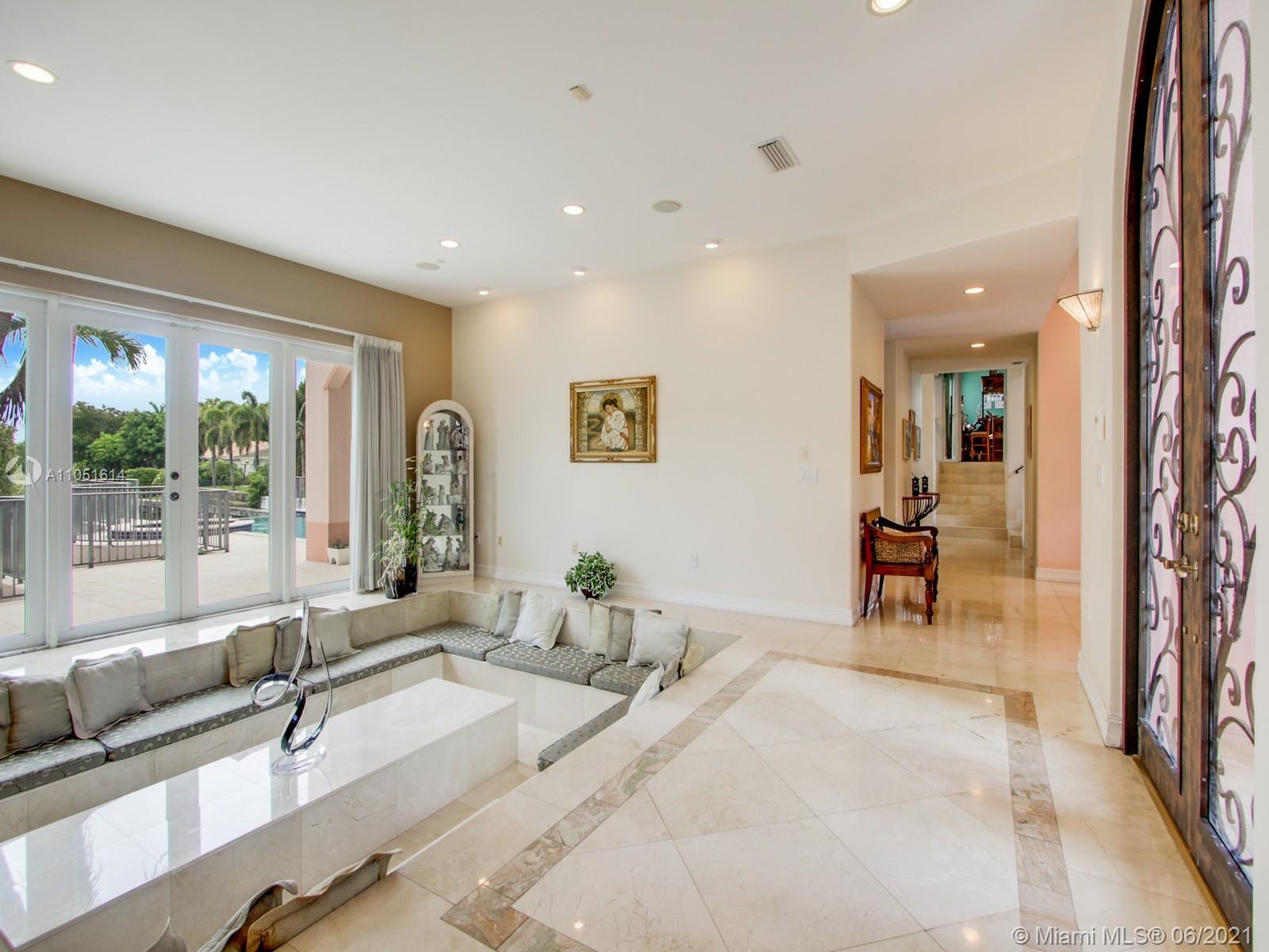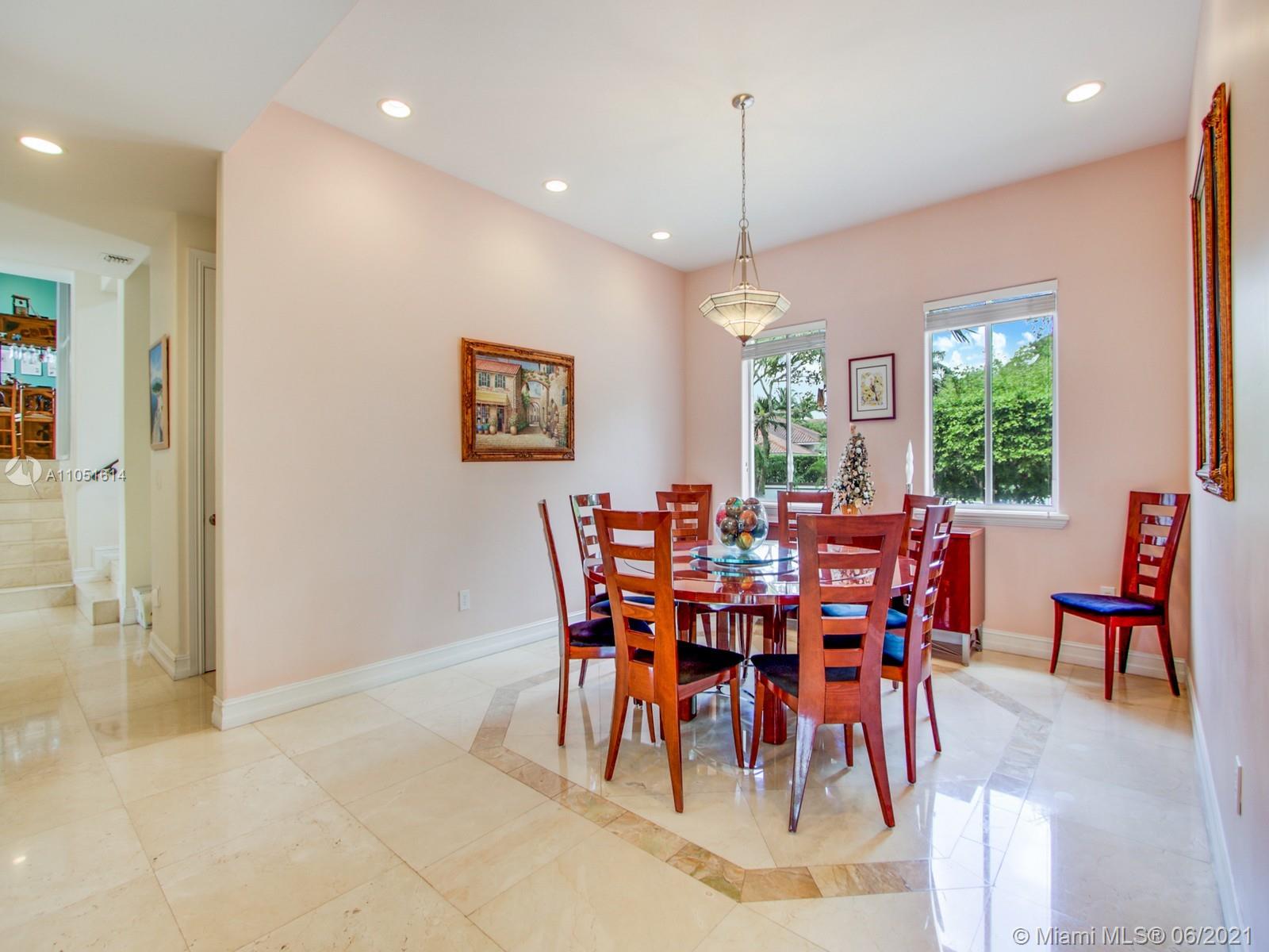 One of only a few end lot homes in Gables by the Sea, this grand 4,407 SF home sits at the end of the waterway with lush landscaping for the ultimate in waterfront privacy. At 12,500 SF, the lot is open and sunny, with water views in the backyard, a beautiful infinity edge pool, and large covered terraces both upstairs and downstairs for outdoor entertaining. Inside, the spacious home boasts 12 foot ceilings, a large eat in kitchen that connects to the family room, formal living and dining rooms, and a separate game room. Each of the home’s 5 bedrooms has its own en-suite bath, and an upstairs laundry room & kitchenette provide the ultimate in convenience. Gorgeous 2 story Mediterranean style home built in 2002 offers great frontage on Red Road w/quick access in & out of the neighborhood.