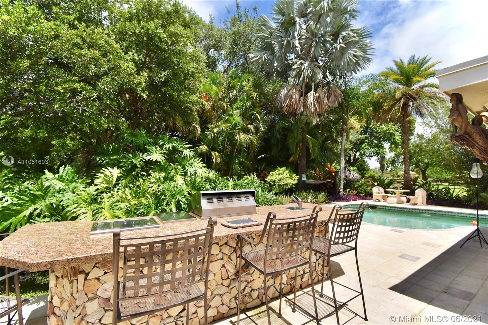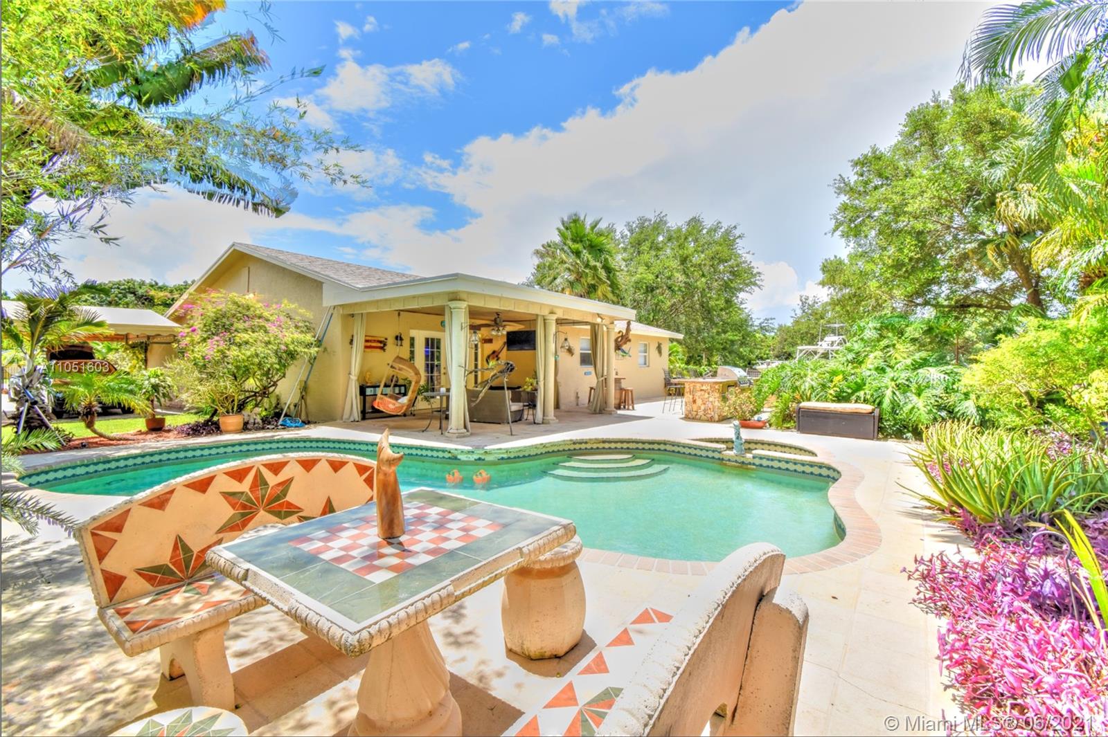 Davie ,South Florida Much desired 3/2 house, on an over 45,000 square foot lot with open concept floor plan PLUS An additional 1,400 sq ft CBS 3 Garage can be easily converted into a second home for large/multi family living. Outdoor Kitchen, Pool New roof (2020) New crown molding and baseboards. Amenities include two electric entry gates, two vehicle covered carport with parking for 6 vehicles, pool/hot tub, outdoor kitchen/grill, and 3 horse stalls. New roof under a year old. New porcelain tiles throughout. New paint inside and out, crown molding, Located in quite cul-de-sac. Updated extended master bedroom and walking closets.