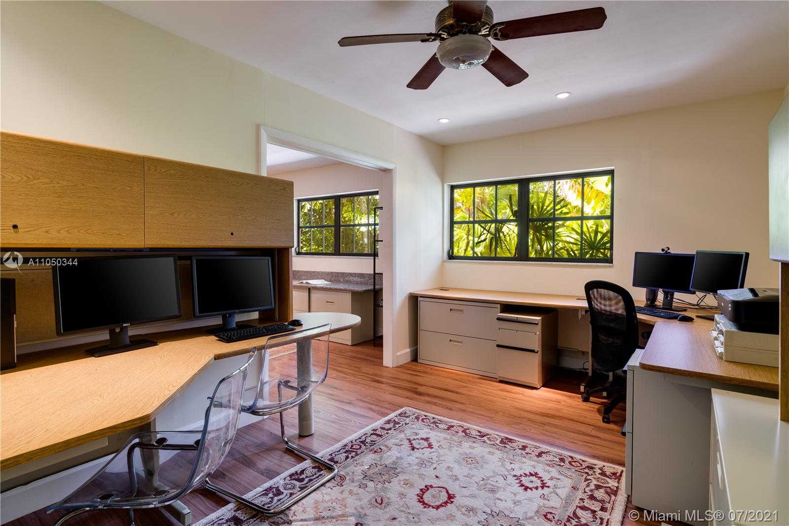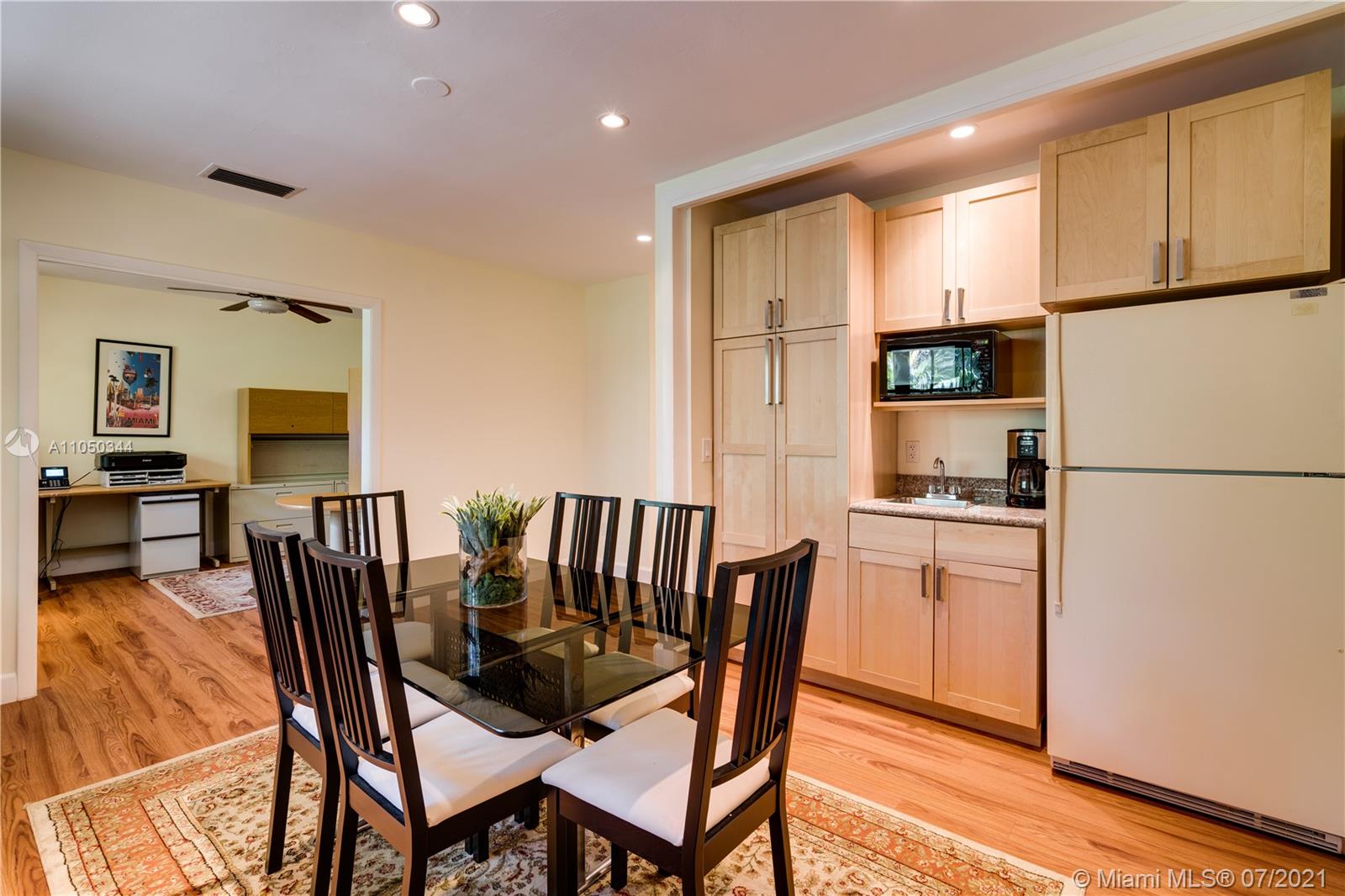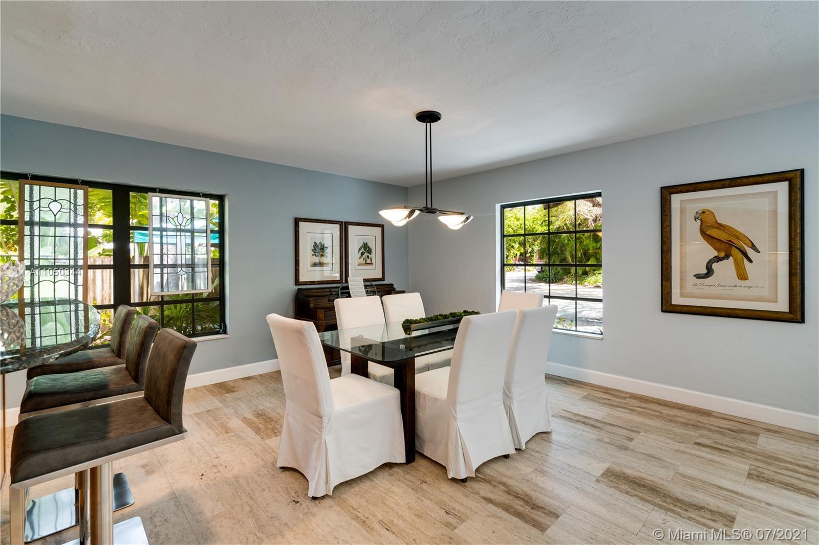 This highly sought-after Coconut Grove address is the location of this beautiful 5-bedroom home with more versatility than can be imagined. It provides a near perfect balance of living and working spaces. All the bedrooms are oversized with generous closets. The main suite has both a lavish, remodeled bath as well as a bonus room which can serve as a gym, studio or office. The elegant living room with its classic fireplace adjoins a remodeled kitchen and dining area that is the heart of the home. A generous in-law suite, office and family room provides additional room for everyone to live, work and play. The ideal U-shape floorplan provides a view of the sparkling pool from almost every room in the house. Located in Flood Zone X, no flood insurance is required. A Very Special Home.