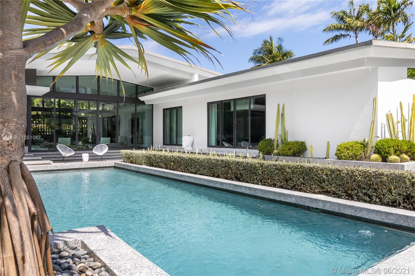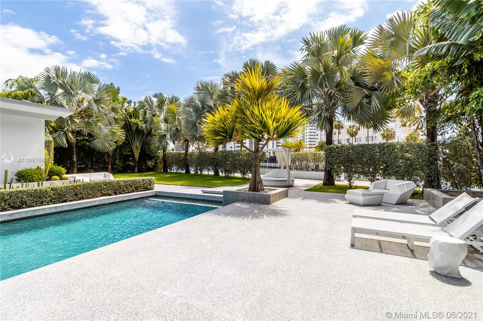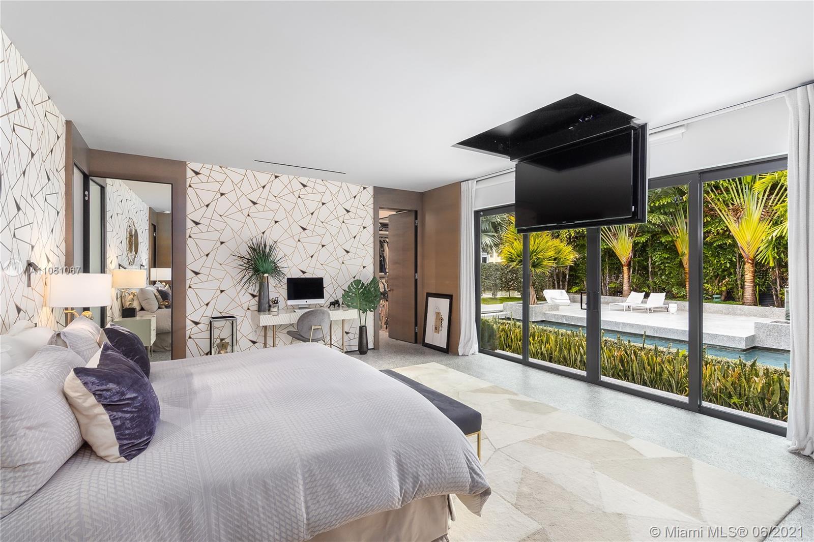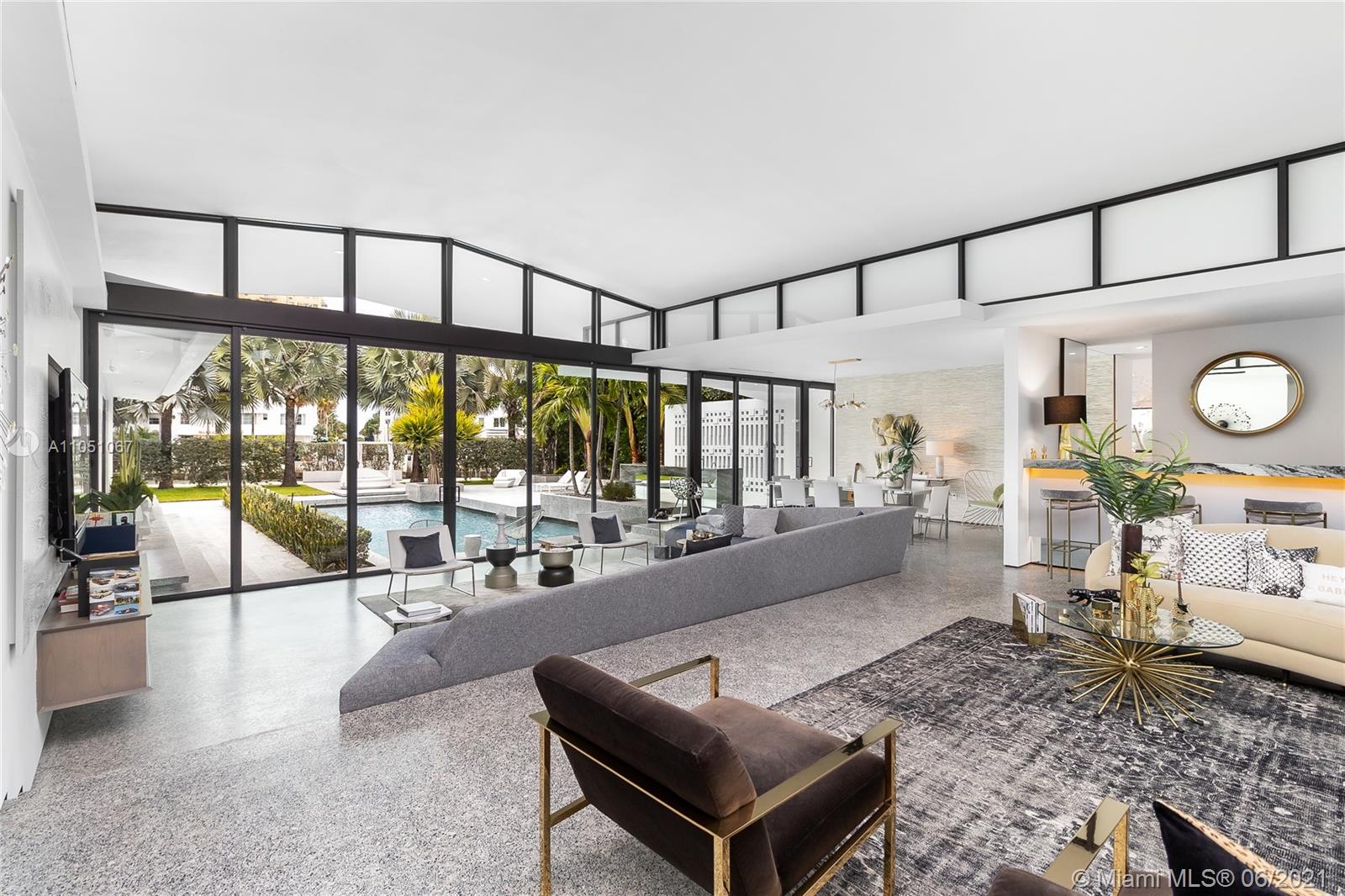 HOUSE ALSO FOR RENT. Luxury Miami living is yours in this waterfront estate. This impressive residence has been meticulously renovated with high-end and top of the line finishes throughout. Only minutes to the best restaurants and shopping of South Beach, as well as the MB golf course and the ocean! The two-year renovation was orchestrated by renowned French architect/designer Jean-Louis Deniot (of Elysee Condo in Miami, Nolinsky Hotel in Paris and Waldorf Astoria NYC fame), who originally built this for himself. Includes vaulted 14 ft ceilings, 2 marble wet-bars, fire feature, complete sliding front & back sliding doors. A modern kitchen, Wolf & SubZero, Dornbracht, Lutron, security cameras, heated pool, dock, and seawall.