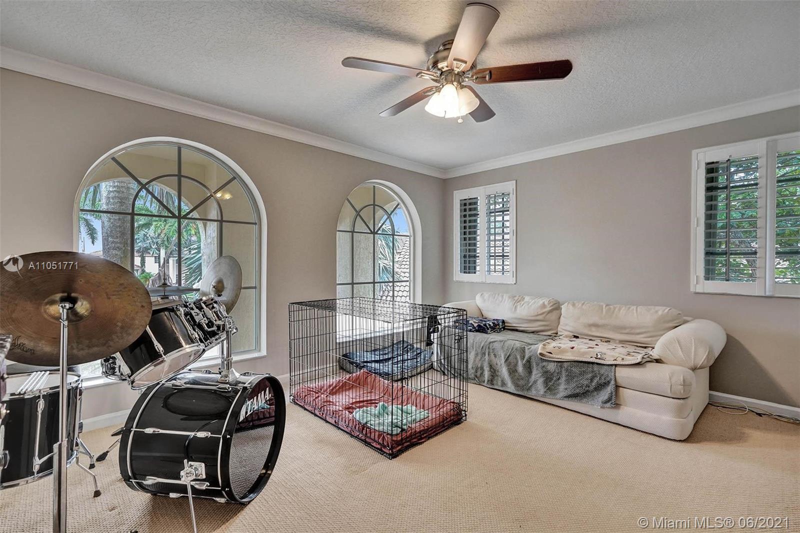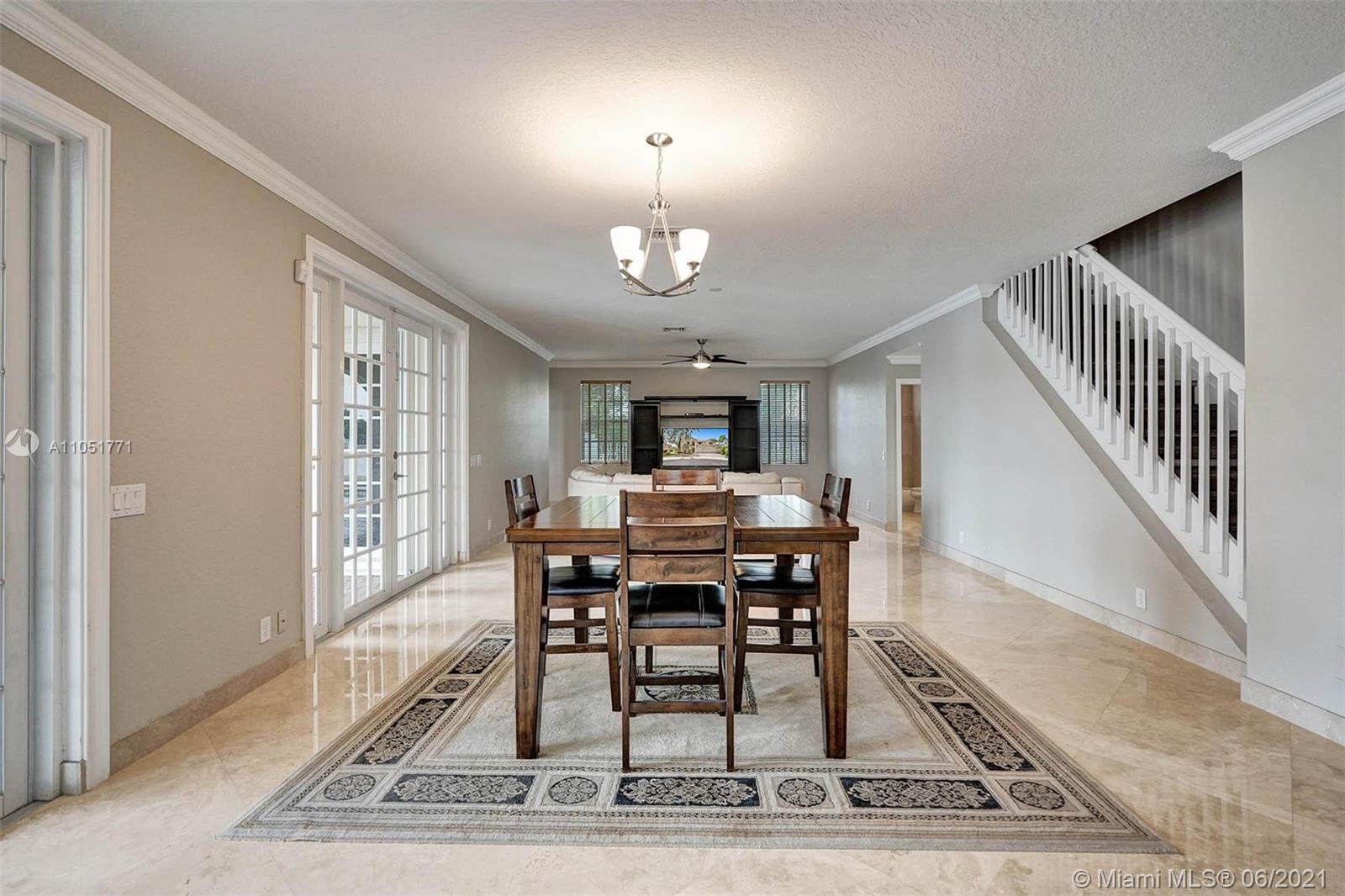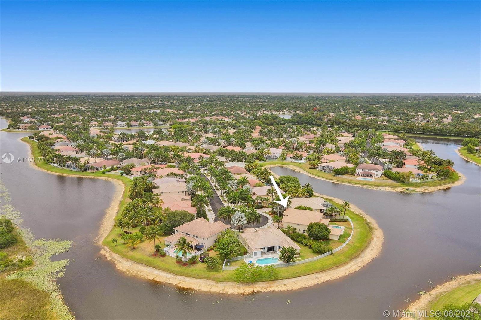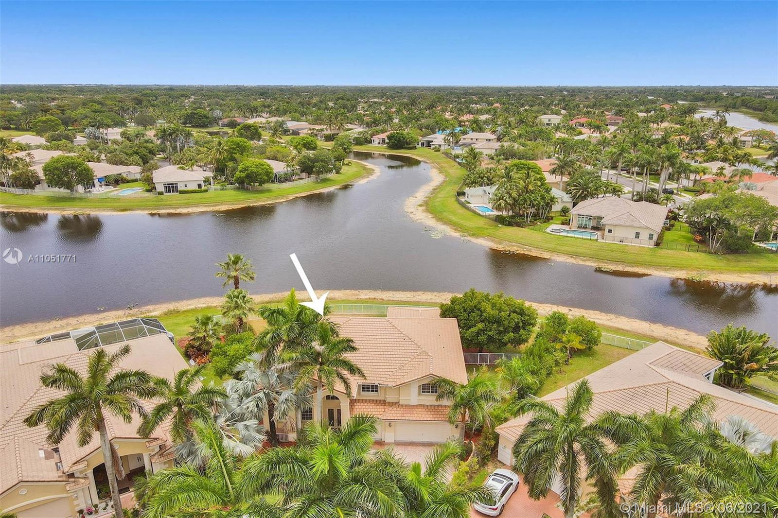 Looking for an expansive 15,000+ cul de sac lot with endless lake views, Popular two-story home with five spacious bedrooms plus an office and playroom with five full baths. Meticulously maintained with marble floors throughout living areas. Addition of full bedroom, playroom, and cabana bath. Wood kitchen cabinets with Stainless Steel appliances and granite countertops. French doors to the private pool and paver patio, fully fenced. Additional den/office attached to the owner's bedroom. Neutral decor throughout with fresh paint. One of the largest lots in Hunters Pointe. Partial impact and accordion protection.