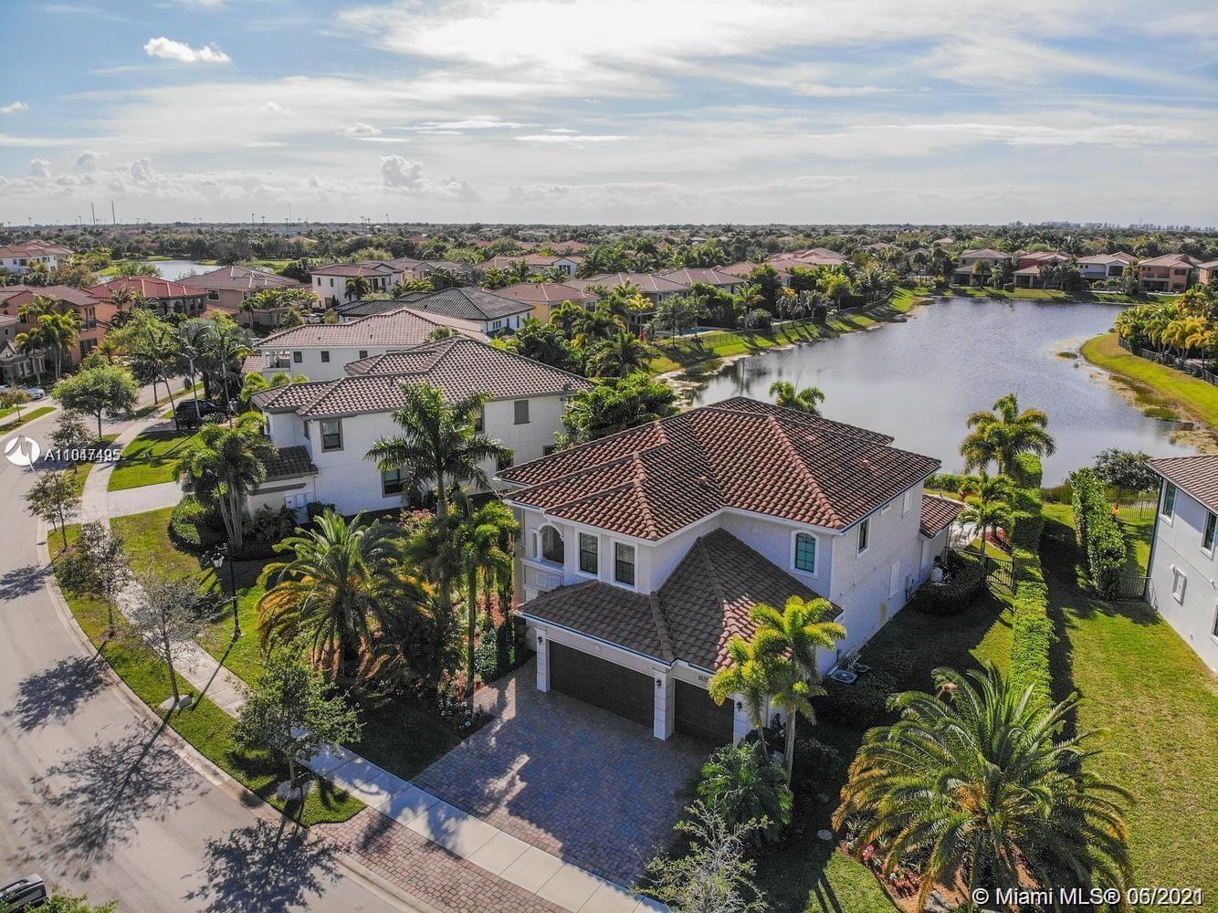 A stunning 2 story designer home sitting on a lot with beautiful pool and wonderful lake views, a home with a 5 bedrooms 4 baths. Gourmet kitchen, fully upgraded. Granite countertops, Wood cabinet, top of the line appliances. High ceilings and crown molding throughout. Remote control awning patio area. Outdoor state of the art gas grill structure. OPEN HOUSE ON JUNE 5th from 11:00 am to 2:00 pm & 6th from 1:00 pm to 4:00 pm