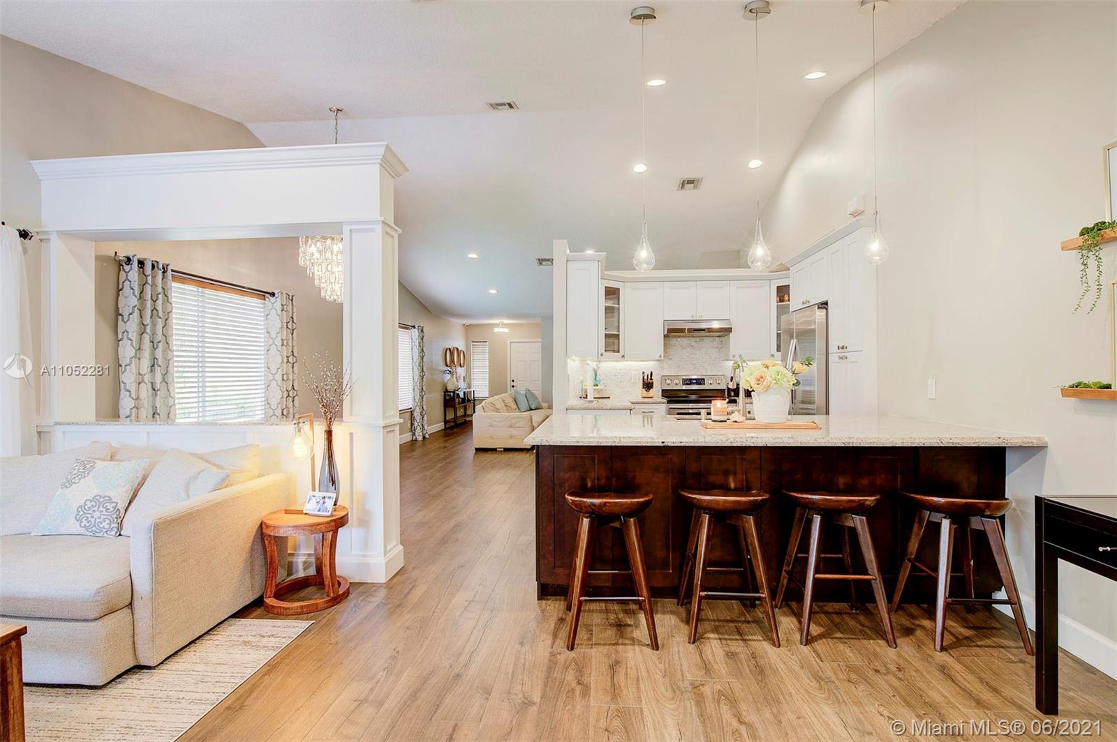 Come step inside this lovely and welcoming one-story home situated on a cul-de-sac! Located in the highly sought after community of Savanna that is gated and offers resort style amenities! This beautifully updated home includes 3 beds, 2.5 baths,2 car garage + 4 car paved driveway! Bright and airy with natural lighting! Meticulously maintained inside and out. Lush manicured landscaping. Tastefully remodeled and upgraded kitchen with white cabinets, granite countertops, new stainless steel appliances and a wine fridge. New flooring in the main living areas. Custom made bar area to match the new kitchen. NEW fixtures and LED lighting! NEW A/C! Private & peaceful covered patio area with a nice size yard. Amazing A+ schools.