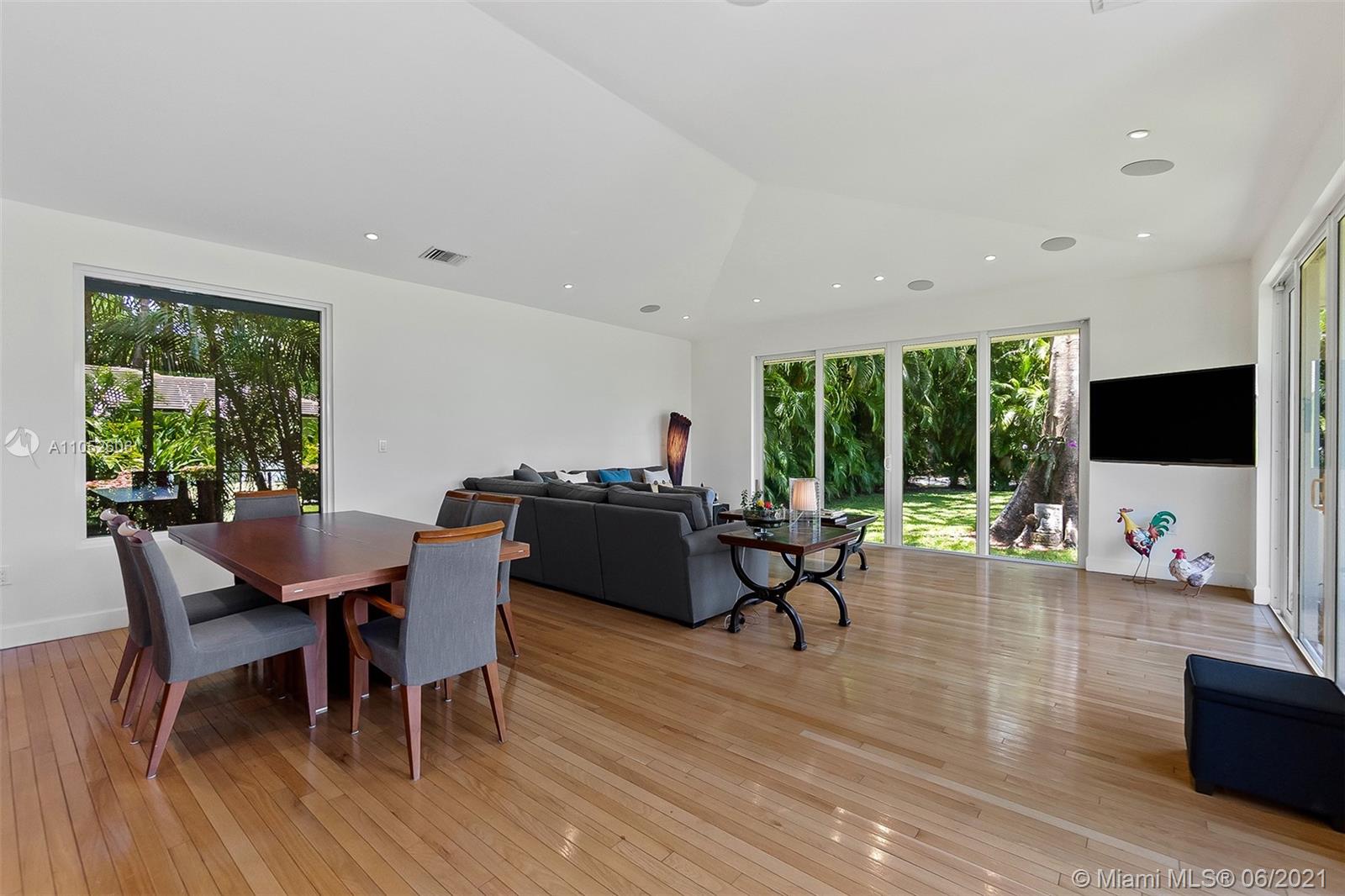 Located on a quiet cul-de-sac in Coral Gables near the Ponce-Davis area, this beautiful home is filled with natural light and understated elegance. The 5b/6b main house encompasses 8,000+sf and features formal living and dining rooms, spacious family room with high vaulted ceilings, customs built-ins, skylights, renovated kitchen with high-end appliances, impact windows and doors and oak flooring. Separate and newer 3b/2b guesthouse with kitchen is ideal for in-laws, grown children or staff. Outdoors the 38,000+sf lot is an oasis with palms, fruit trees and orchids incorporated throughout serving as the backdrop for a lavish pool surrounded by a stone patio perfect for family gatherings and entertaining. A three car garage and whole house generator complete this incredible offering.
