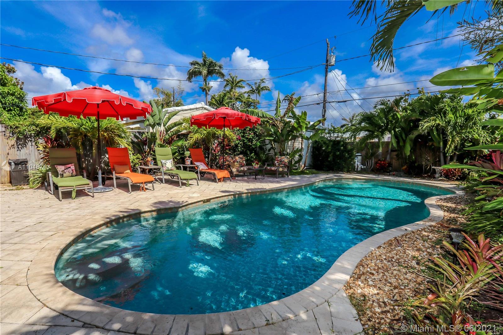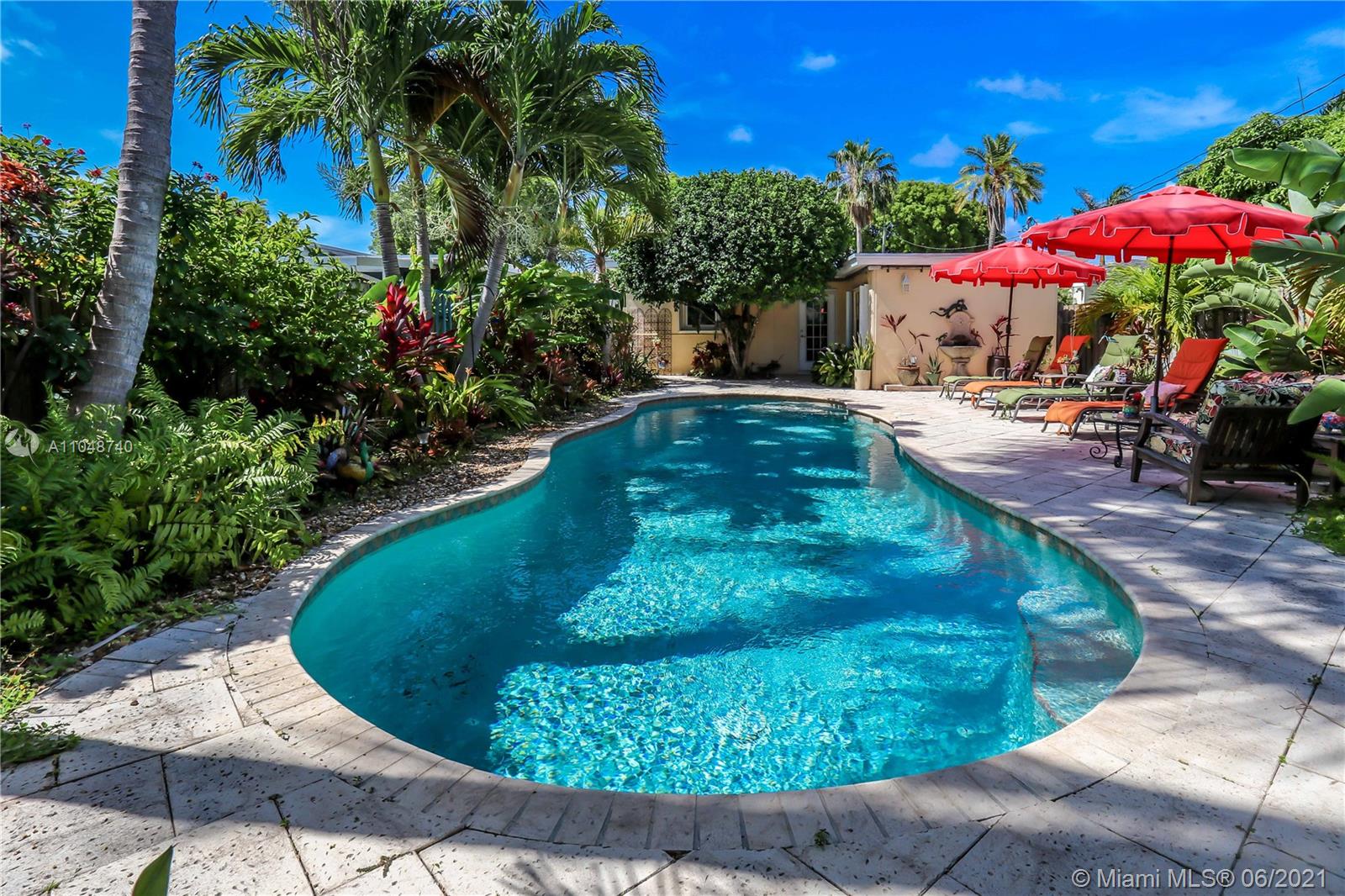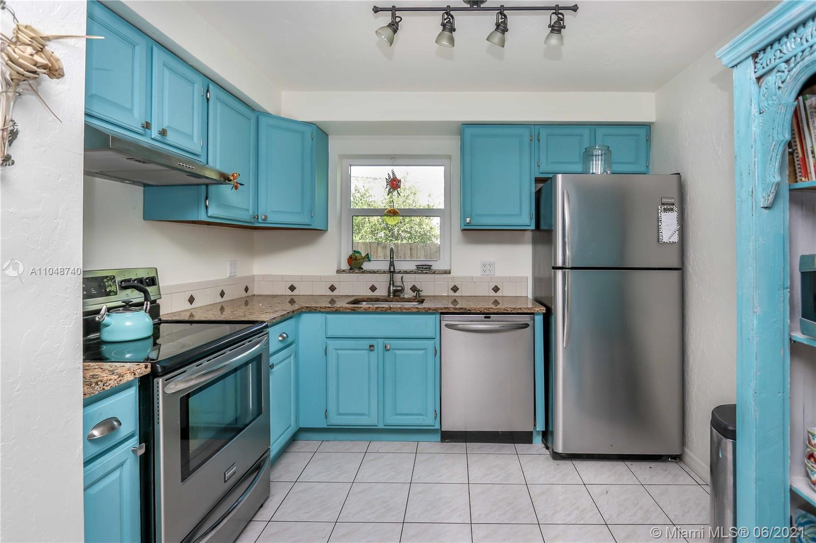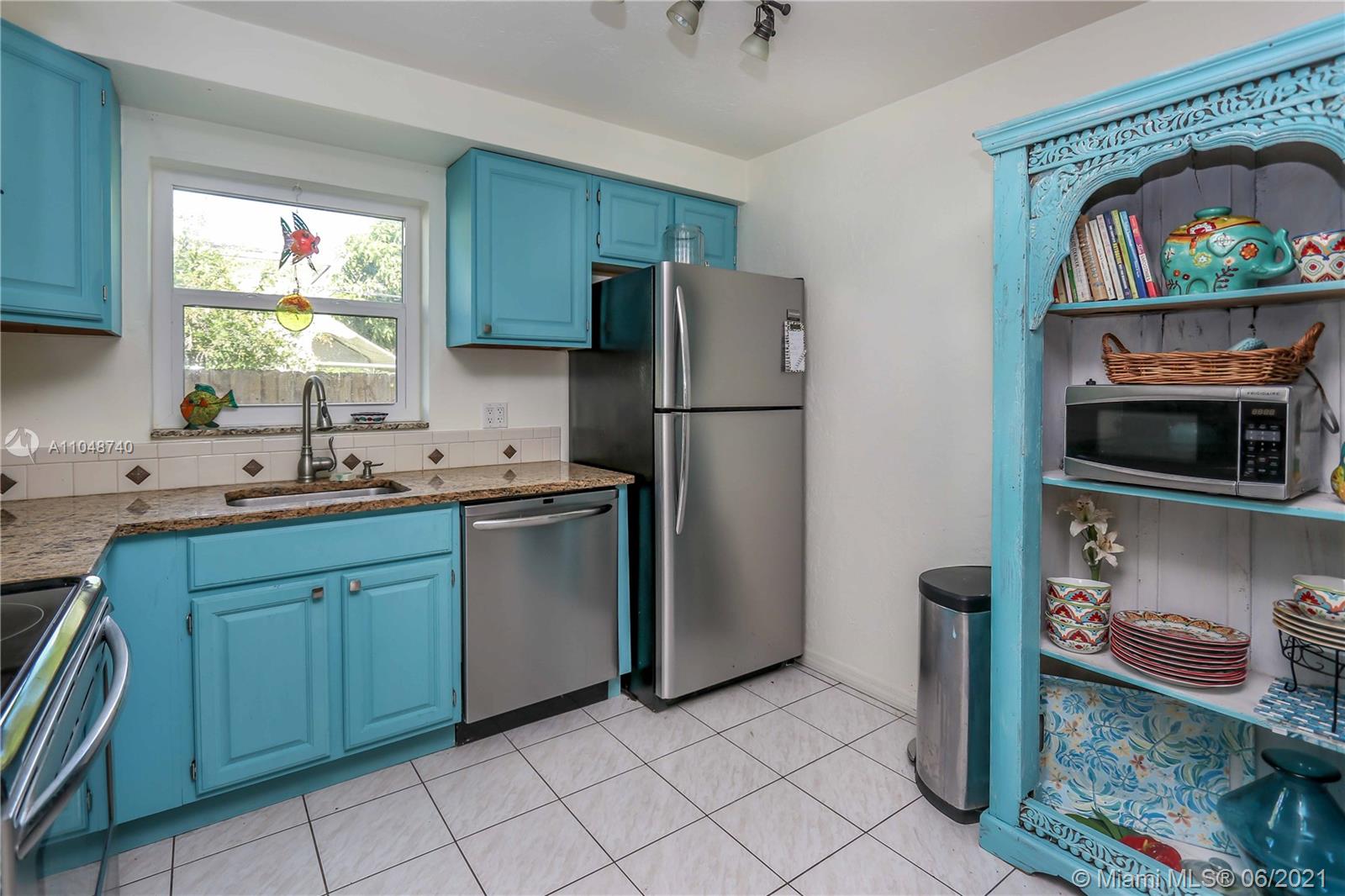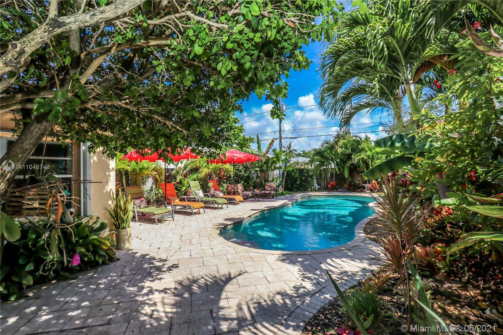 Charming Home ~ Tropical Paradise! In Desired Neighborhood.....East of US1! 3 BD / 2 BA Home with a Pool ~ Features Tile Flooring Throughout. Open Kitchen with Stainless-Steel Appliances and Granite Counter Tops ~ Bright House with Natural Light ~ Spacious Living Room and Formal Dinning Room ~ Front Bath has a Pedestal Sink with Subway Tile ~ Spacious Closets ~ Beautiful Tropical Landscaping in the Backyard with Saltwater Heated Pool ~ Paver Patio ~ Covered Front Porch for Outside Seating Area ~ Most of the windows are high impact, others have shutters. Stackable washer & dryer. Category 5 hurricane proof Shed. Two car driveway. Newer Roof replaced 2019. Newer A/C Compressor and Pool Pump replaced 2020.