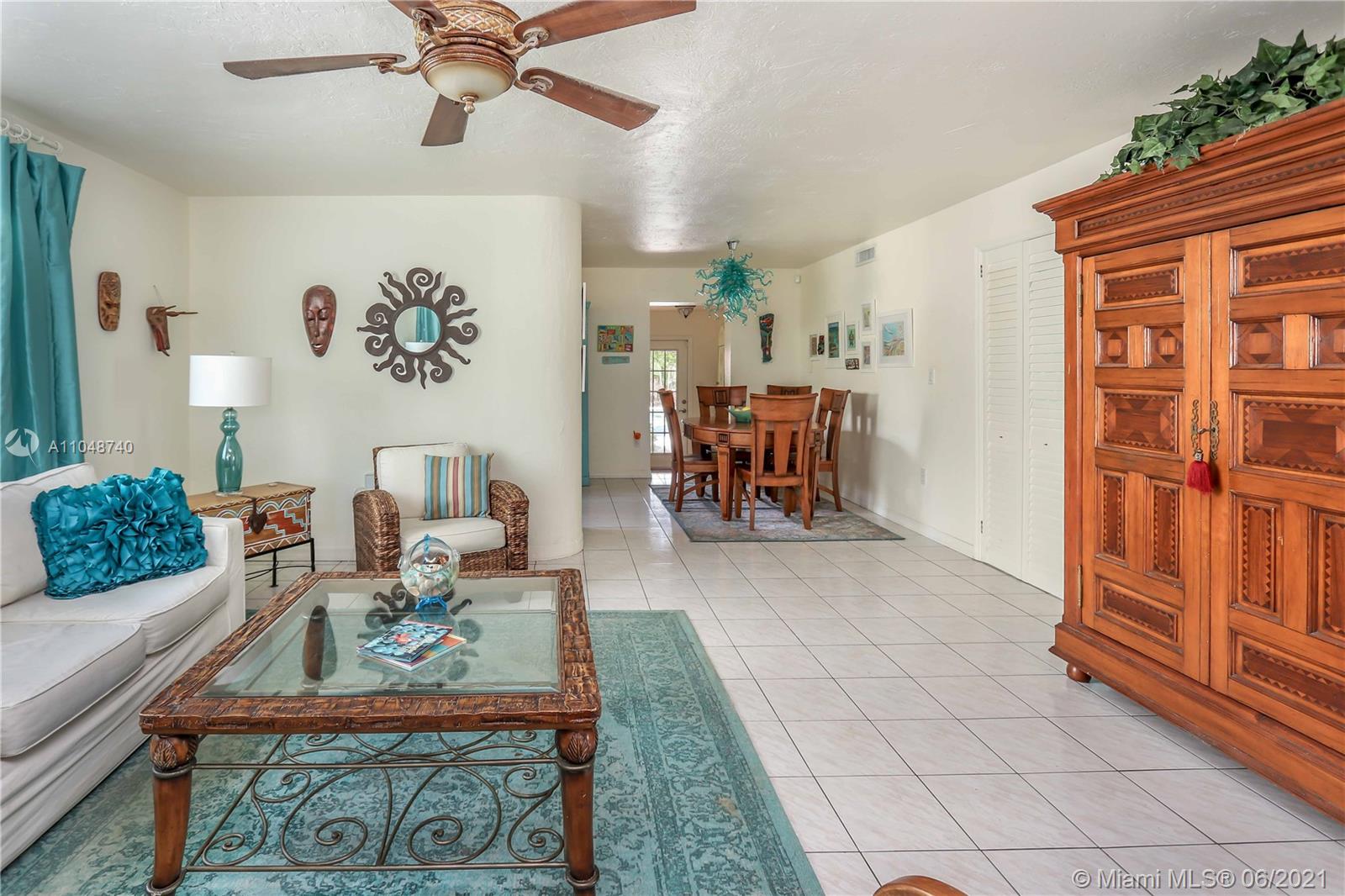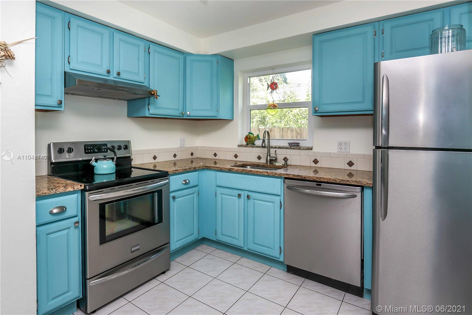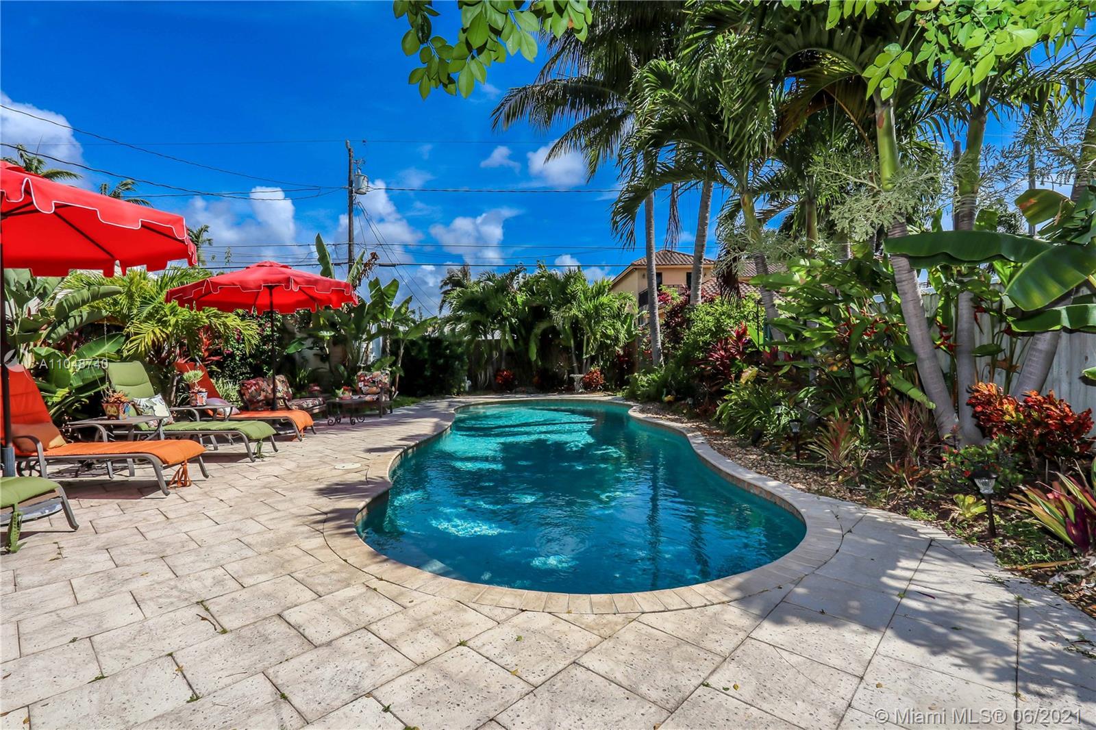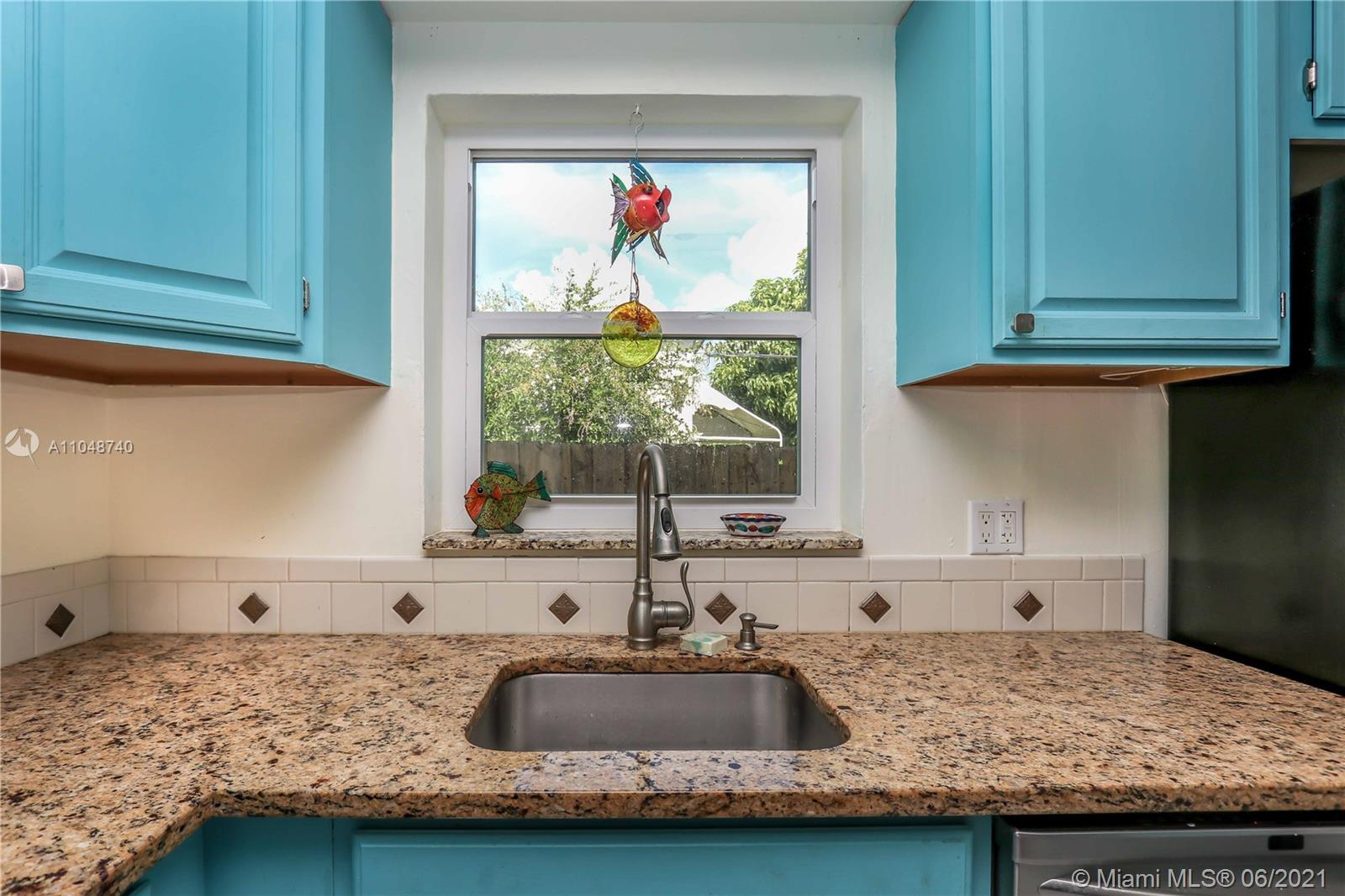 Charming Home ~ Tropical Paradise! In Desired Neighborhood.....East of US1! 3 BD / 2 BA Home with a Pool ~ Features Tile Flooring Throughout. Open Kitchen with Stainless-Steel Appliances and Granite Counter Tops ~ Bright House with Natural Light ~ Spacious Living Room and Formal Dinning Room ~ Front Bath has a Pedestal Sink with Subway Tile ~ Spacious Closets ~ Beautiful Tropical Landscaping in the Backyard with Saltwater Heated Pool ~ Paver Patio ~ Covered Front Porch for Outside Seating Area ~ Most of the windows are high impact, others have shutters. Stackable washer & dryer. Category 5 hurricane proof Shed. Two car driveway. Newer Roof replaced 2019. Newer A/C Compressor and Pool Pump replaced 2020.