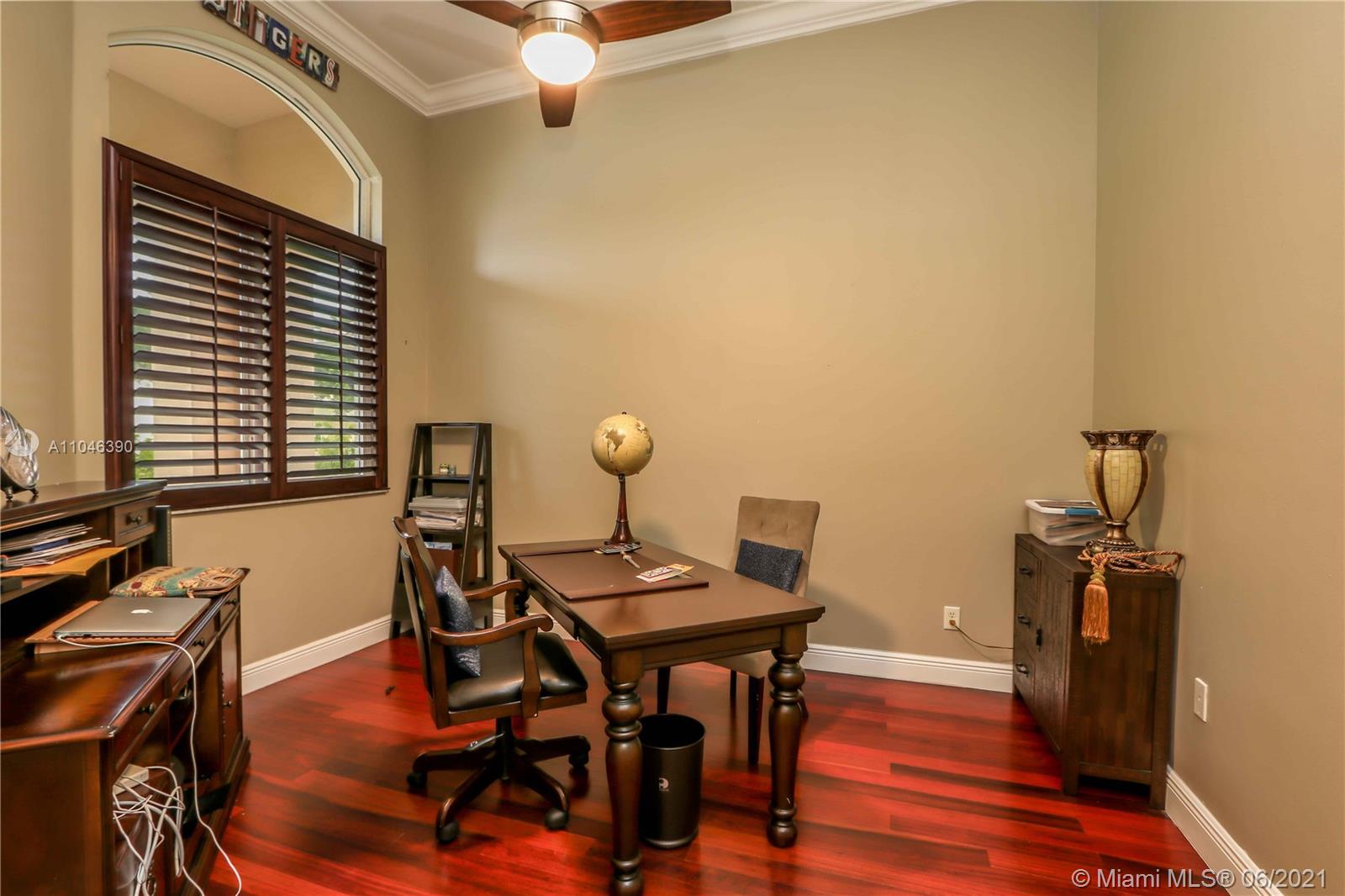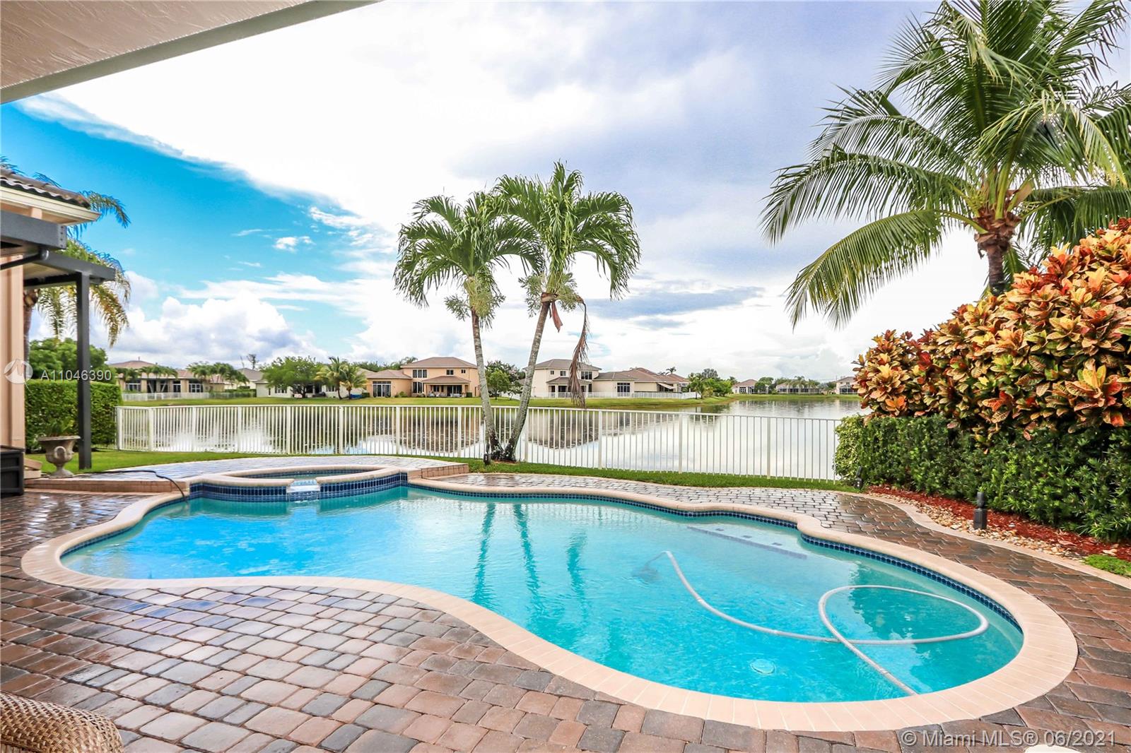 Beautiful two-story luxury house with three car garage. Master suite on first floor, dream kitchen with a beautiful view of the lake, pool, and spa. Covered terrace and retractable roof with extensive pavers in front and back yard. Three bedrooms and a loft on the second floor perfect for a family room or extra bedroom. High impact windows and doors. Plantation shutters and California closets throughout the house. Blackout blinds in the master bedroom. Laundry room with washer and dryer. Invisible pet fence installed and new house generator. Great schools nearby.