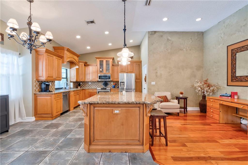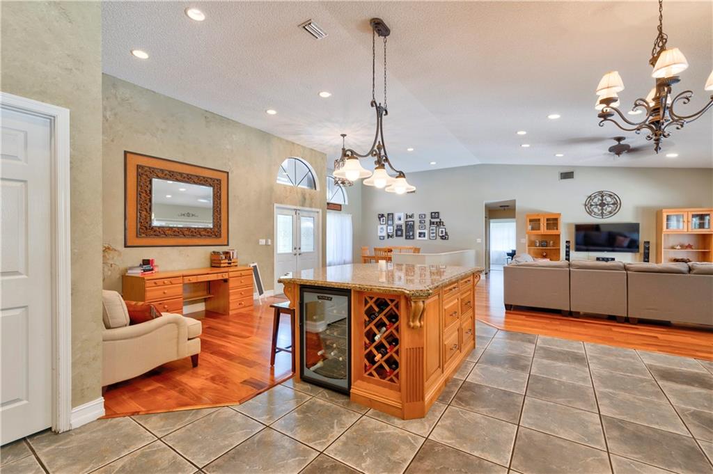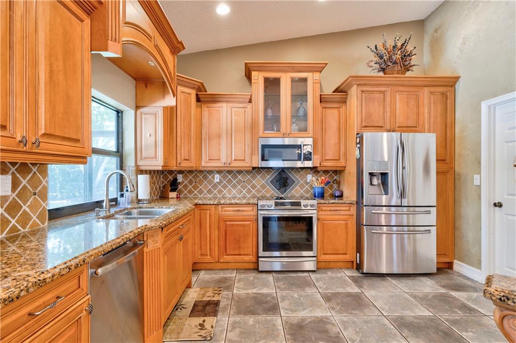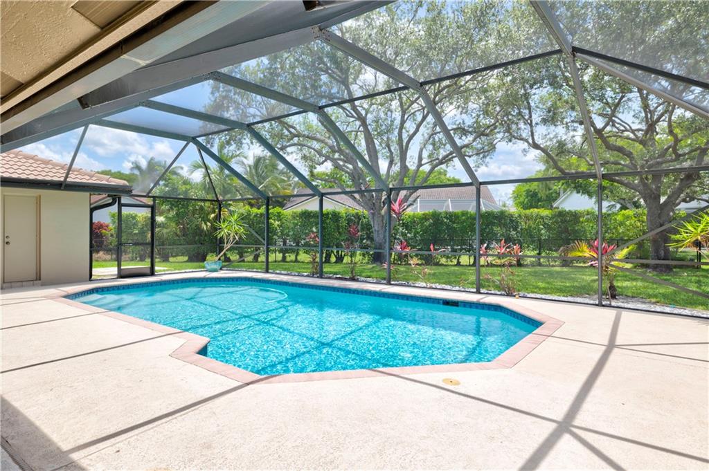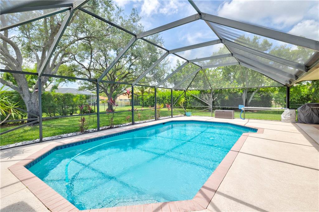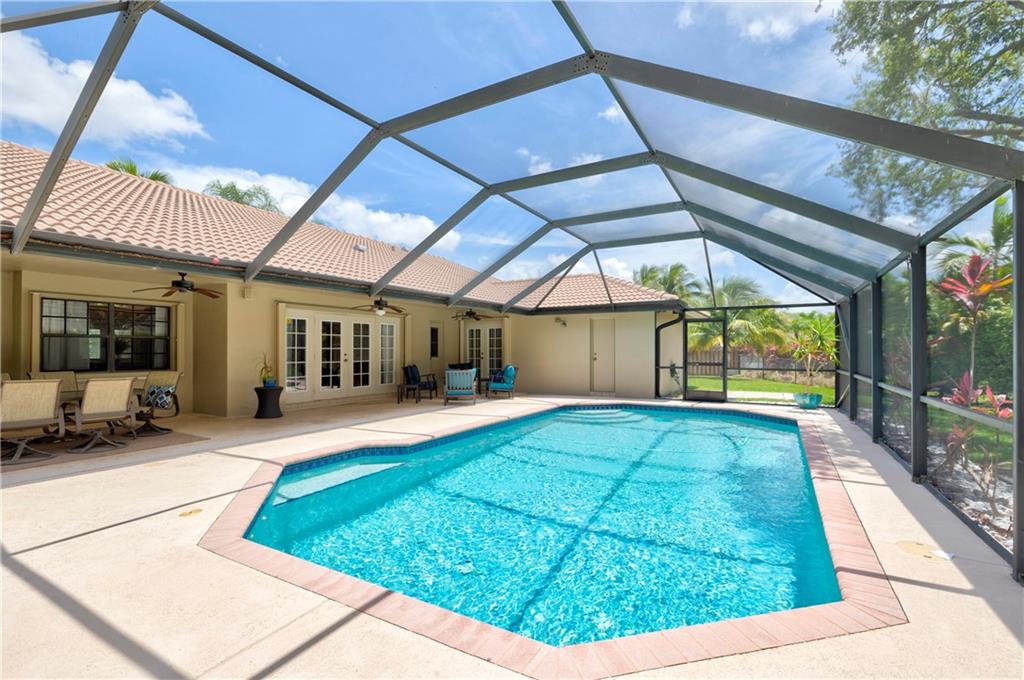 Impeccably maintained home. Upon entry you are greeted with an open concept floor plan and volume ceilings. The home is perfect for entertaining or just quality family time. This home features a Chef's Kitchen with solid wood cabinetry, stainless appliances and granite counter tops. The large center island has a custom wine rack and wine cooler. Great space for cooking or gathering with the family. The master suite features his and her walk in closets and a luxurious spa like bath. All bedrooms have great closet space and natural light. The hall guest bath has also been remodeled. French doors from the master suite and living area open to a covered outdoor living space and screened heated pool. The oversized fenced lot offers space for kids to play or dogs to roam.
