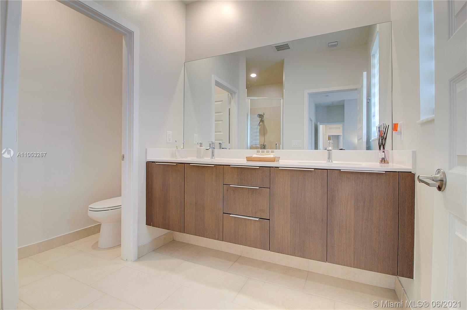 Luxurious 3 Br, 3 1/2 baths.Premium Corner lot 2 car garage in Downtown Doral , Smart home, Nest security system, Italian Porcelain (48"x24")-first floor, carpet 2nd floor, beautiful light fixtures, Ceiling fans in brms, Frosted glass impact front door, Stainless steel & wood stair railings, High end window treatments ( Bandalux) , Impact windows (PGT) Garage storage bins, Stainless steel appliances , Quartz countertops, Porcelanosa kitchen tile backsplash, Wall TV mounts included, 2nd floor loft, Laundry room, Large 2nd floor balcony, great street views, Home Warranty Included! Beautiful landscaping, Privacy fence, Covered porch, Walk to shopping/Restaurants, near City Place & expressways (Palmetto & Turnpike) A+ rated schools! Clubhouse/ Resort style Pool/Parks/Fitness center.