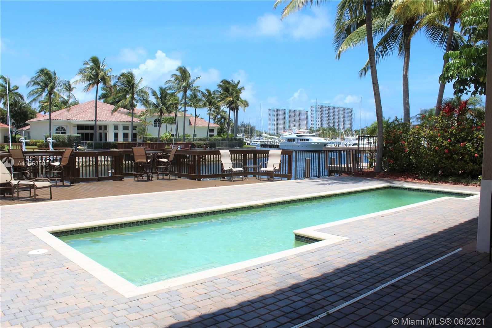 Watch the magnificent sunsets from your dock!! Best View and Location in Commodore Estates in Harbor Islands !! 65 feet of waterfront with 4 Bedrooms and 4.5 Bathrooms. Double gated community. Marble and wood floors throughout with high impact windows, double height ceilings in the living room. Stunning chandelier in foyer. Primary bedroom on 1st floor with his and her closets and double vanities. Finished garage/entertainment area. Waterfront pool and dock. Front faces the fountain with extra parking. Harbour Islands has a clubhouse, fitness center, tennis center and marina. MINUTES TO THE OCEAN !!
