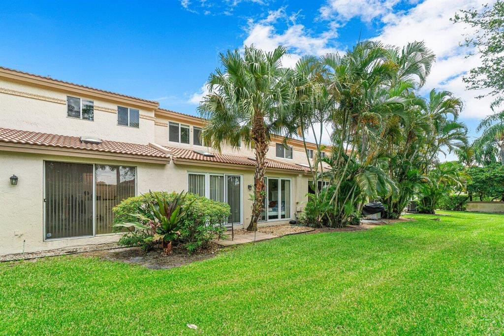 MUST SEE Gorgeous town home in the manned gated community of Boca Pointe, desired Plum Cortina section. Spacious and completely and tastefully updated with a garage! The large living/family room has beautiful warm wood floors. The kitchen has been remodeled with top quality cabinets and a bar that opens to the living space. Great for entertaining and the Florida relaxed lifestyle. Loads of storage space both on 1st floor and main bedroom closets. The master bath is graciously remodeled. Private grass area behind is perfect for extending your living space and enjoying the Florida weather. HUGE are the Impact windows, new pipes and electric! Fabulous community pool and close proximity to all shopping. Club memberships available not mandatory. May lease 4x per year, 1 pet allowed to 25 lbs